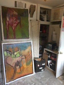 Did some paintings at home this week, since Mondays. more for the cardboard pile.