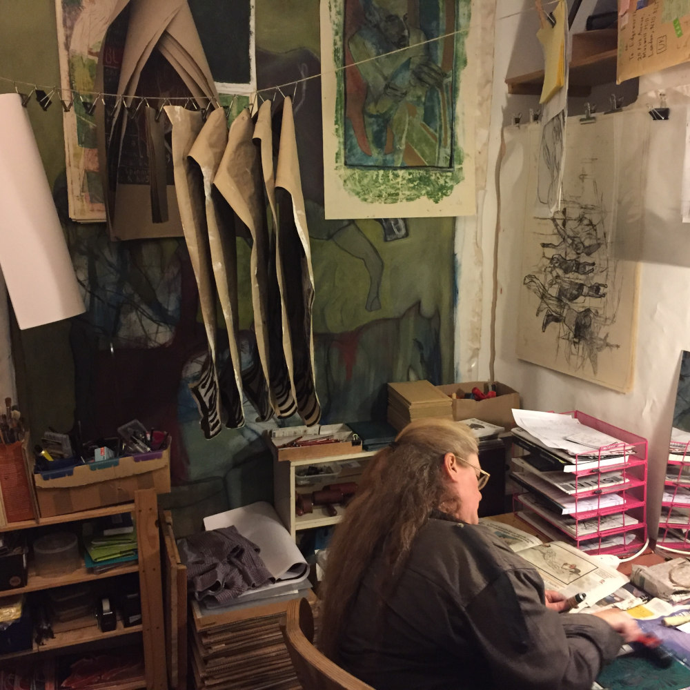 Emma Pugmire and I have been working together since back in the days of The Other Muswell Hill Stuckists. She is my drummer and co-Black Ivory Printmaking Clubber.
