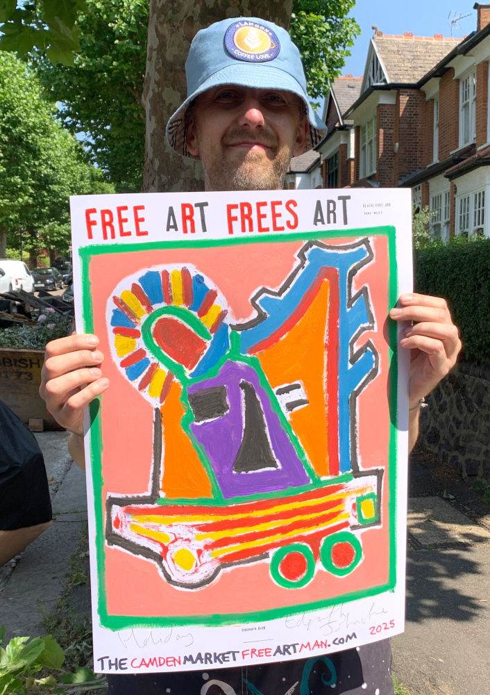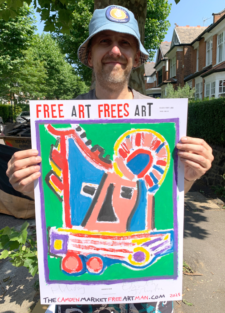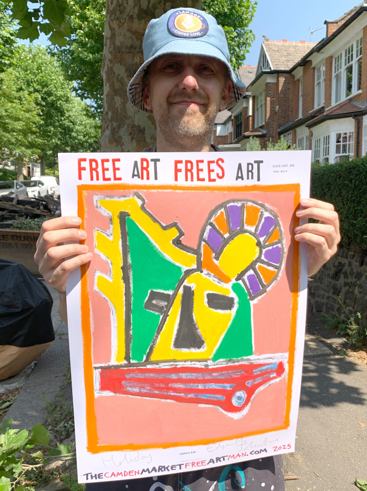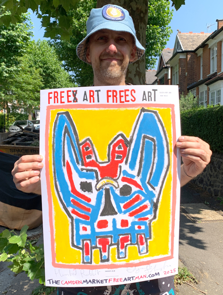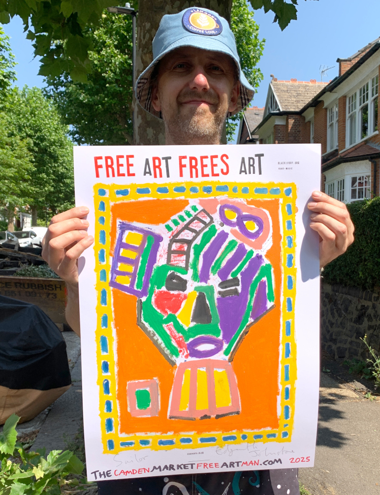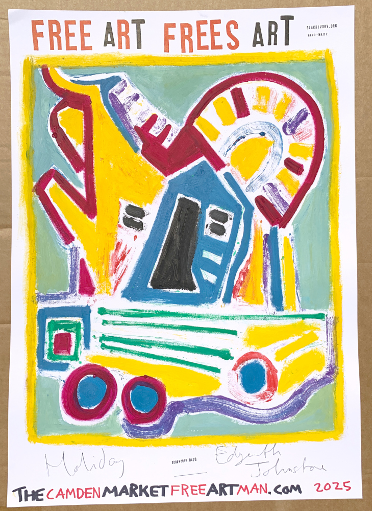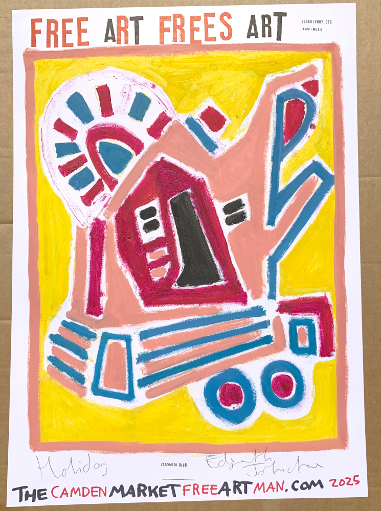 Batch 2 of the Masks paintings are on 300gsm paper, and have a lot more writing and stamping on the back than batch 1. 25 paintings in batch 2. Some will go in my Etsy shop, but most will be given away at The Camden Market Free Art Man Political Protest Against Expensive Art. These paintings are of the masks I made and wore in some home-made films. Most recently with Ron Throop, although this one isn’t published yet.