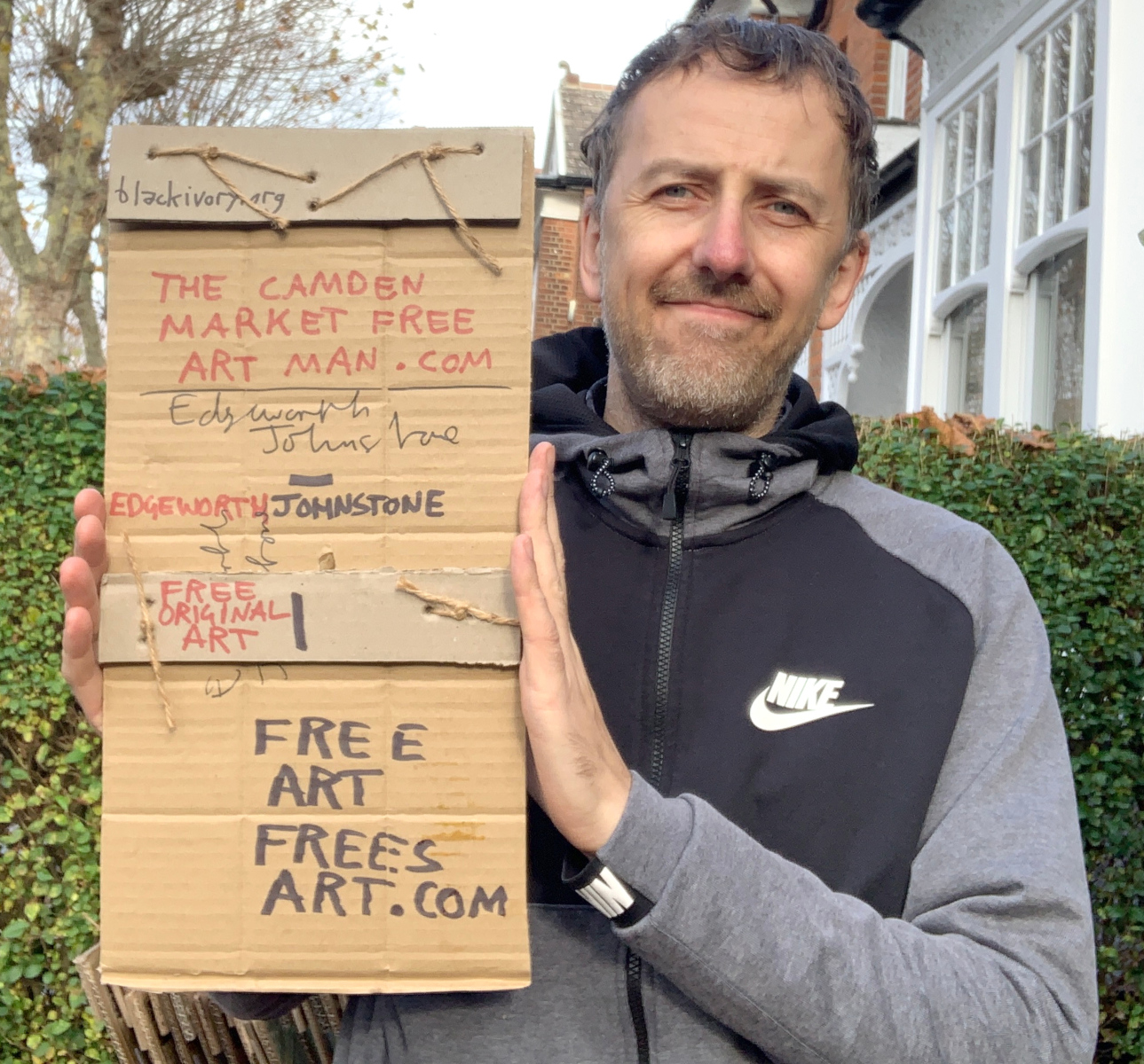 Woodcut prints of the Black Ivory logo. Glued to cardboard, ready to hang. I give these away at The Camden Market Free Art Man display.