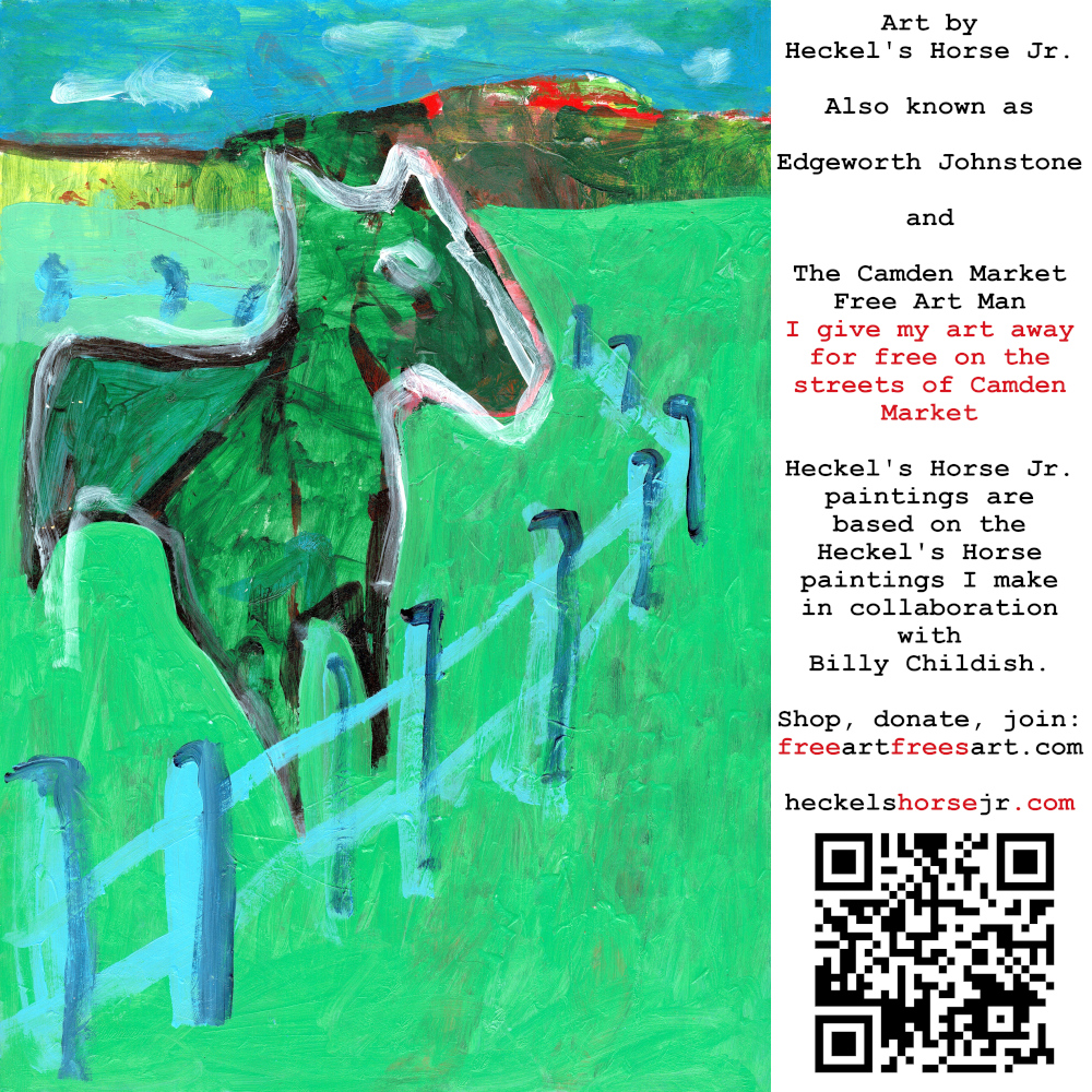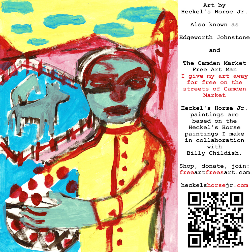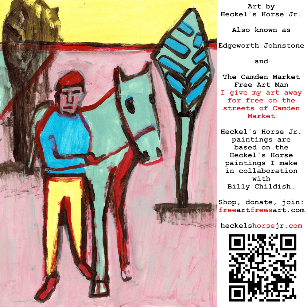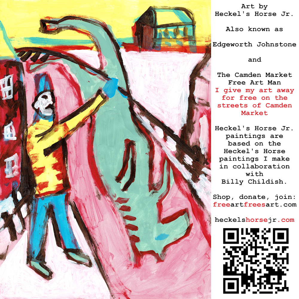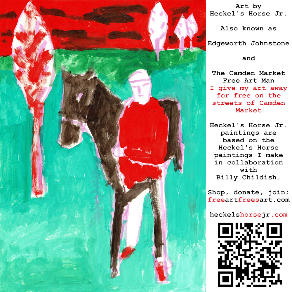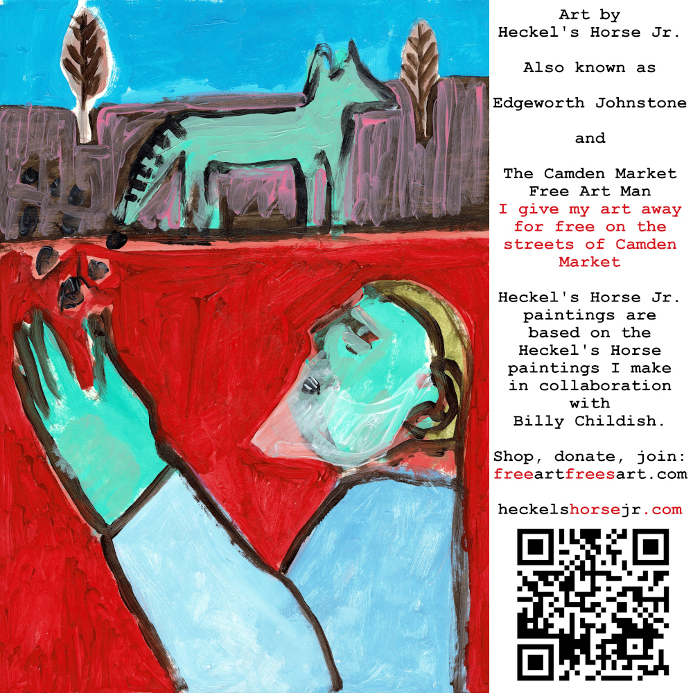 Art by Heckel’s Horse Jr. Also known as Edgeworth Johnstone and The Camden Market Free Art Man. I give my art away for free on the streets of Camden Market. Heckel’s Horse Jr. paintings are based on the Heckel’s Horse paintings I make in collaboration with Billy Childish.