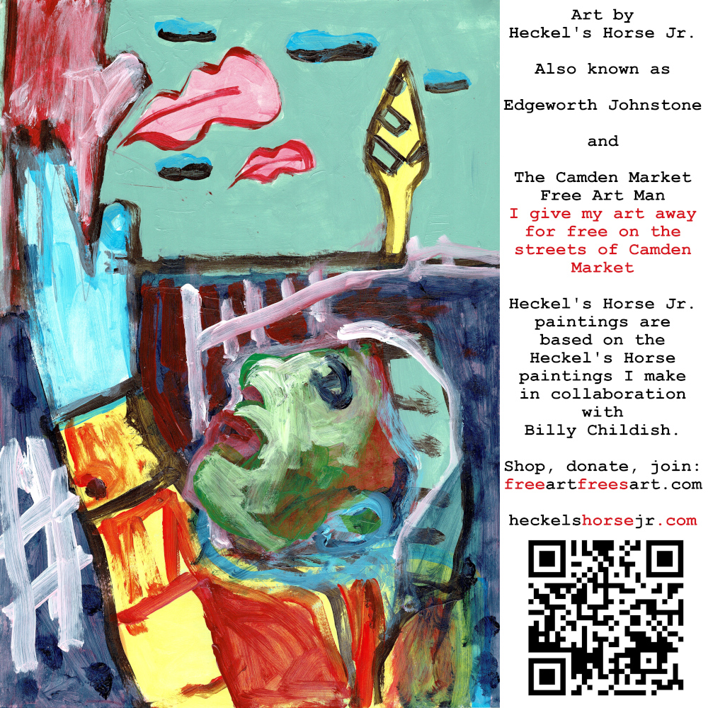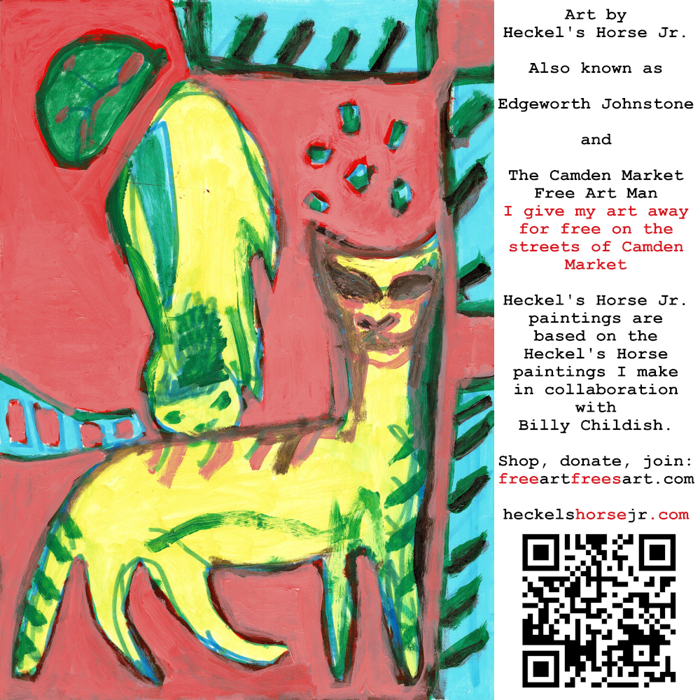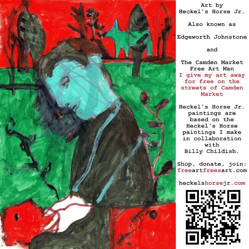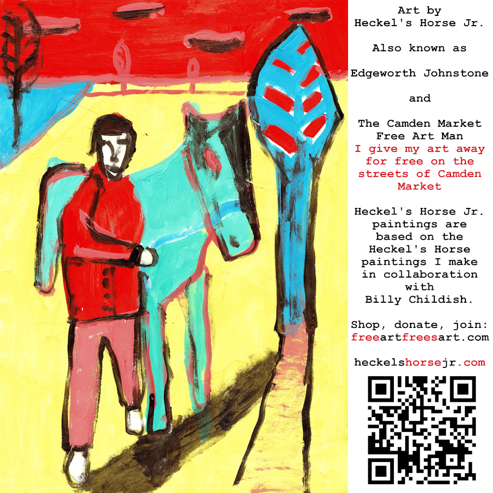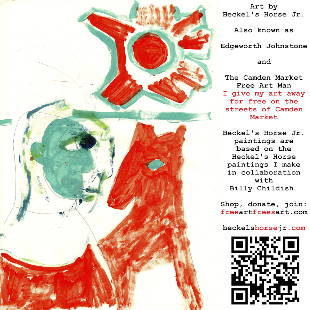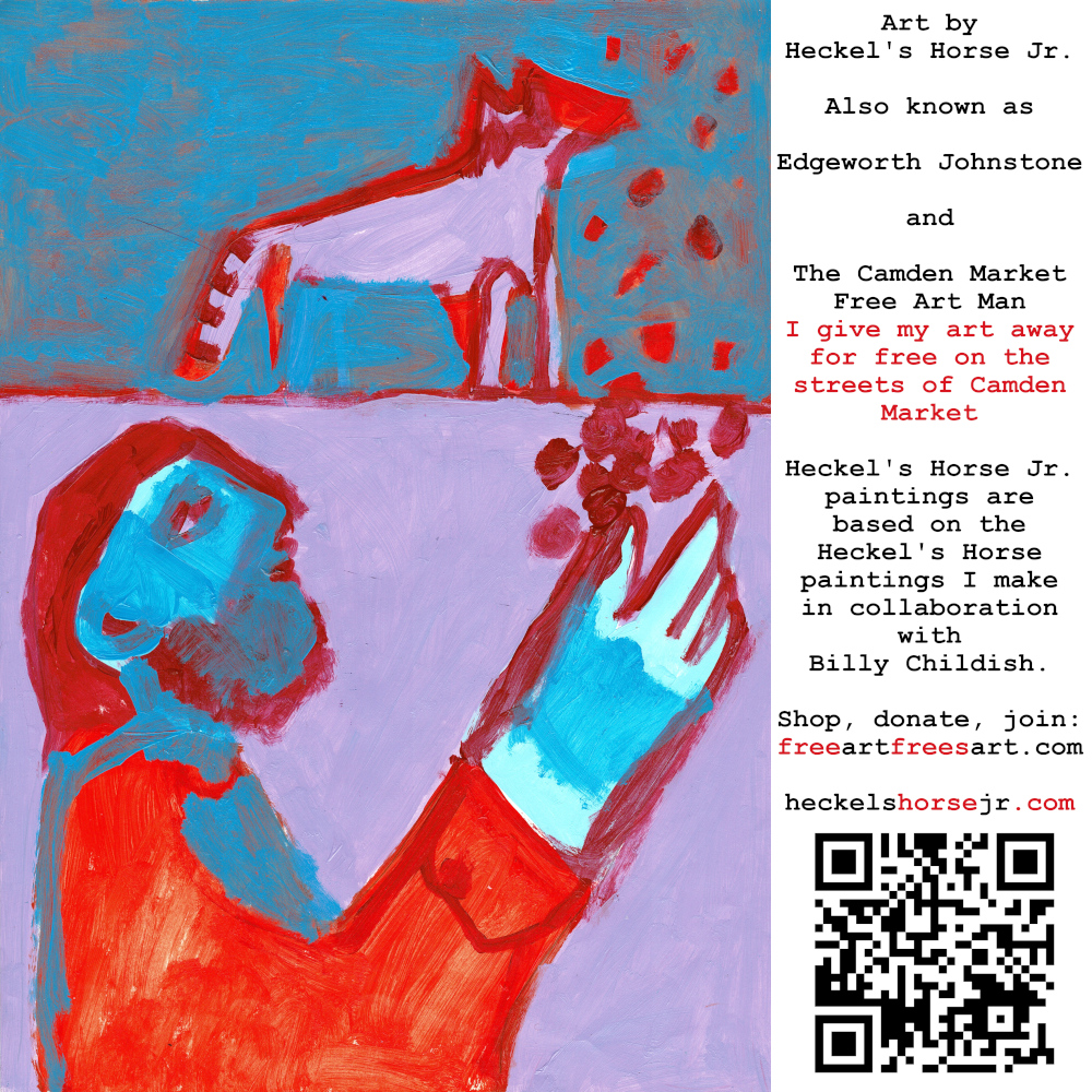Art by Heckel’s Horse Jr. Also known as Edgeworth Johnstone and The Camden Market Free Art Man. I give my art away for free on the streets of Camden Market. Heckel’s Horse Jr. paintings are based on the Heckel’s Horse paintings I make in collaboration with Billy Childish.