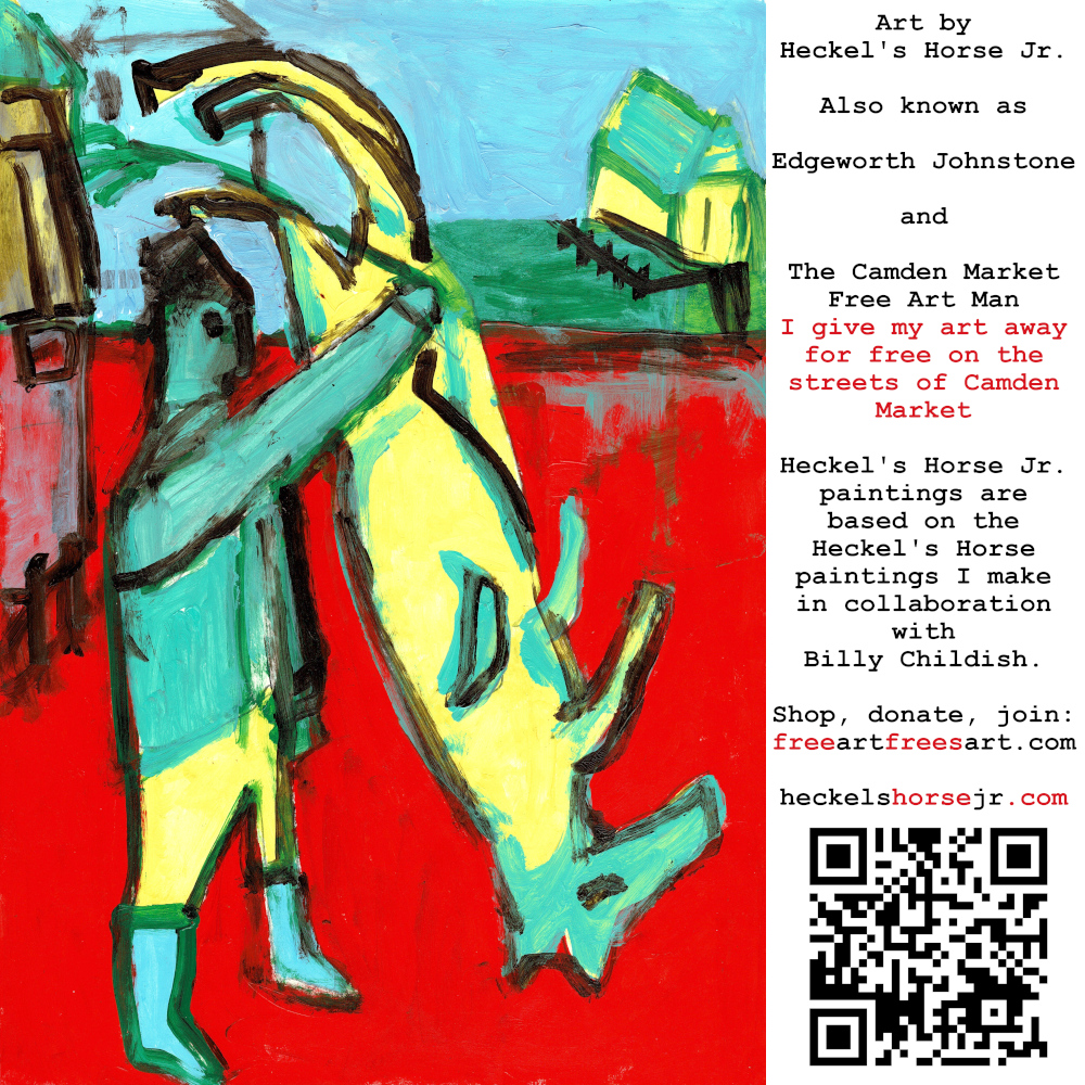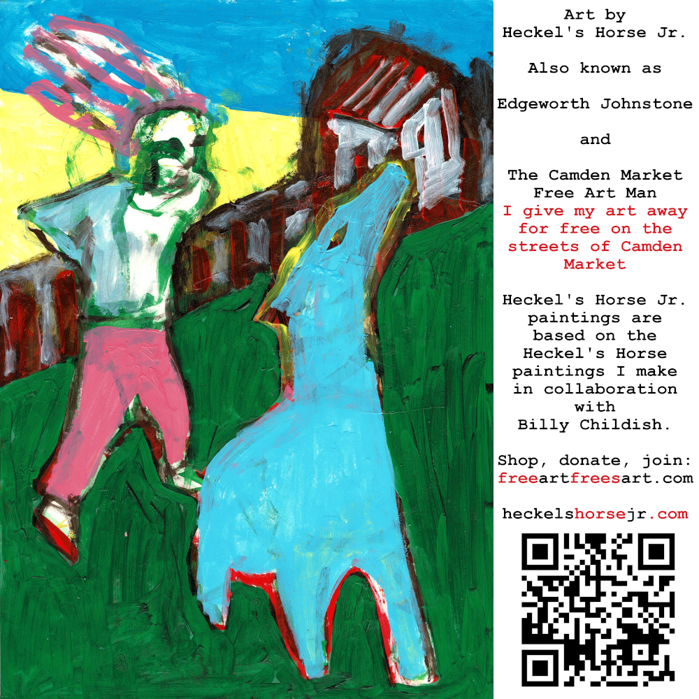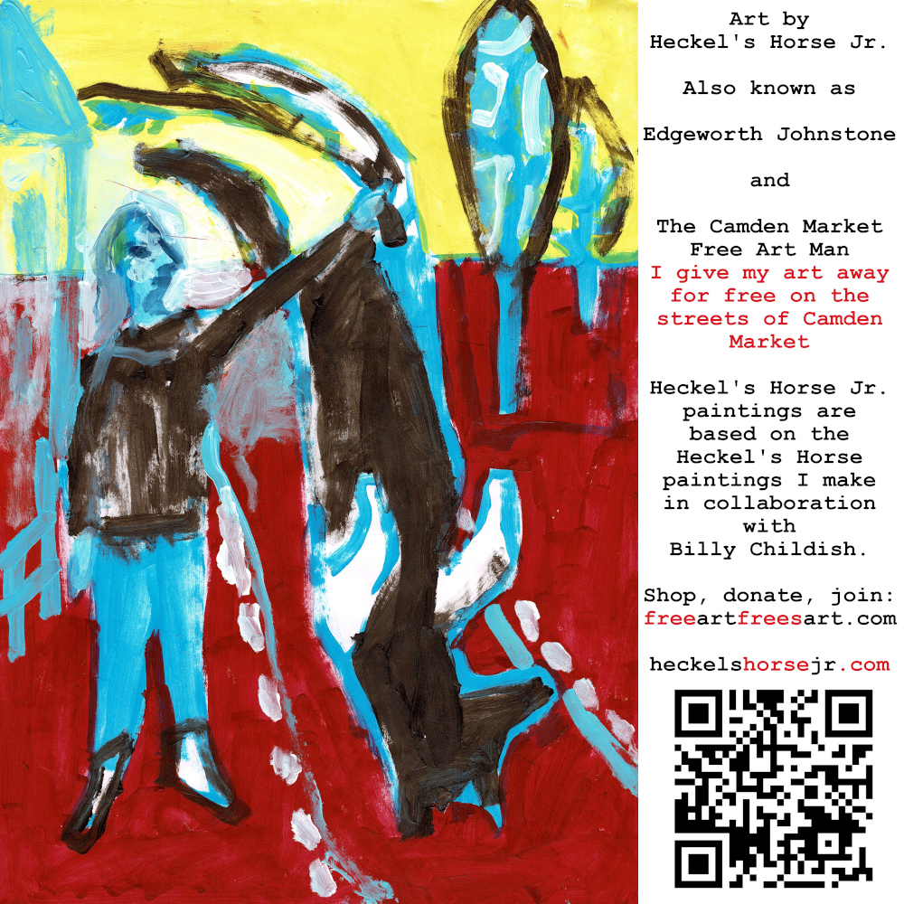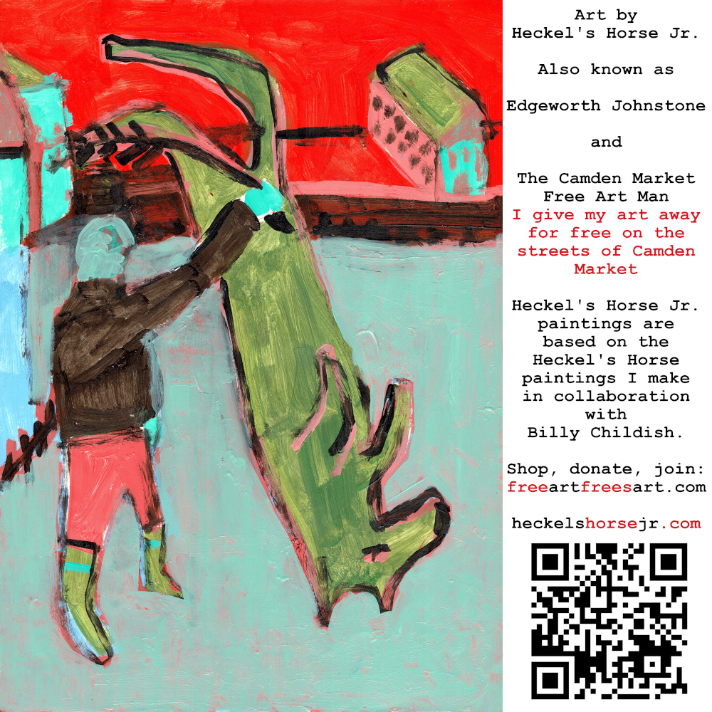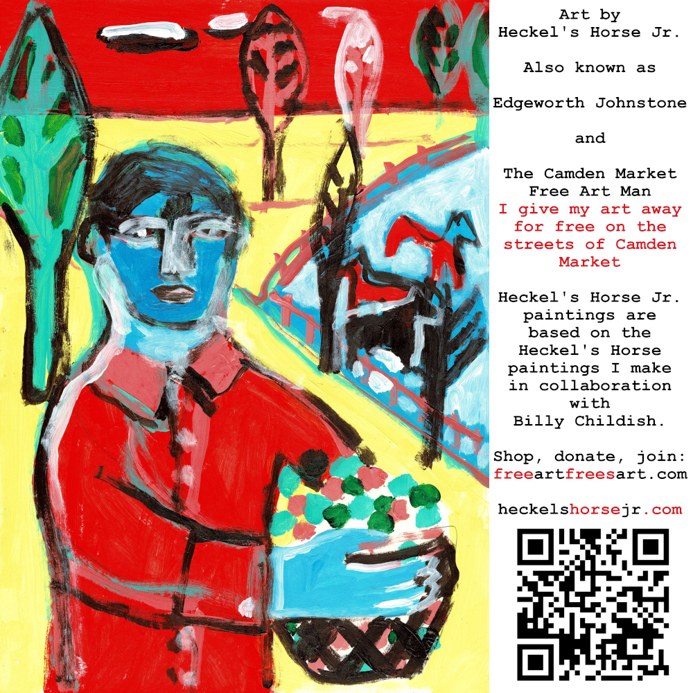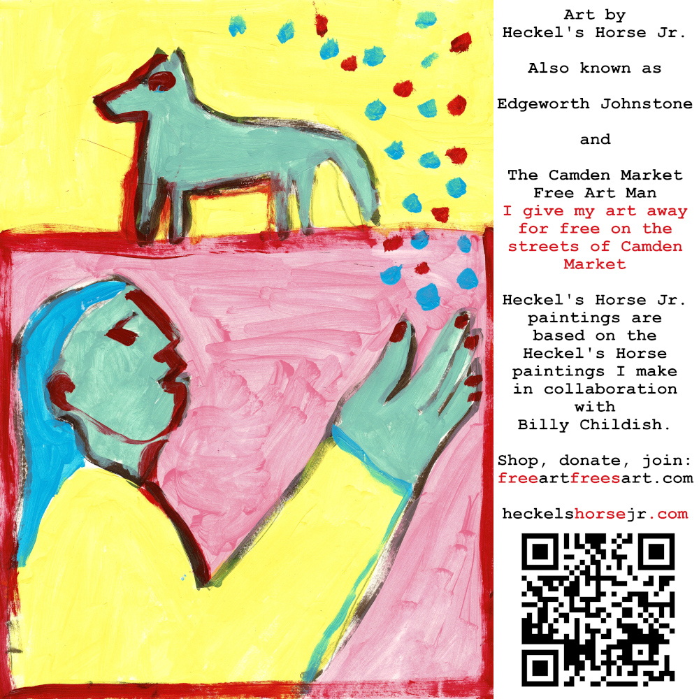 Art by Heckel’s Horse Jr. Also known as Edgeworth Johnstone and The Camden Market Free Art Man. I give my art away for free on the streets of Camden Market. Heckel’s Horse Jr. paintings are based on the Heckel’s Horse paintings I make in collaboration with Billy Childish.