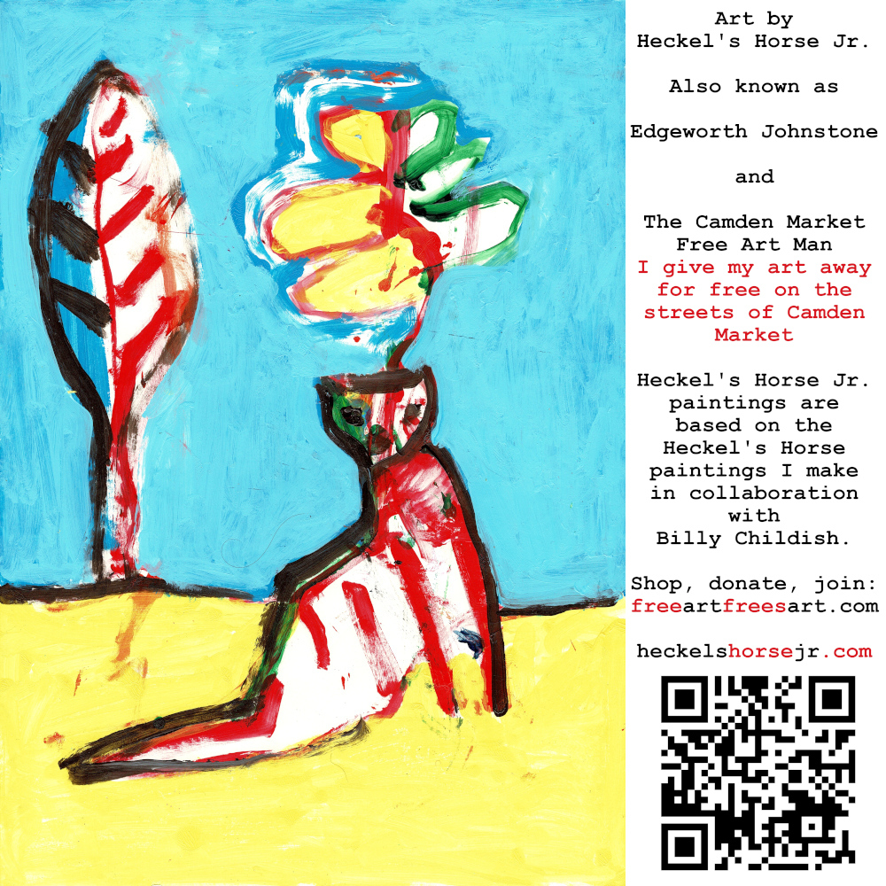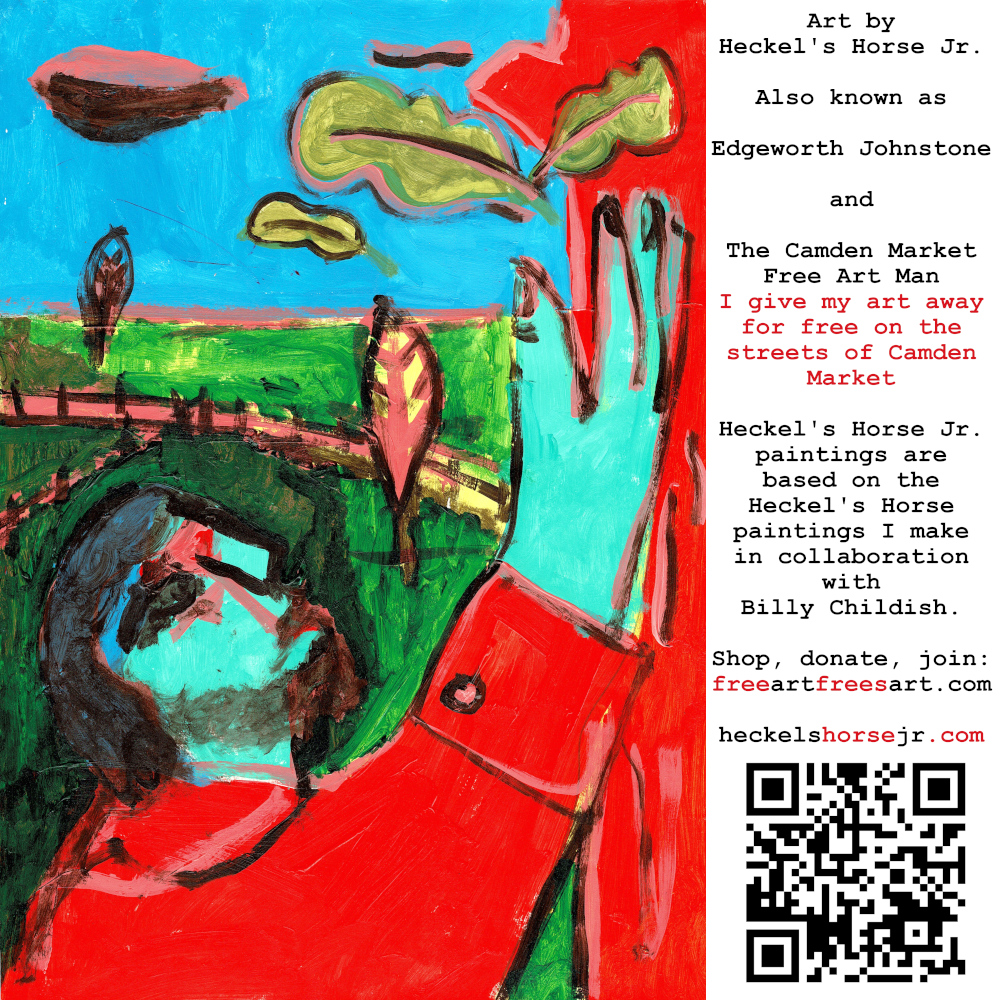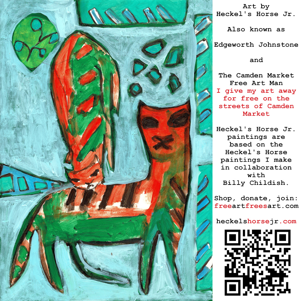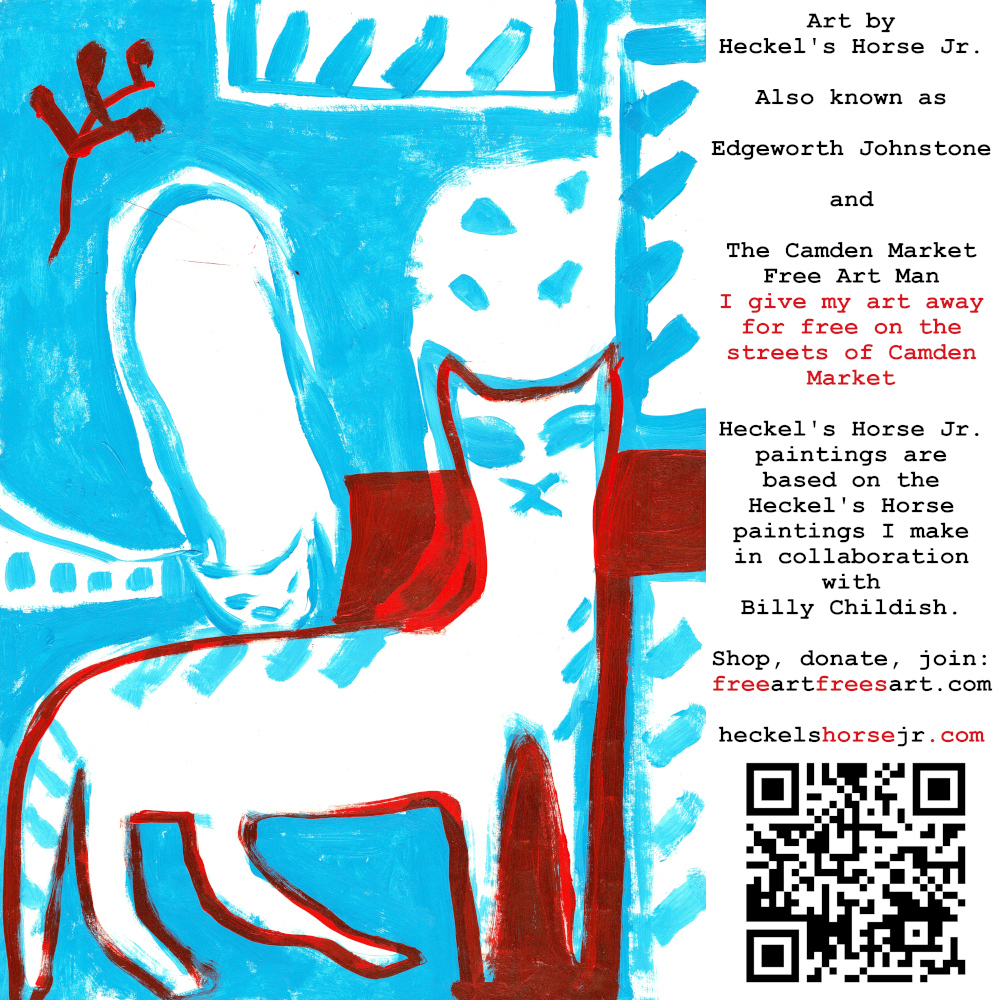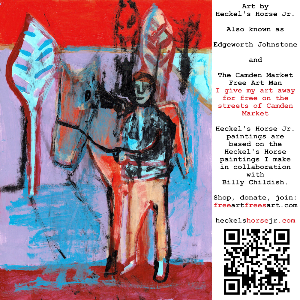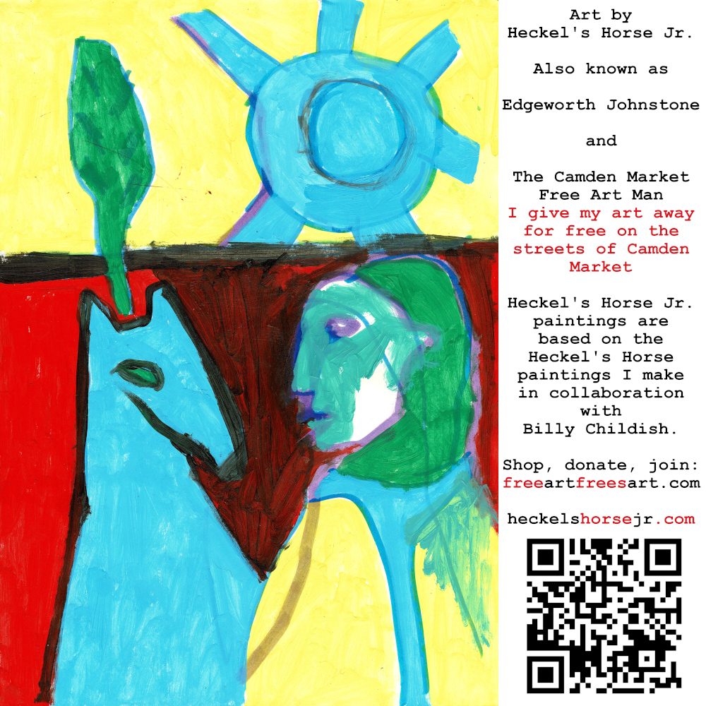 Art by Heckel’s Horse Jr. Also known as Edgeworth Johnstone and The Camden Market Free Art Man. I give my art away for free on the streets of Camden Market. Heckel’s Horse Jr. paintings are based on the Heckel’s Horse paintings I make in collaboration with Billy Childish.