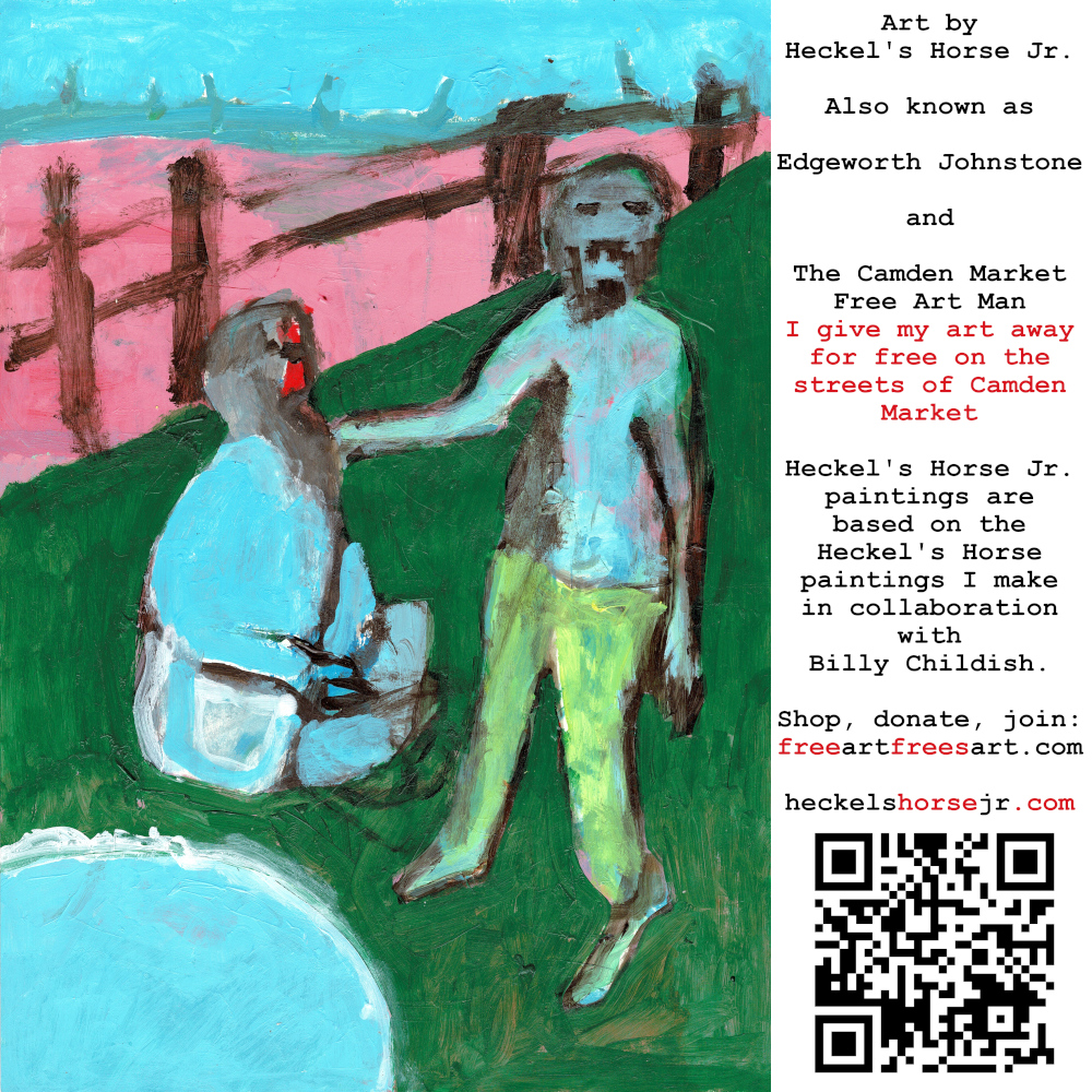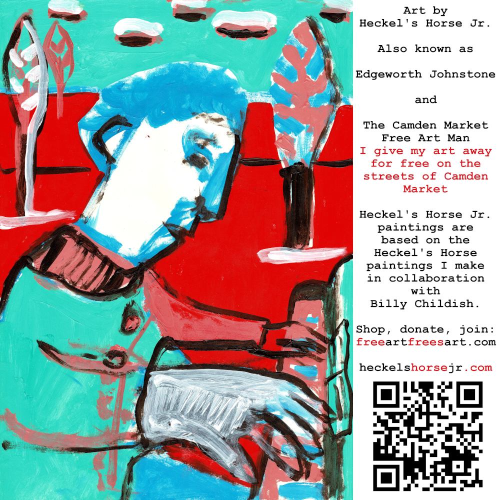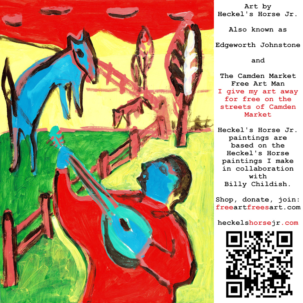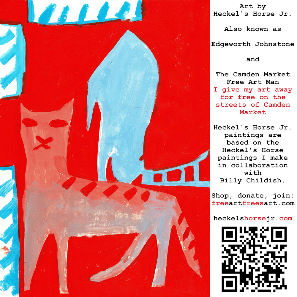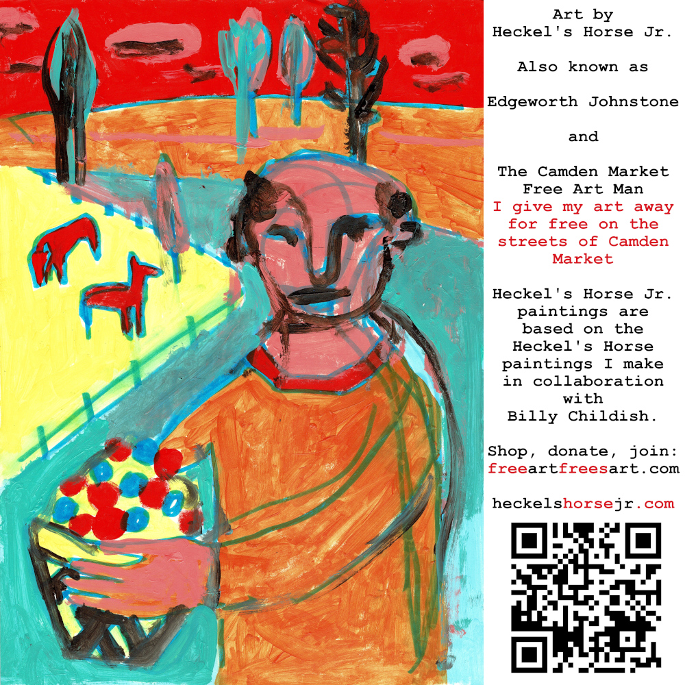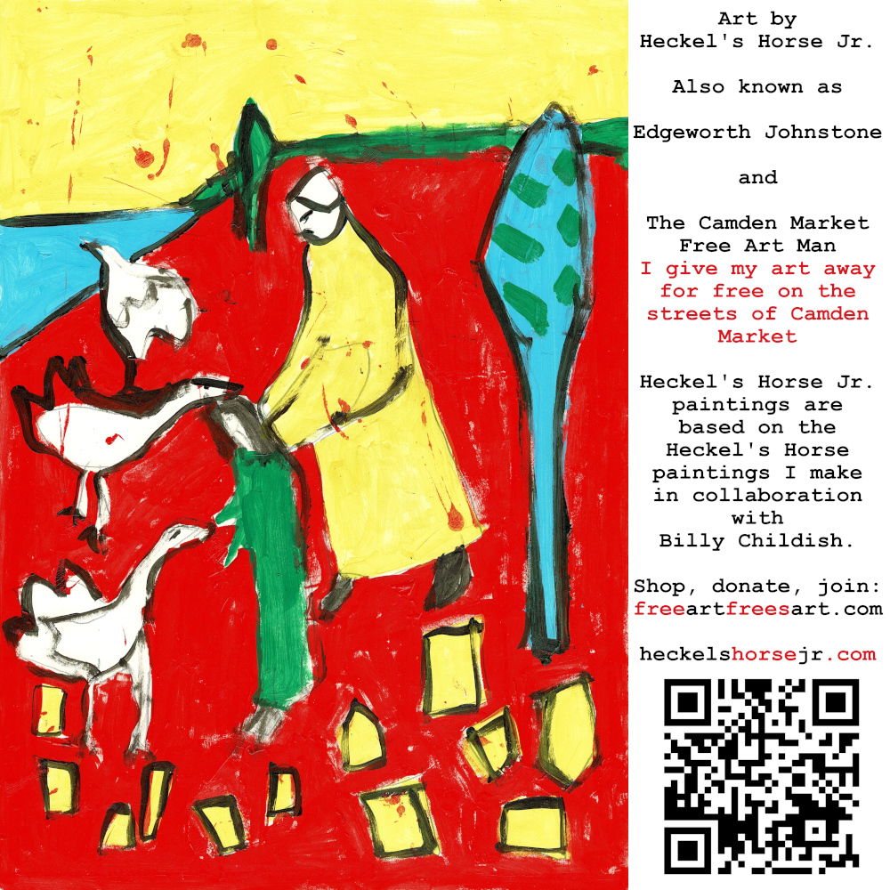 Art by Heckel’s Horse Jr. Also known as Edgeworth Johnstone and The Camden Market Free Art Man. I give my art away for free on the streets of Camden Market. Heckel’s Horse Jr. paintings are based on the Heckel’s Horse paintings I make in collaboration with Billy Childish.