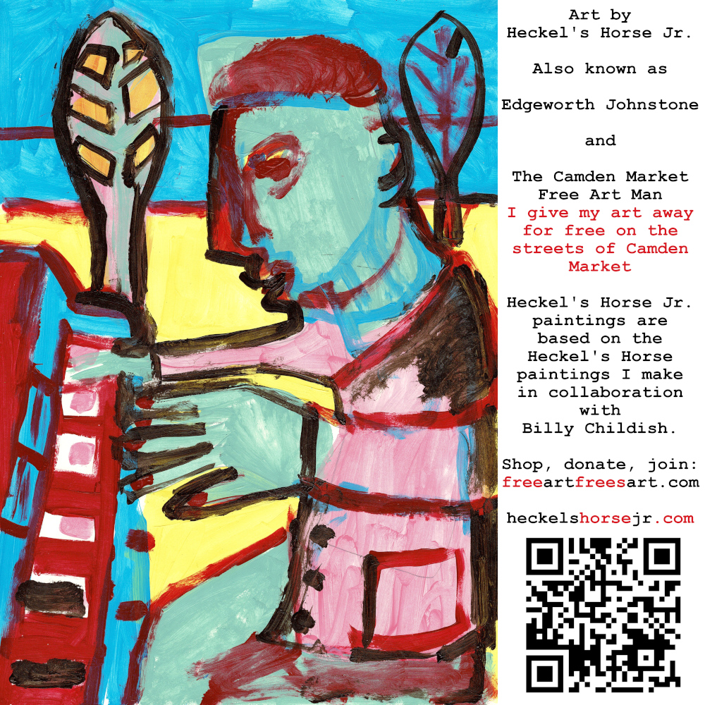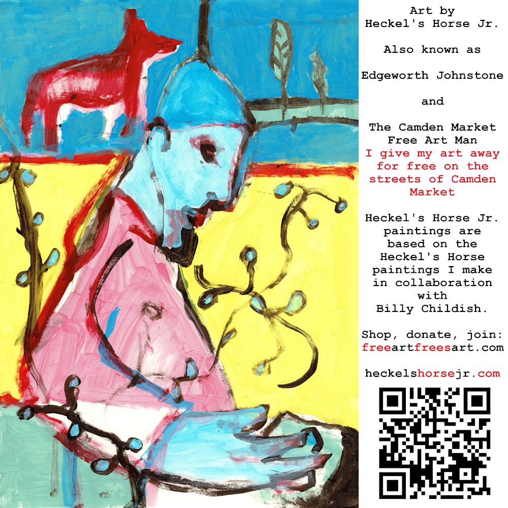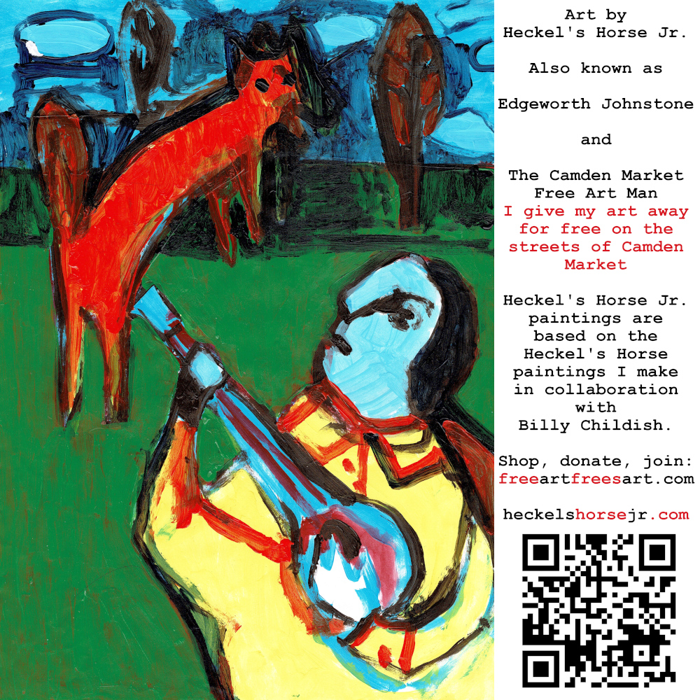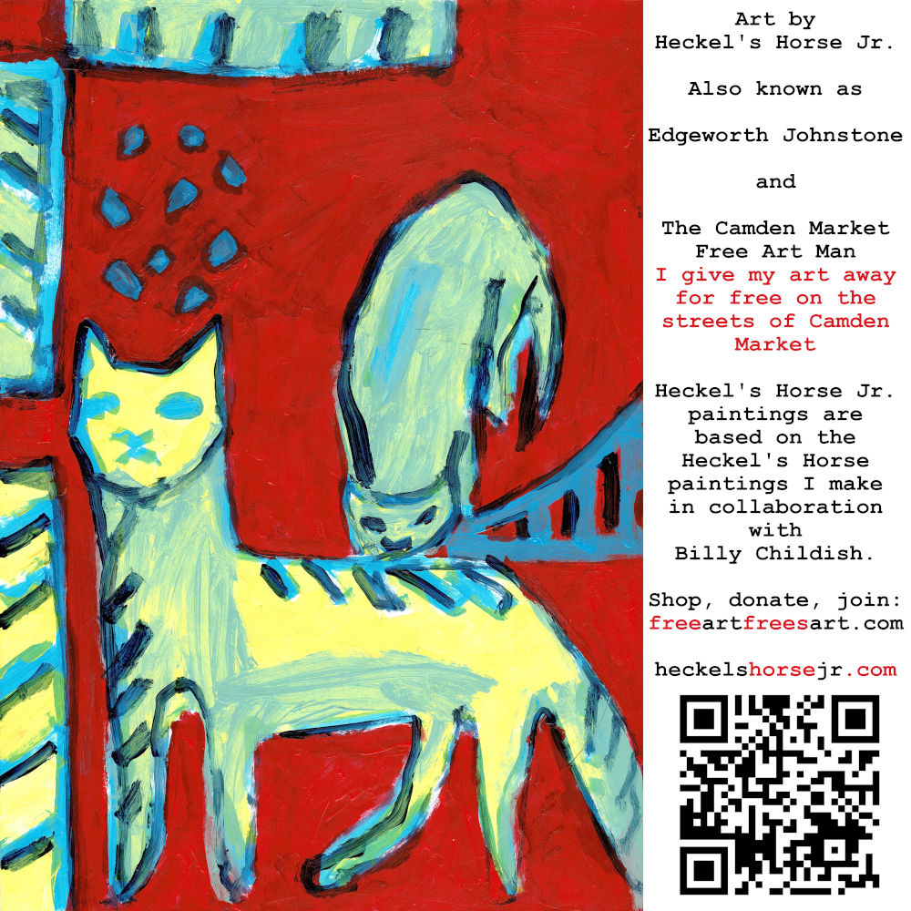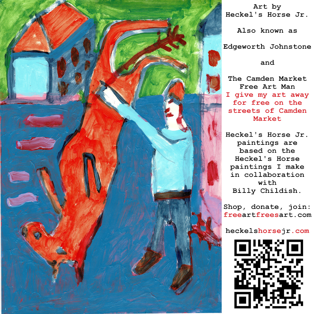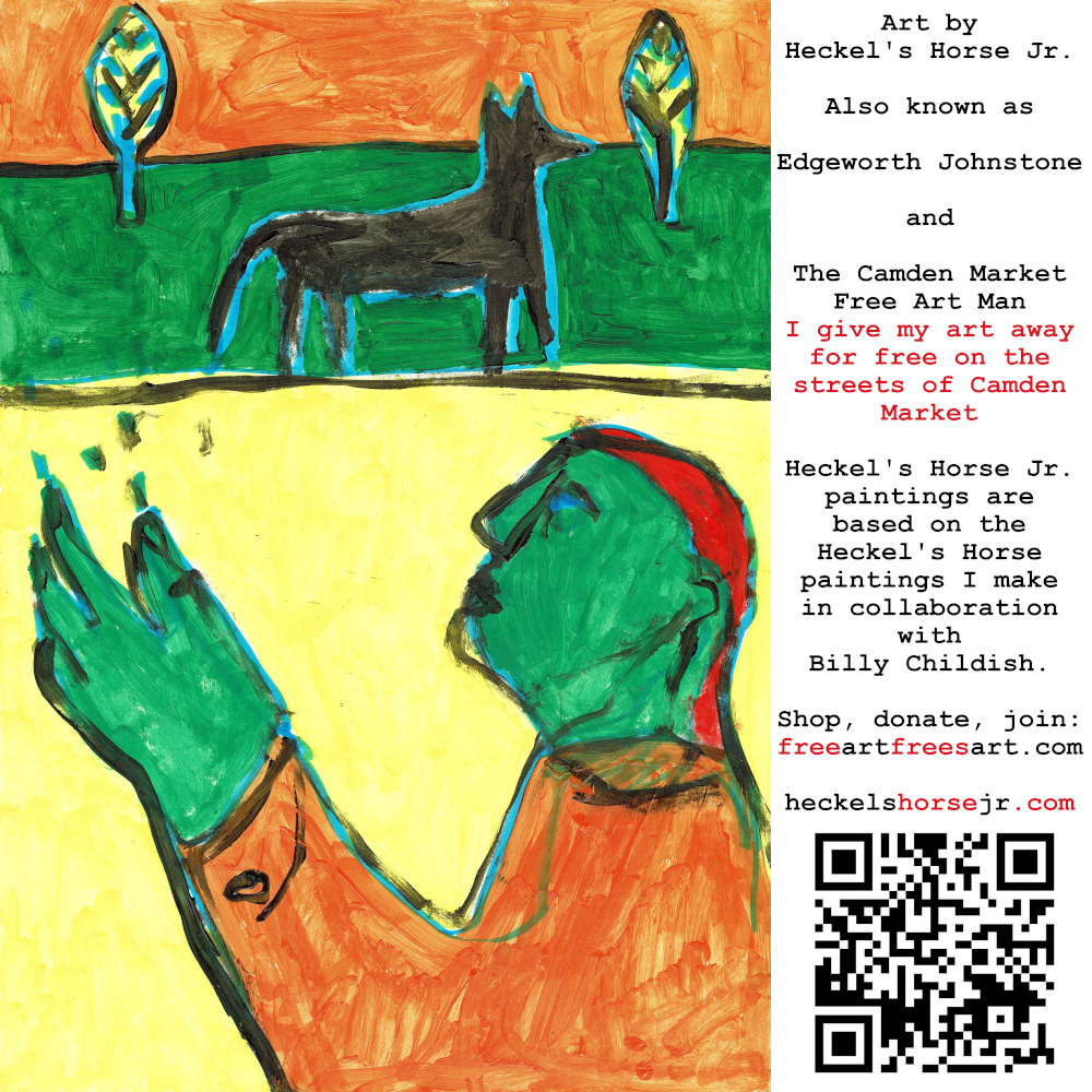 Art by Heckel’s Horse Jr. Also known as Edgeworth Johnstone and The Camden Market Free Art Man. I give my art away for free on the streets of Camden Market. Heckel’s Horse Jr. paintings are based on the Heckel’s Horse paintings I make in collaboration with Billy Childish.