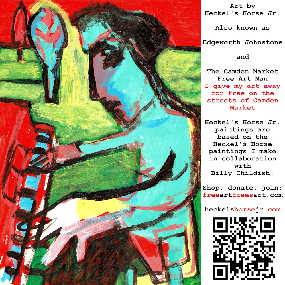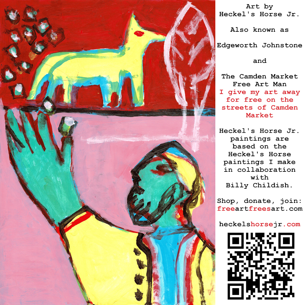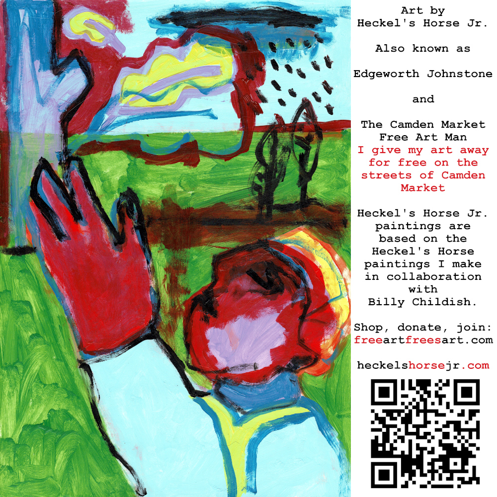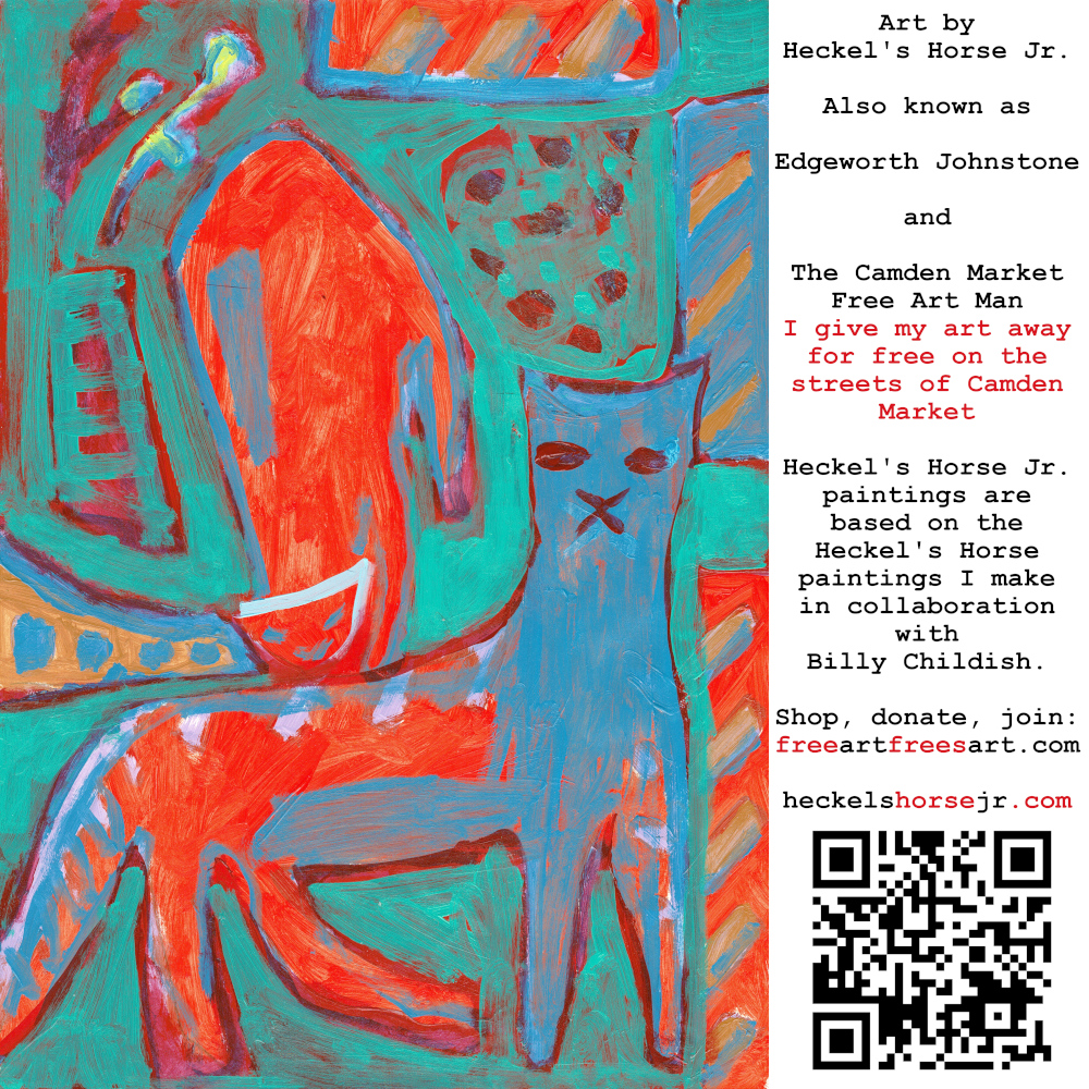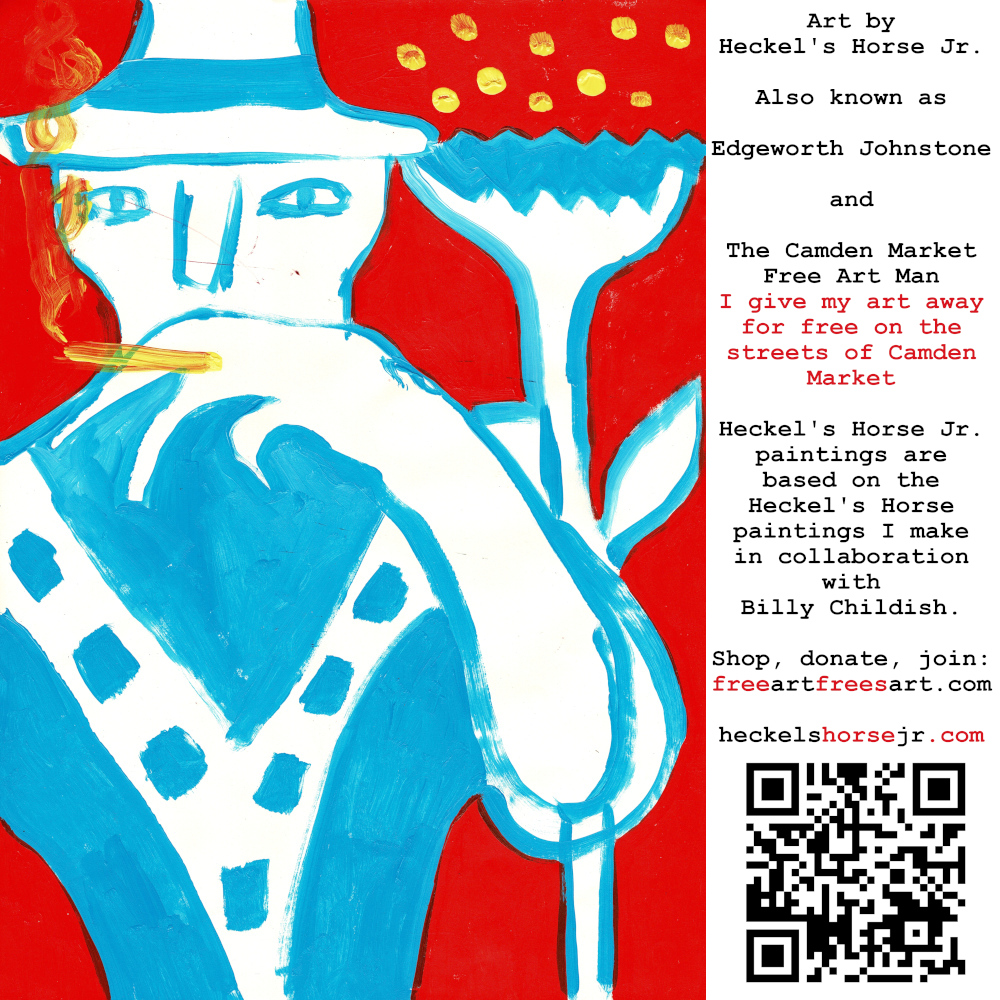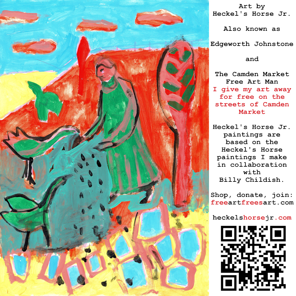 Art by Heckel’s Horse Jr. Also known as Edgeworth Johnstone and The Camden Market Free Art Man. I give my art away for free on the streets of Camden Market. Heckel’s Horse Jr. paintings are based on the Heckel’s Horse paintings I make in collaboration with Billy Childish.