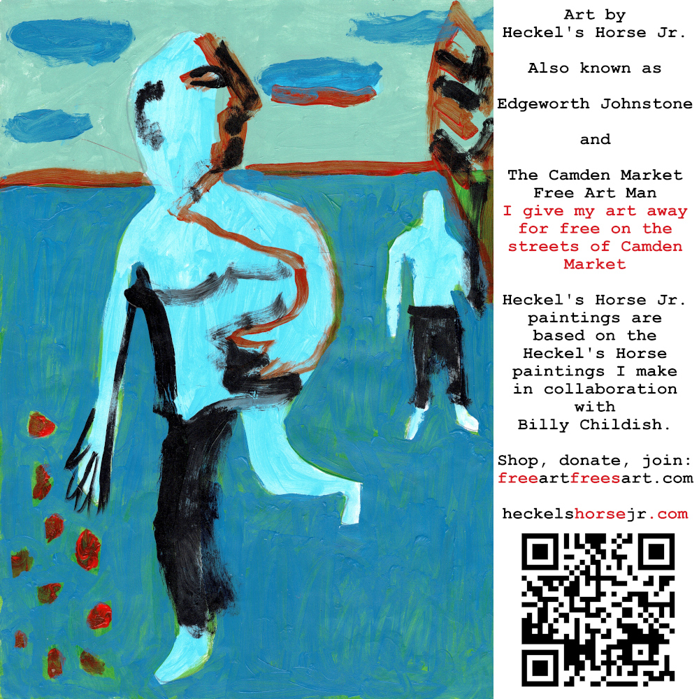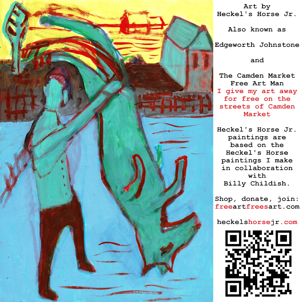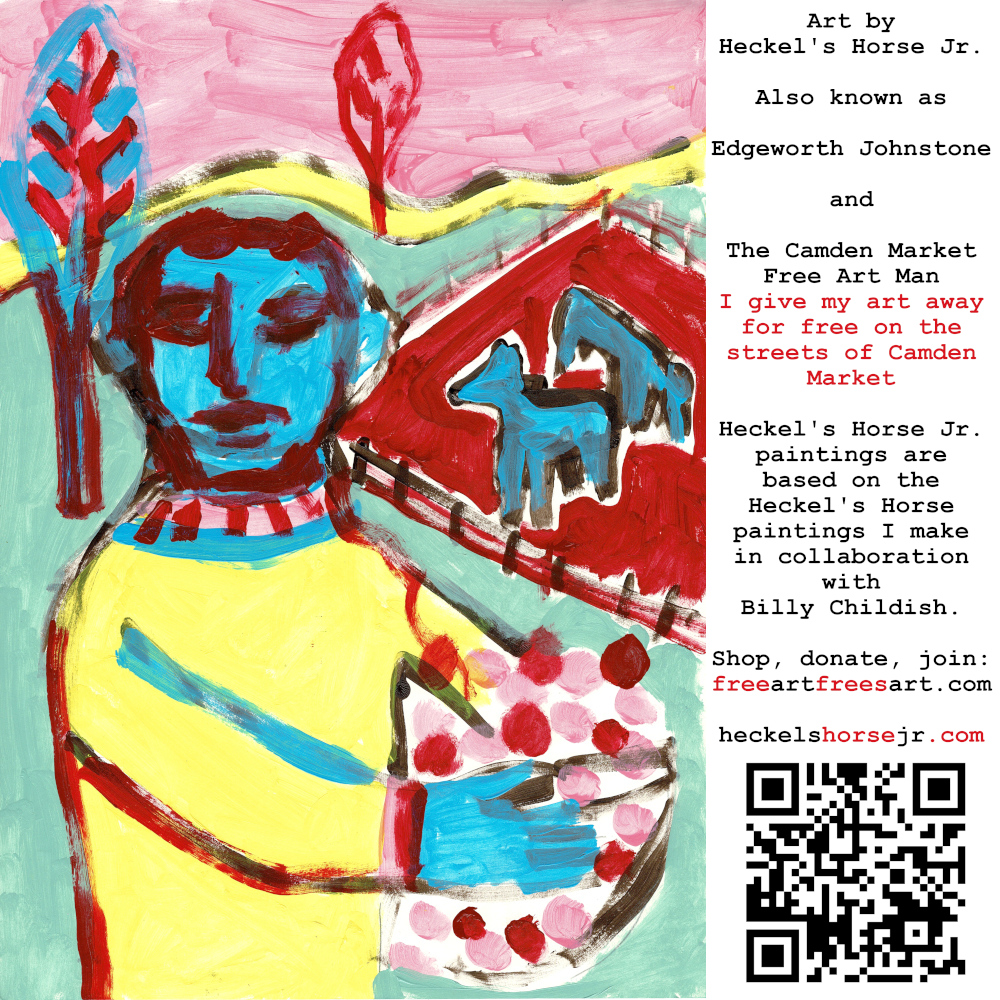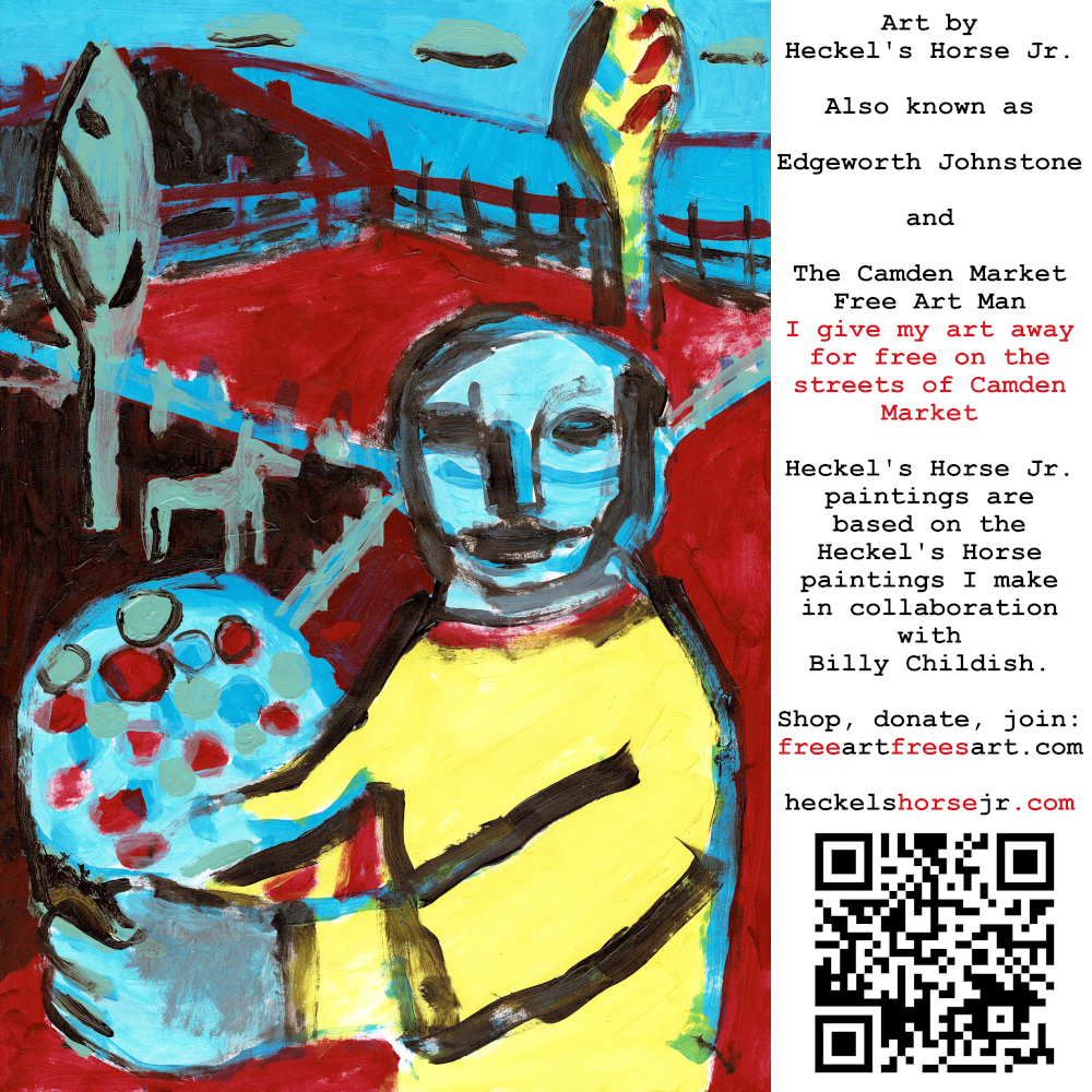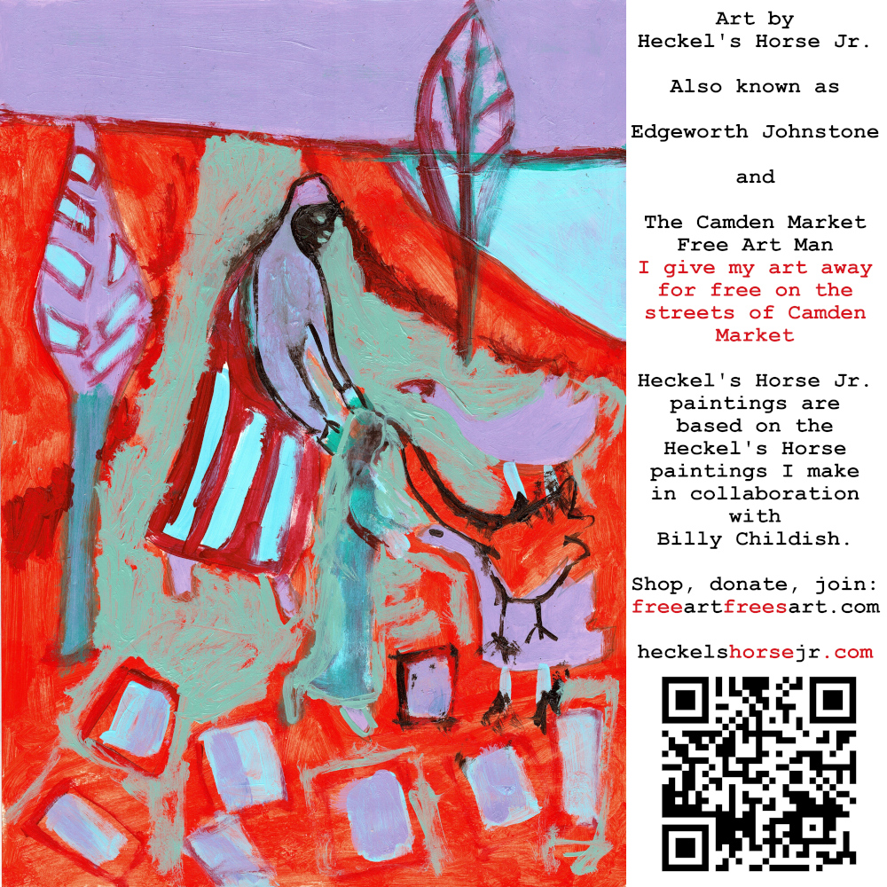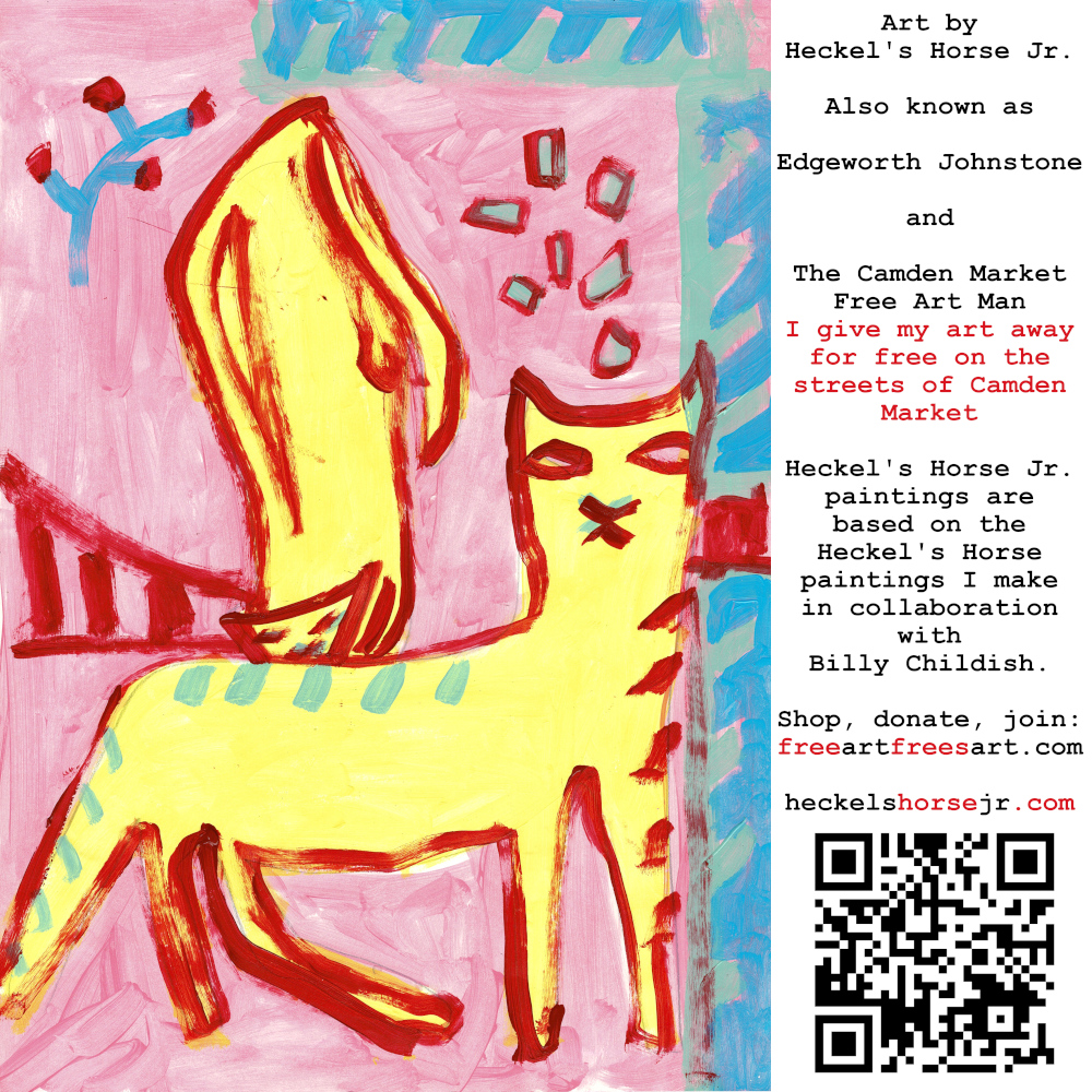 Art by Heckel’s Horse Jr. Also known as Edgeworth Johnstone and The Camden Market Free Art Man. I give my art away for free on the streets of Camden Market. Heckel’s Horse Jr. paintings are based on the Heckel’s Horse paintings I make in collaboration with Billy Childish.