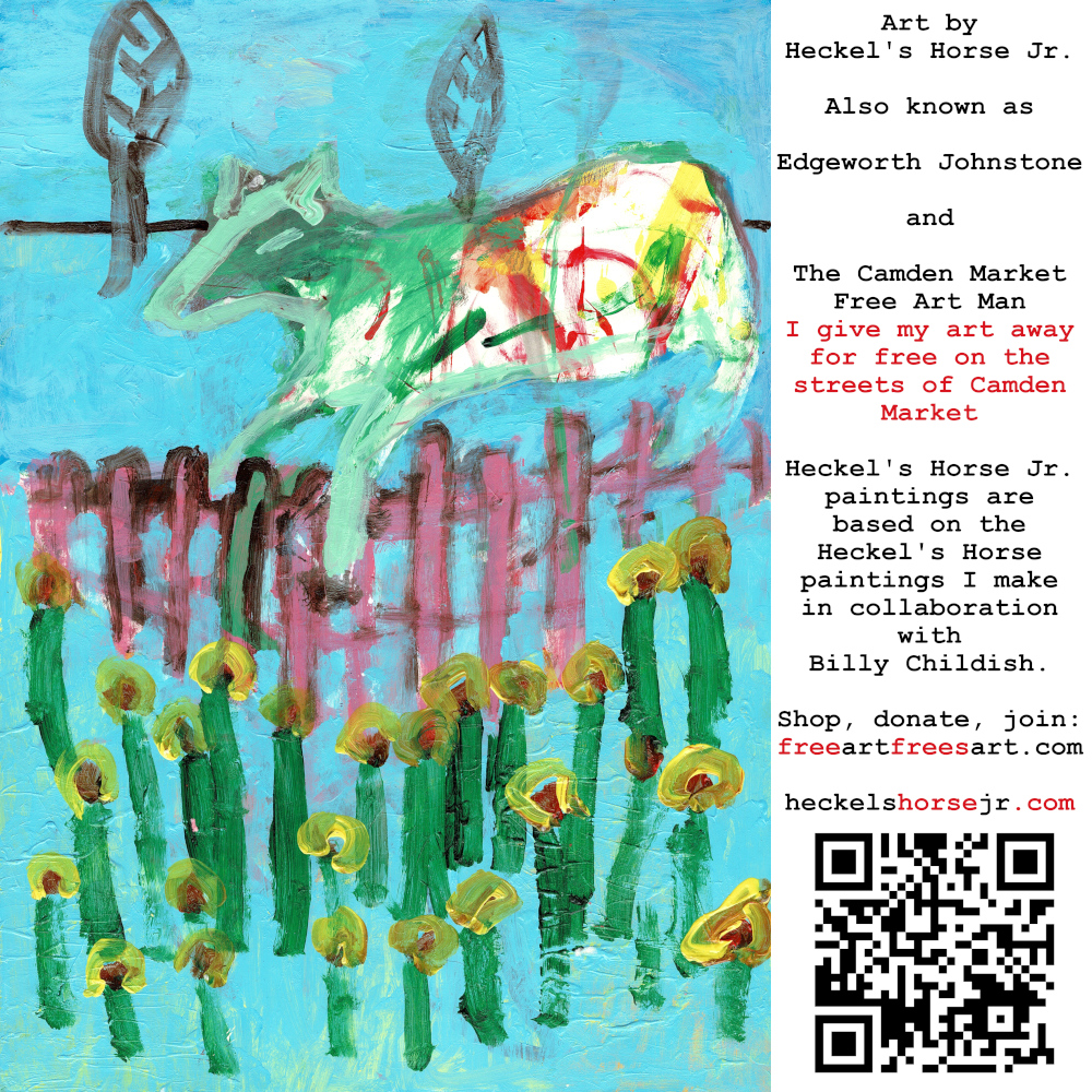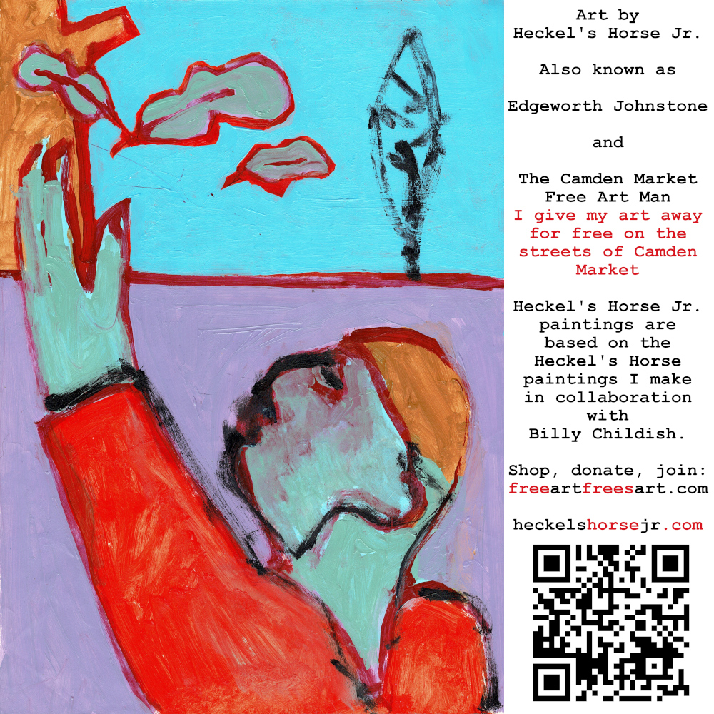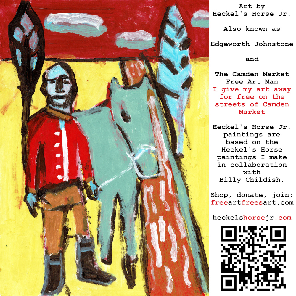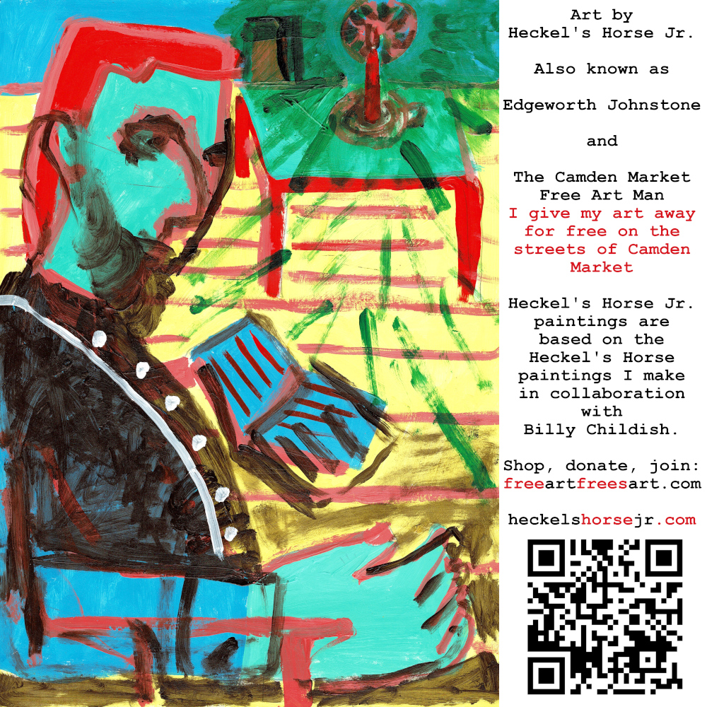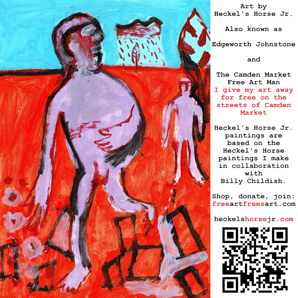 Art by Heckel’s Horse Jr. Also known as Edgeworth Johnstone and The Camden Market Free Art Man. I give my art away for free on the streets of Camden Market. Heckel’s Horse Jr. paintings are based on the Heckel’s Horse paintings I make in collaboration with Billy Childish.