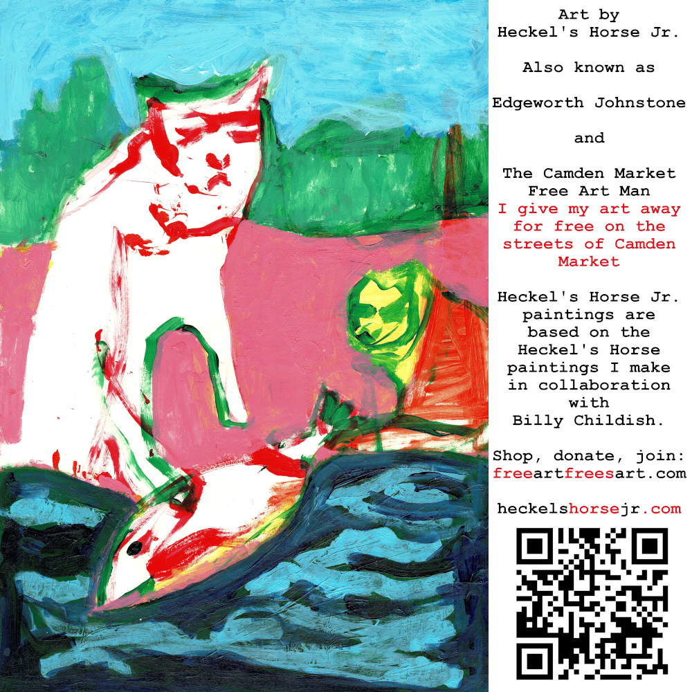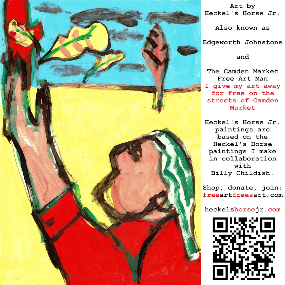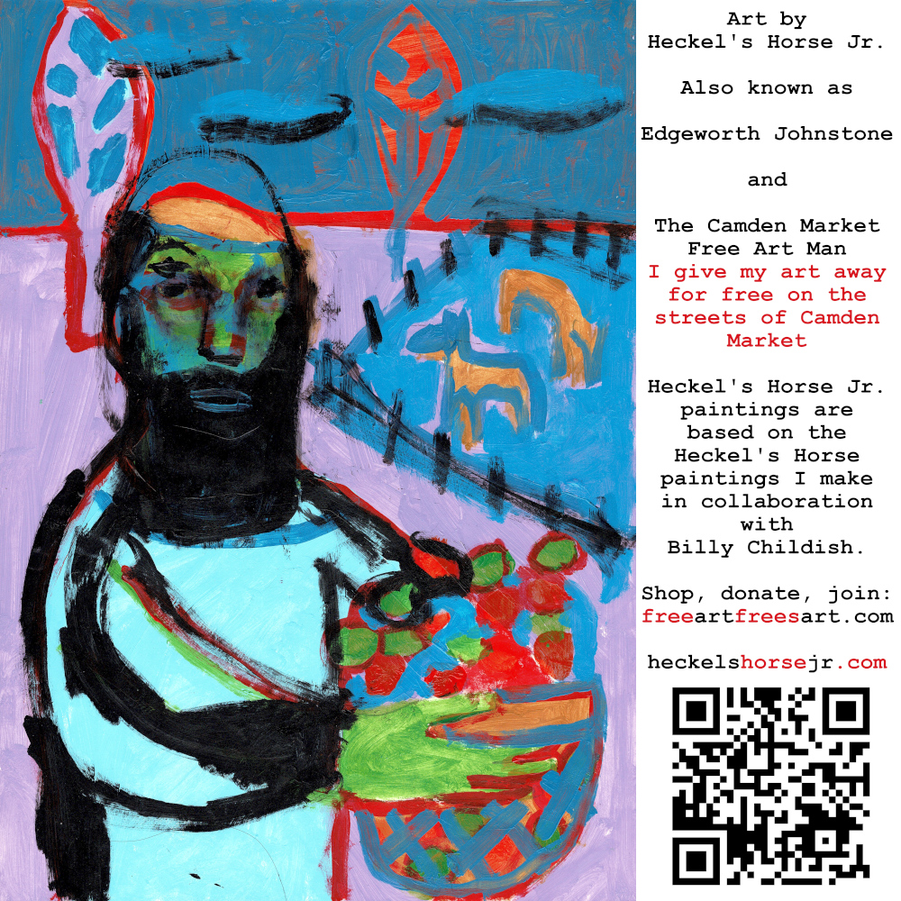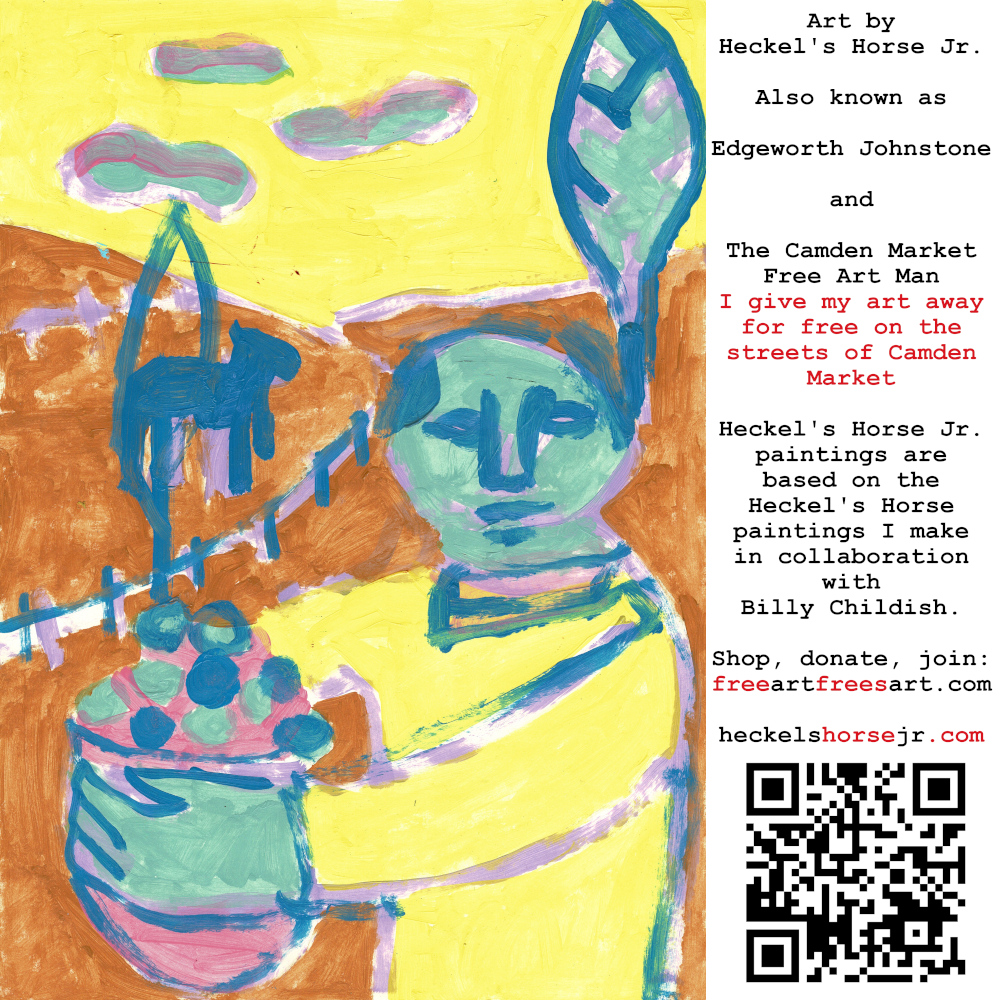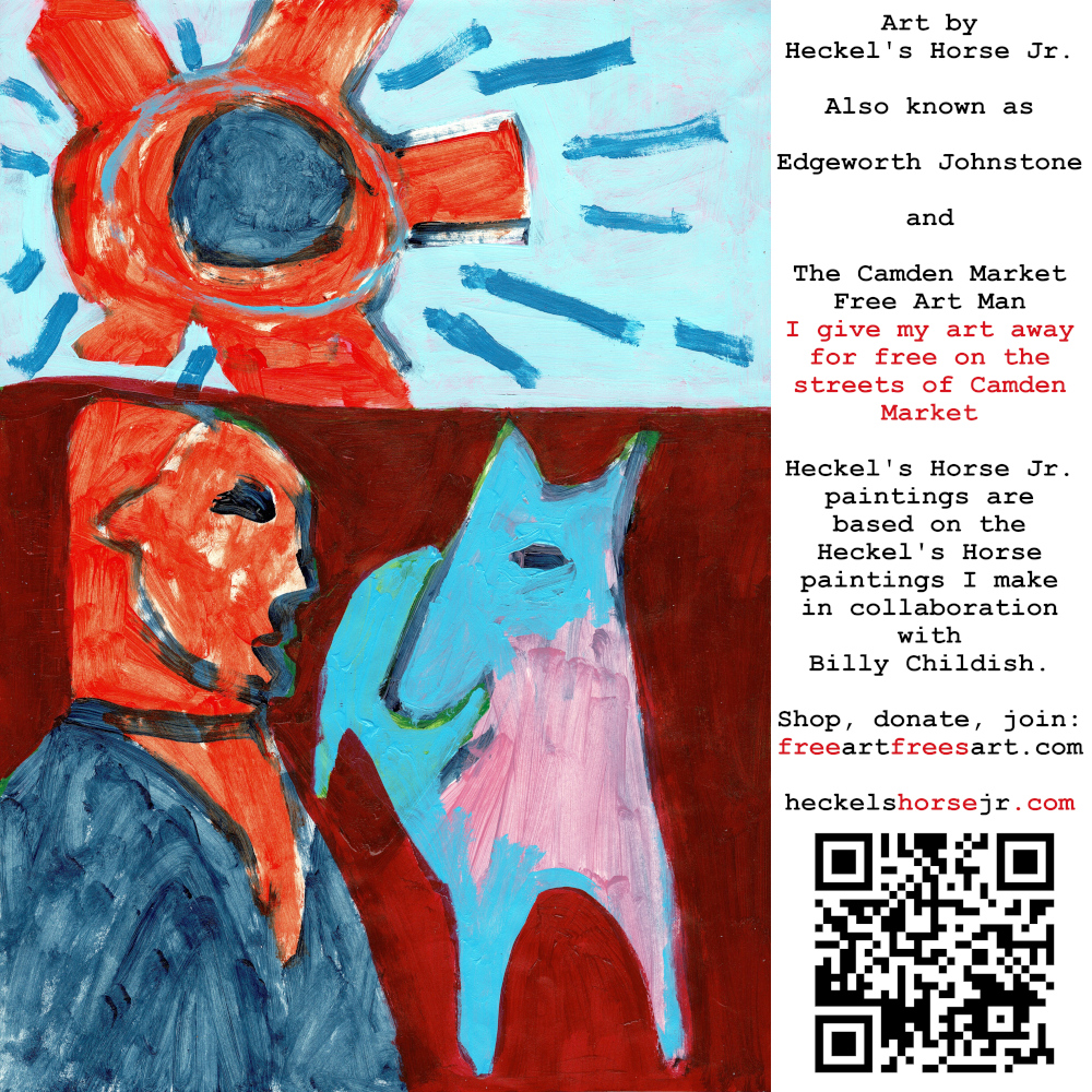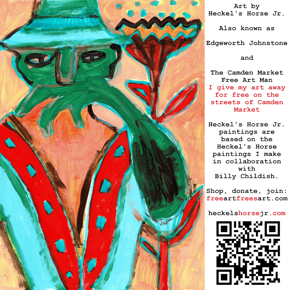 Art by Heckel’s Horse Jr. Also known as Edgeworth Johnstone and The Camden Market Free Art Man. I give my art away for free on the streets of Camden Market. Heckel’s Horse Jr. paintings are based on the Heckel’s Horse paintings I make in collaboration with Billy Childish.