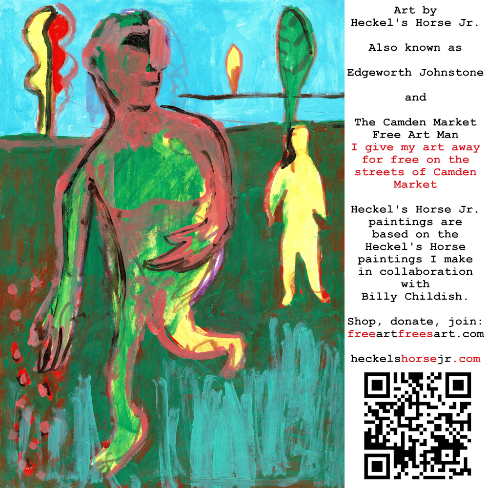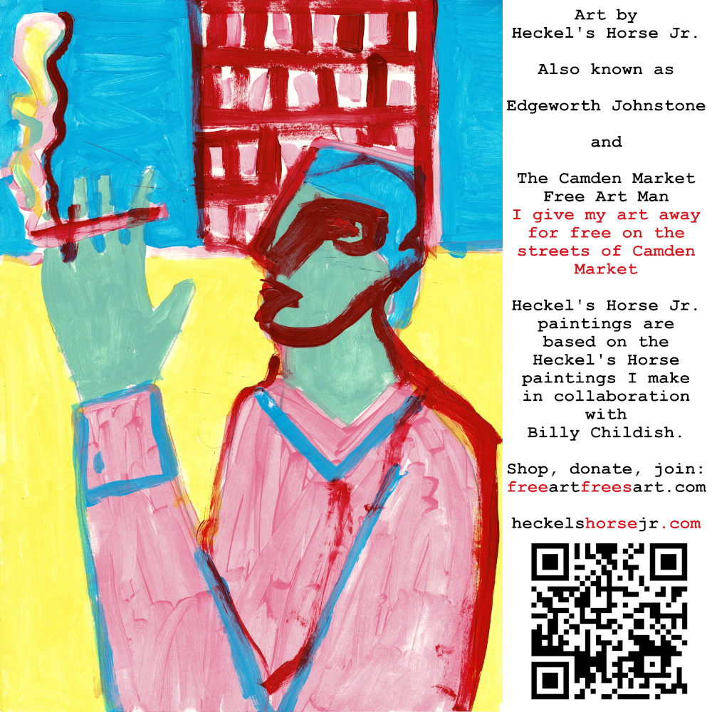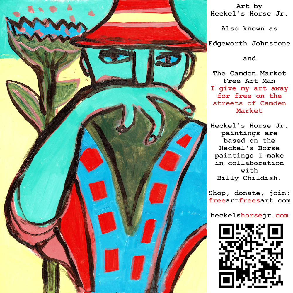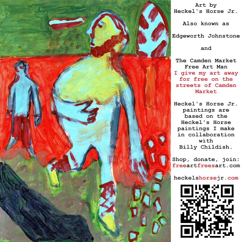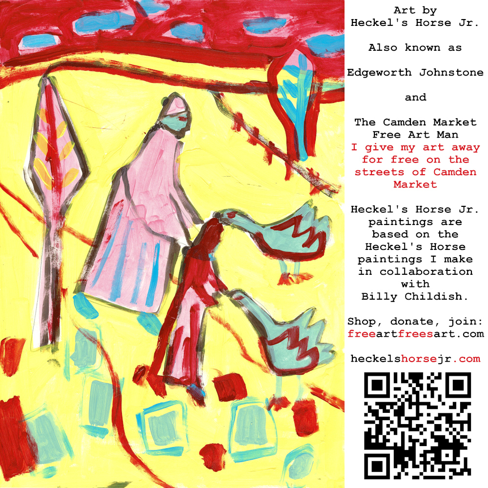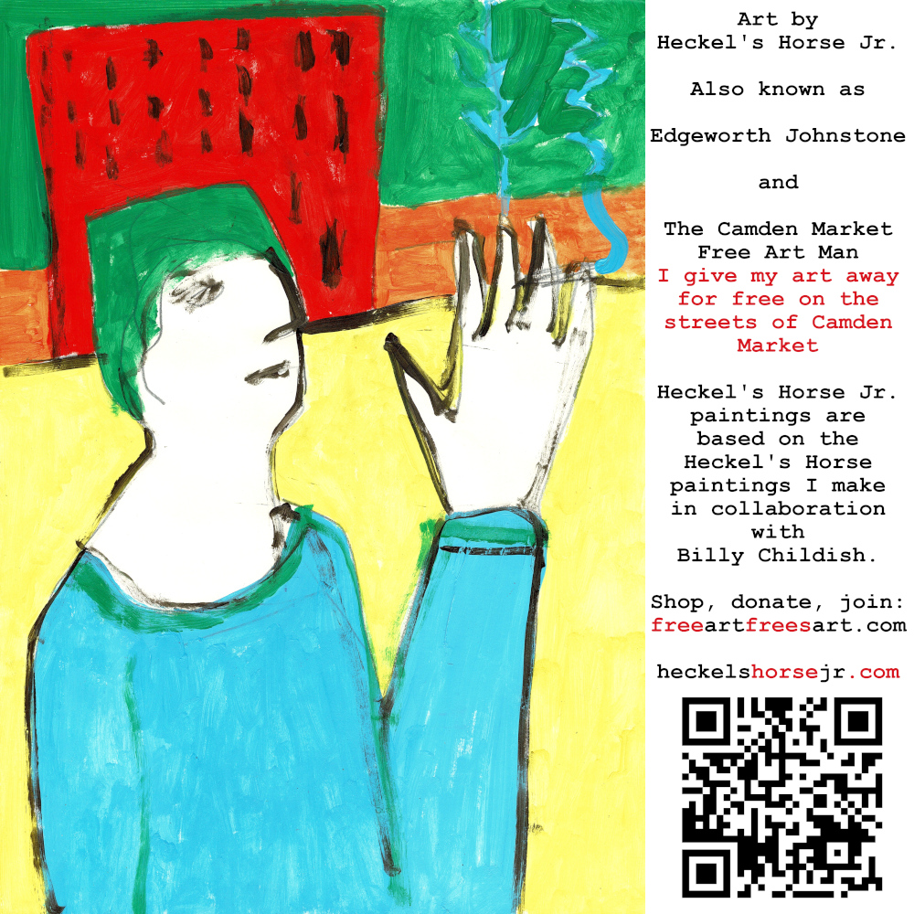 Art by Heckel’s Horse Jr. Also known as Edgeworth Johnstone and The Camden Market Free Art Man. I give my art away for free on the streets of Camden Market. Heckel’s Horse Jr. paintings are based on the Heckel’s Horse paintings I make in collaboration with Billy Childish.