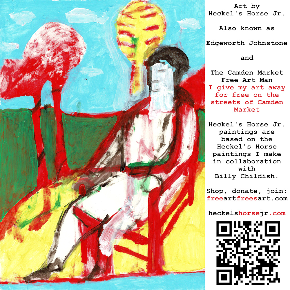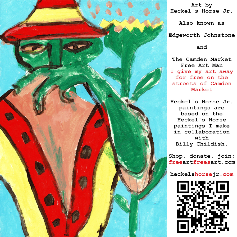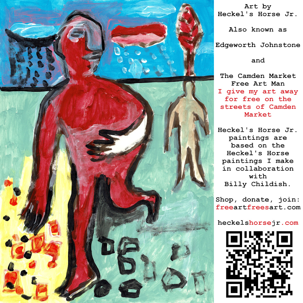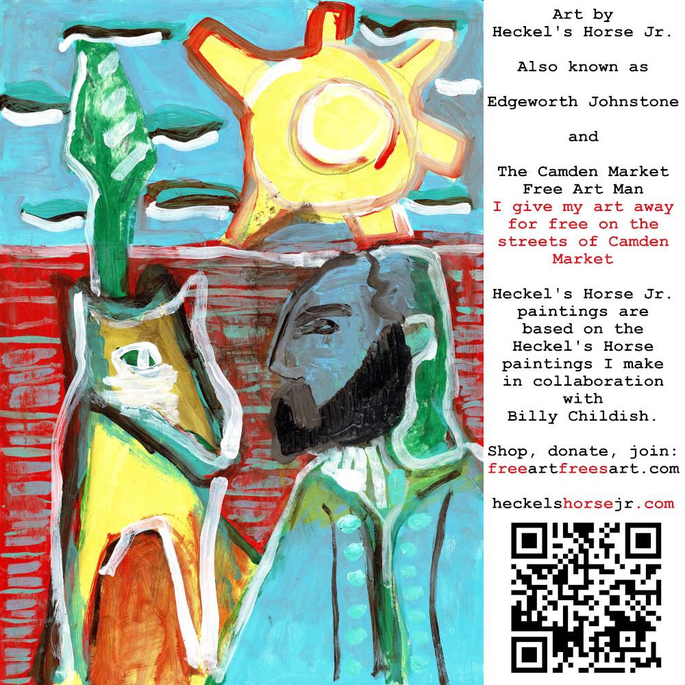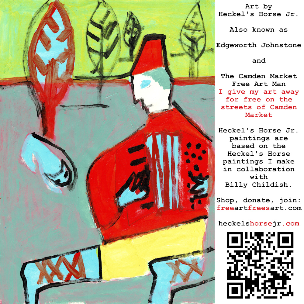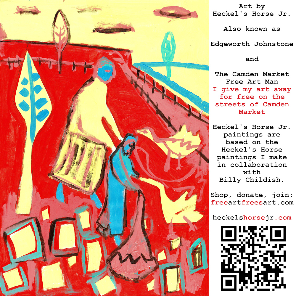 Art by Heckel’s Horse Jr. Also known as Edgeworth Johnstone and The Camden Market Free Art Man. I give my art away for free on the streets of Camden Market. Heckel’s Horse Jr. paintings are based on the Heckel’s Horse paintings I make in collaboration with Billy Childish.