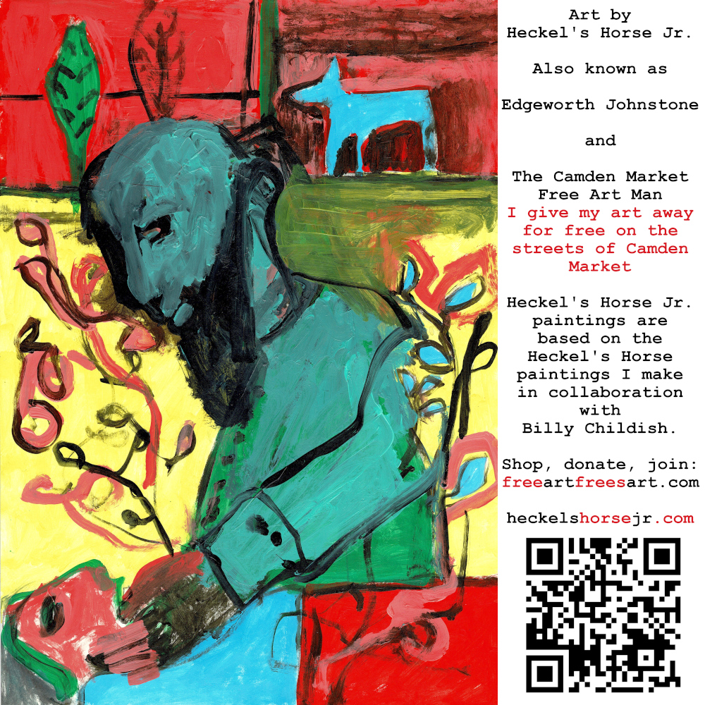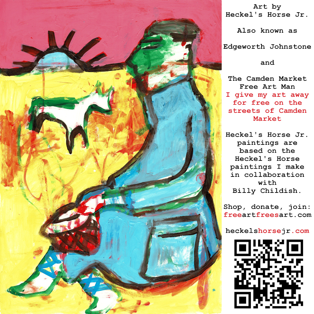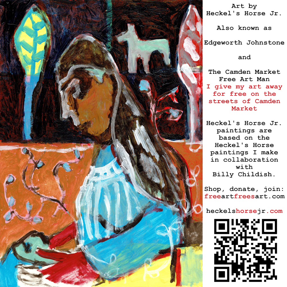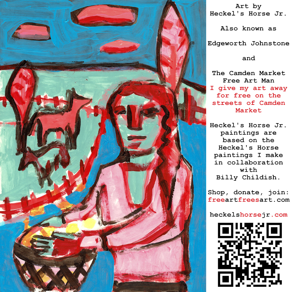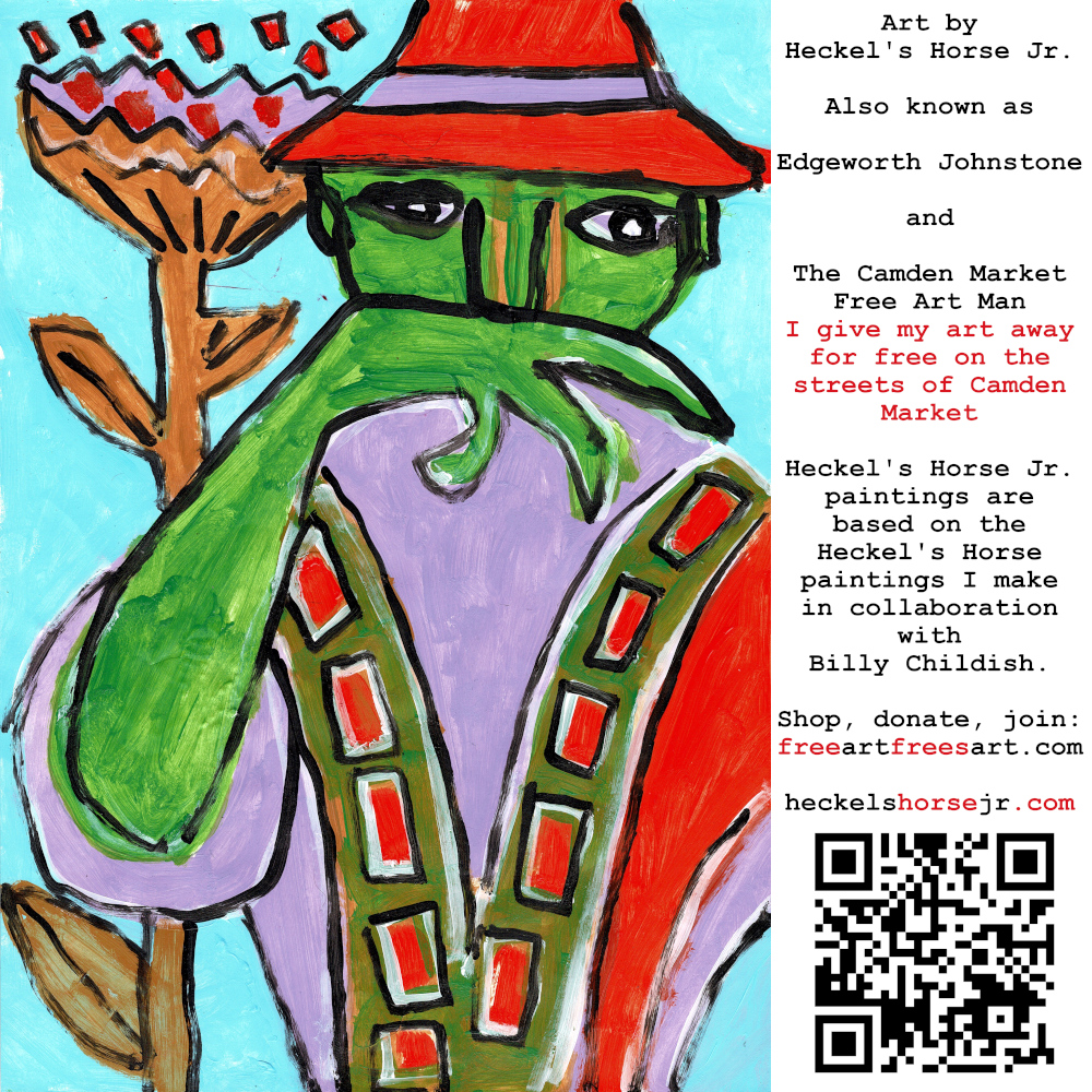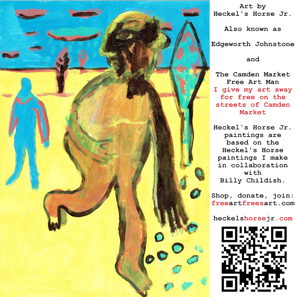 Art by Heckel’s Horse Jr. Also known as Edgeworth Johnstone and The Camden Market Free Art Man. I give my art away for free on the streets of Camden Market. Heckel’s Horse Jr. paintings are based on the Heckel’s Horse paintings I make in collaboration with Billy Childish.