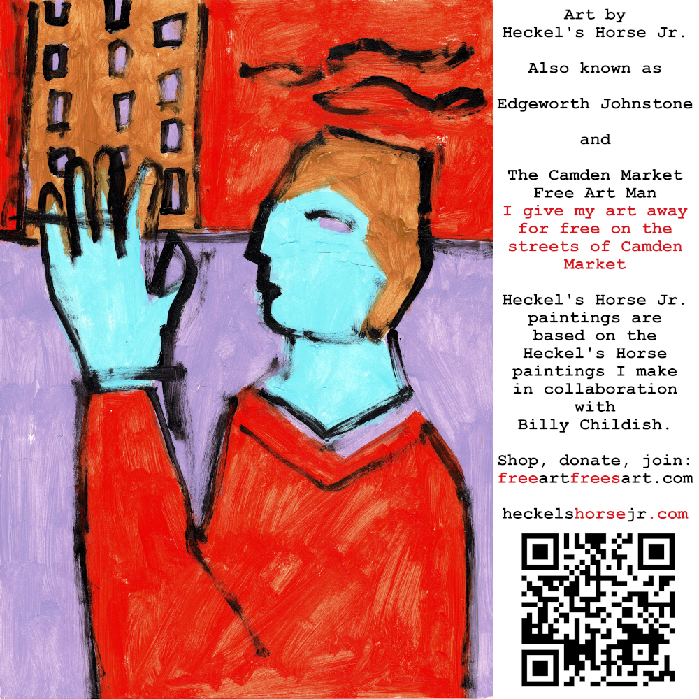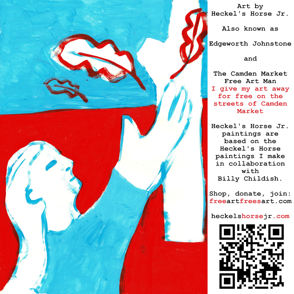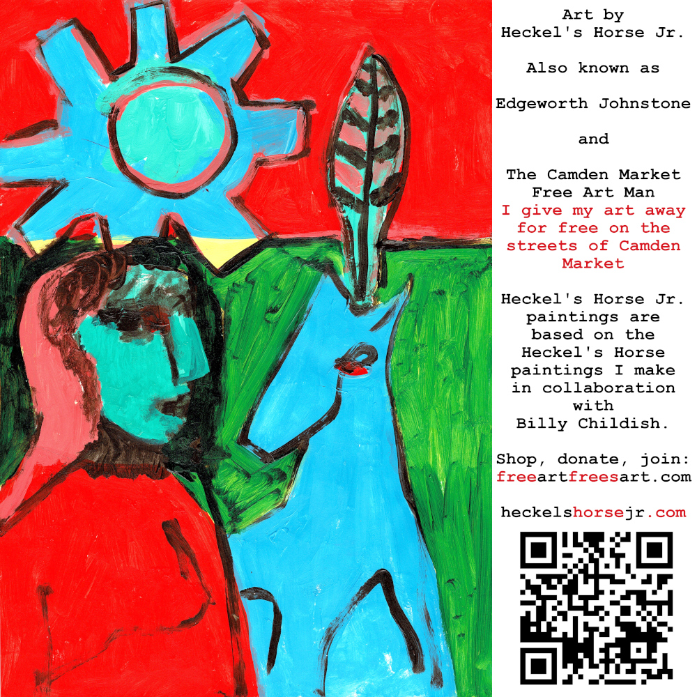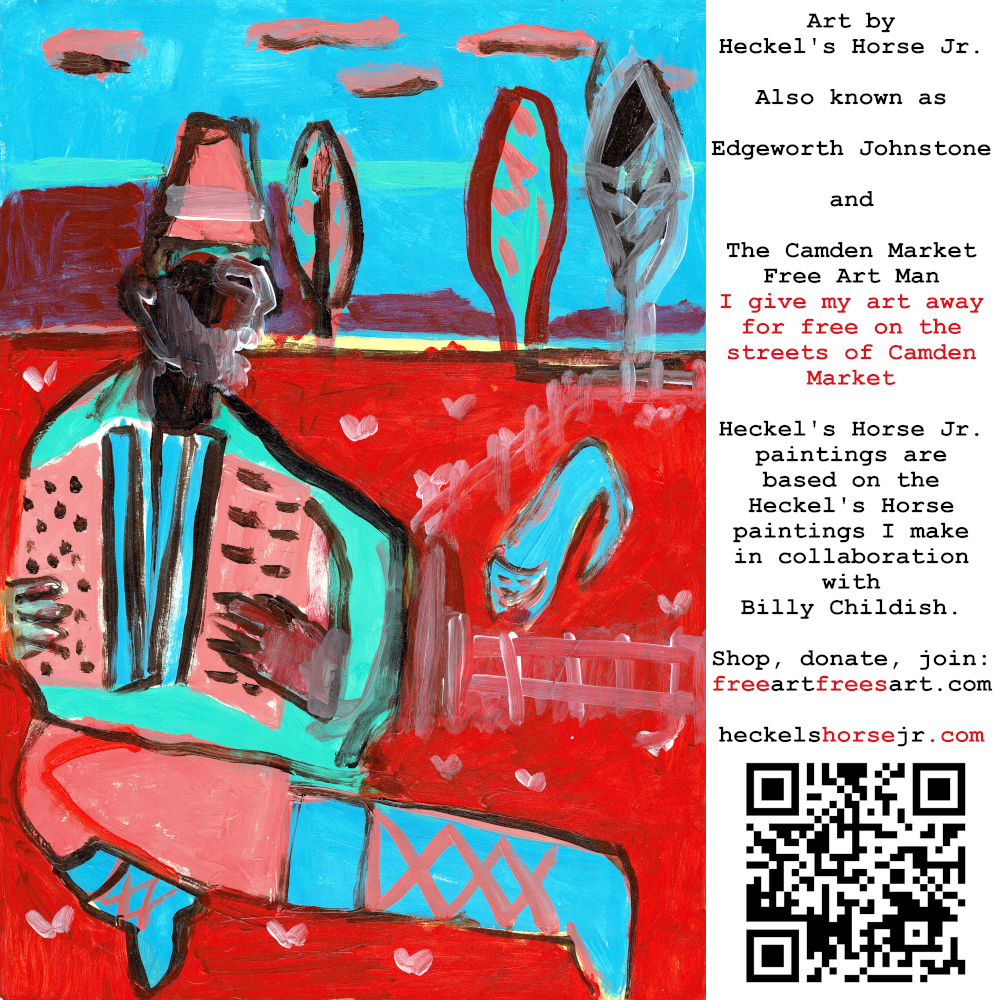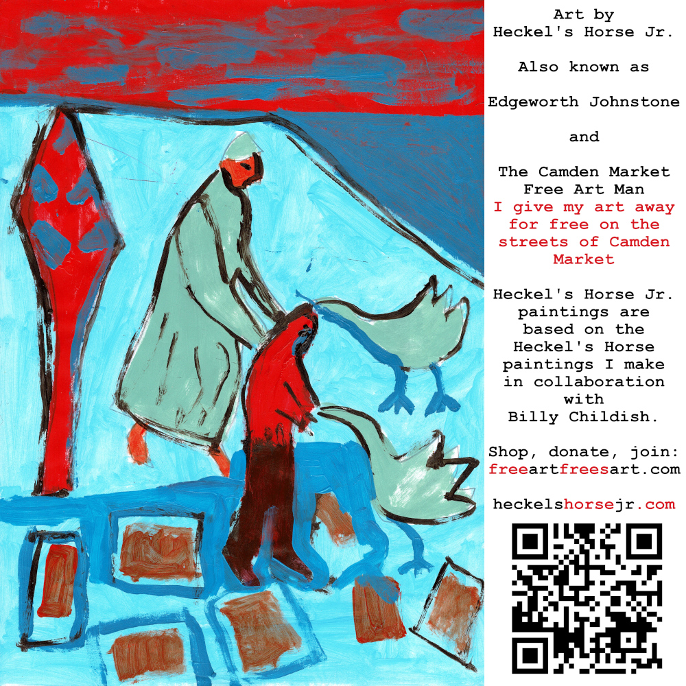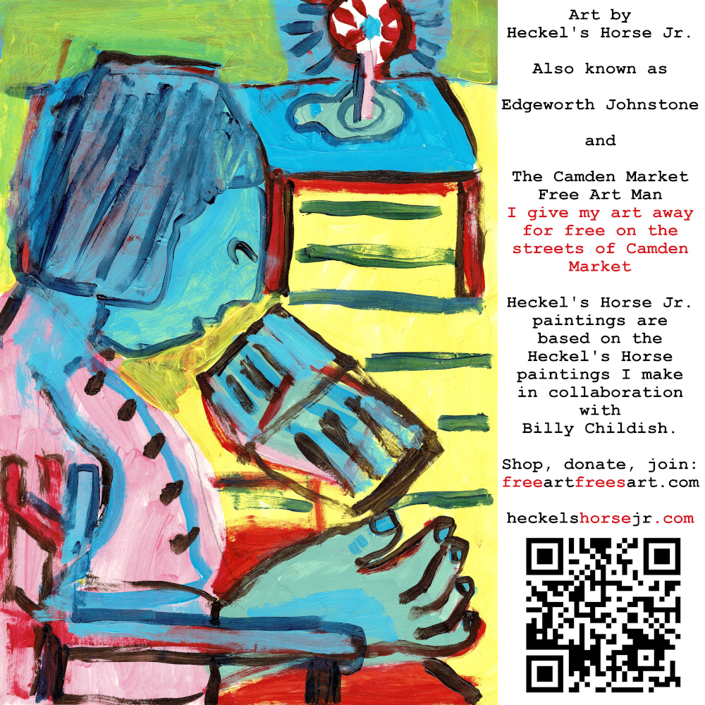 Art by Heckel’s Horse Jr. Also known as Edgeworth Johnstone and The Camden Market Free Art Man. I give my art away for free on the streets of Camden Market. Heckel’s Horse Jr. paintings are based on the Heckel’s Horse paintings I make in collaboration with Billy Childish.