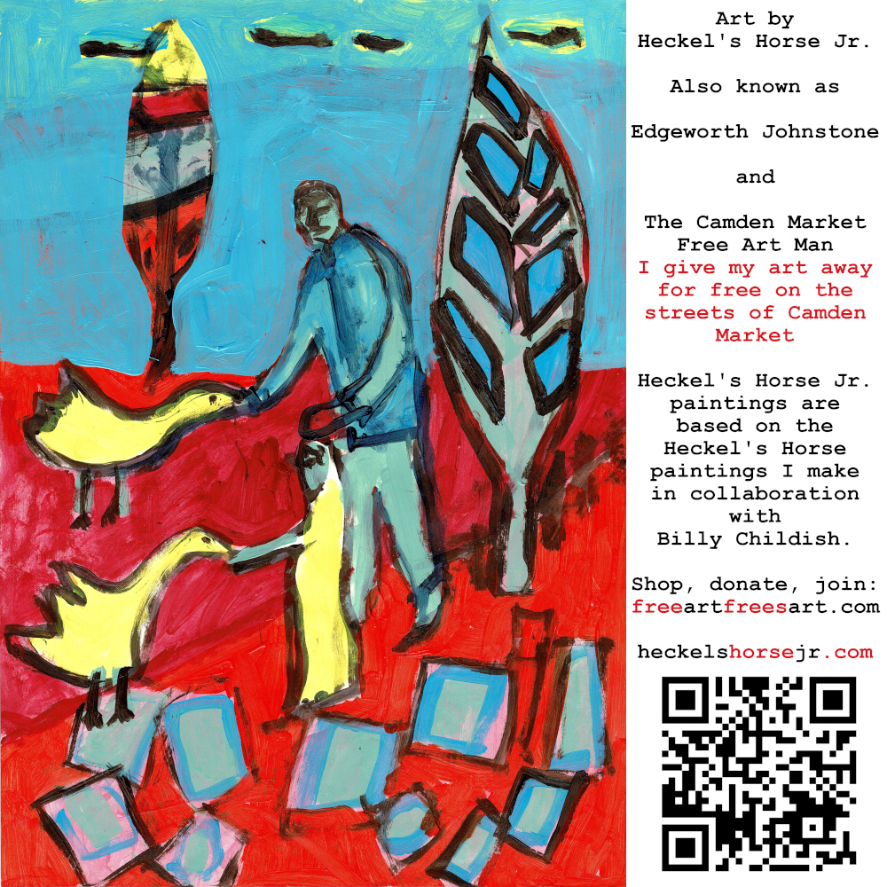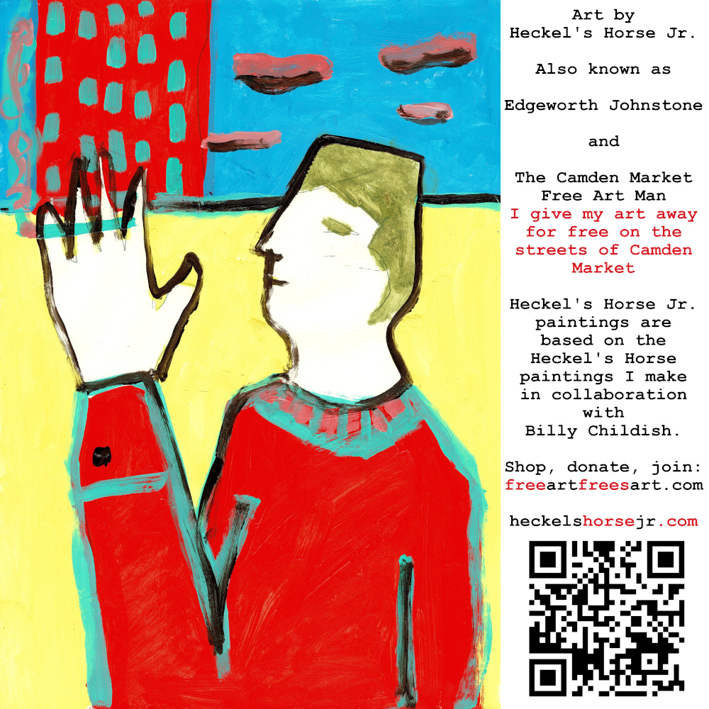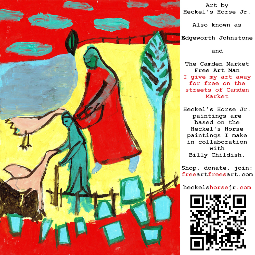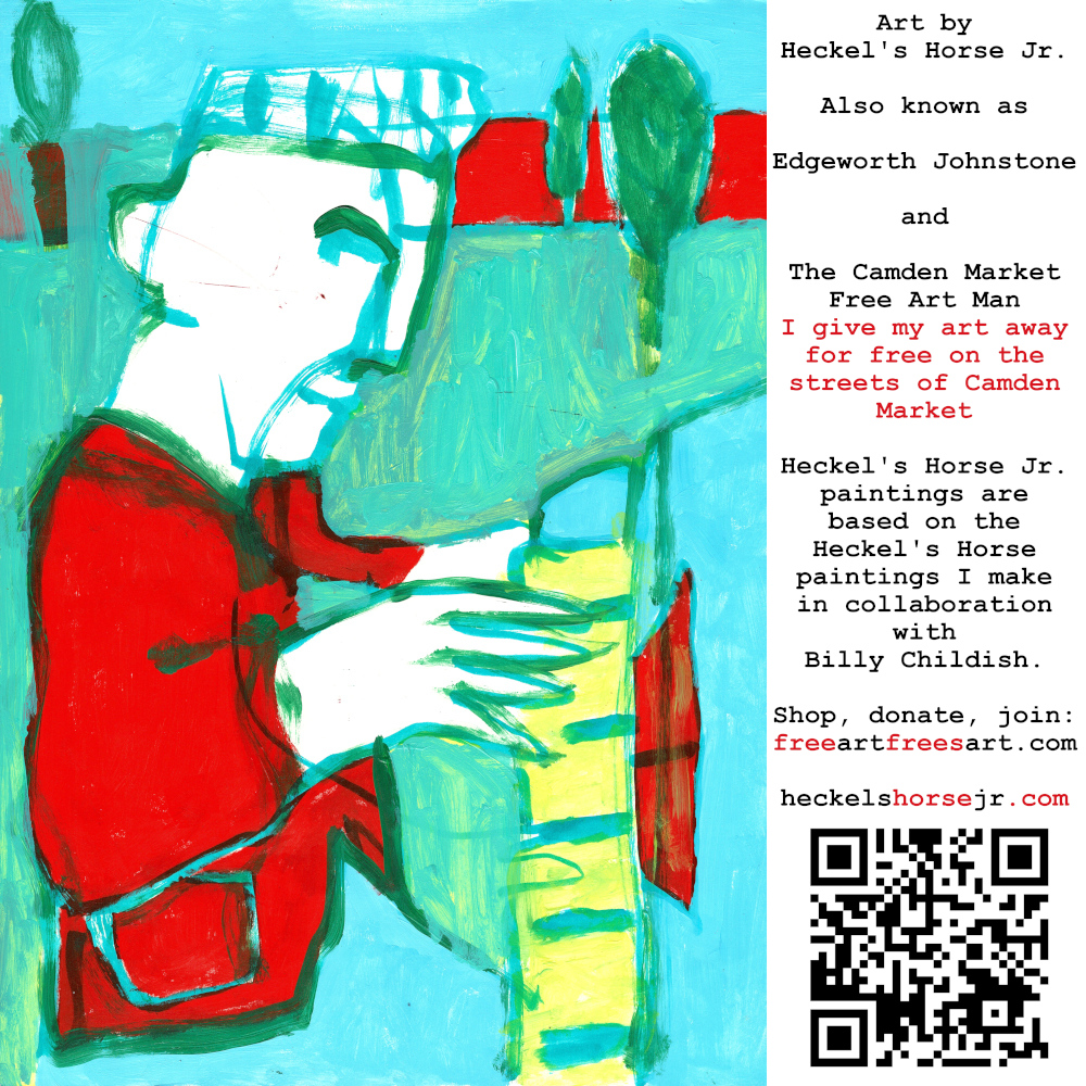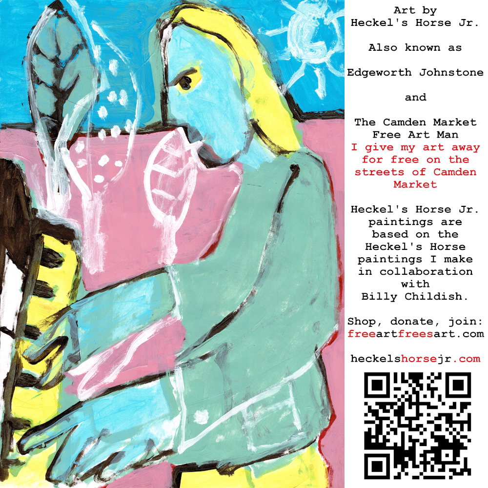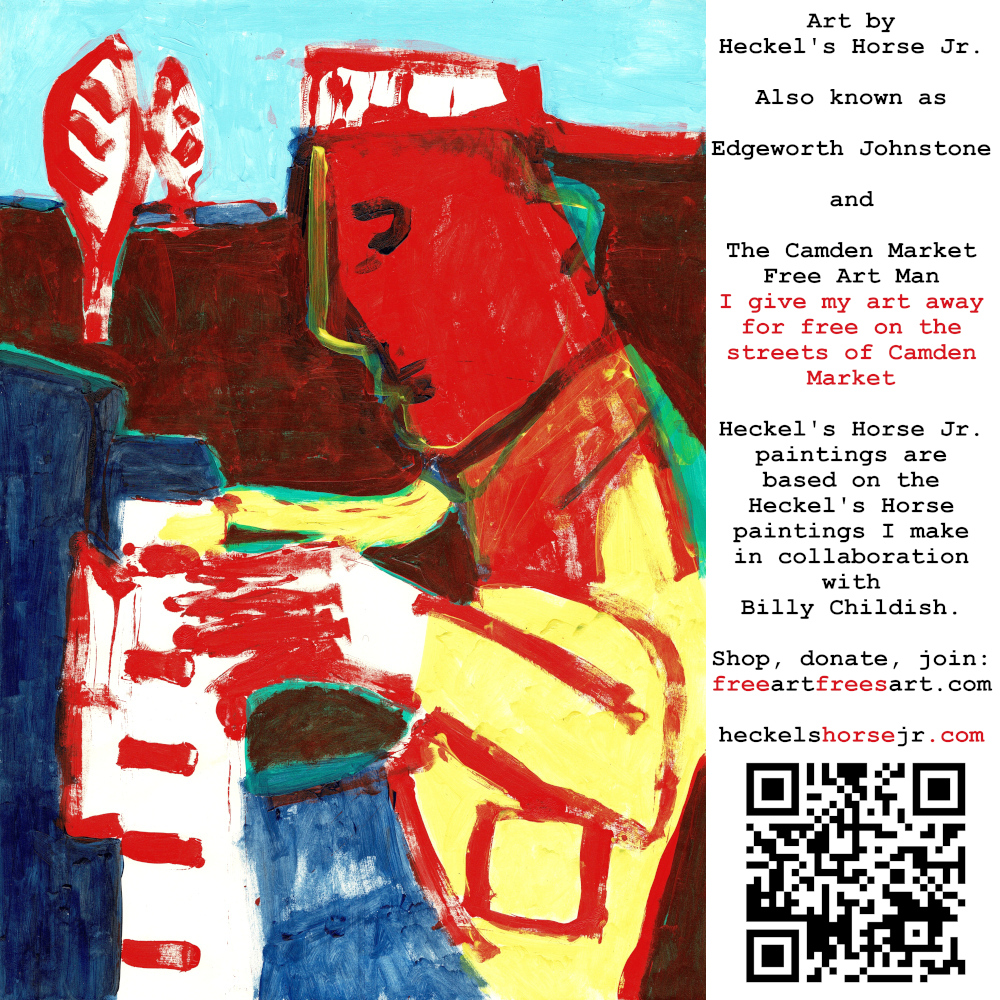 Art by Heckel’s Horse Jr. Also known as Edgeworth Johnstone and The Camden Market Free Art Man. I give my art away for free on the streets of Camden Market. Heckel’s Horse Jr. paintings are based on the Heckel’s Horse paintings I make in collaboration with Billy Childish.