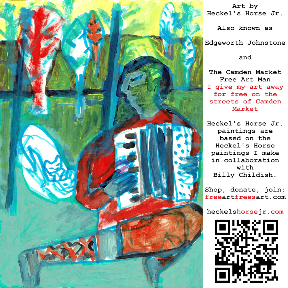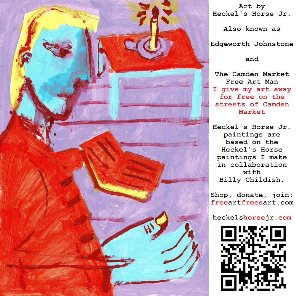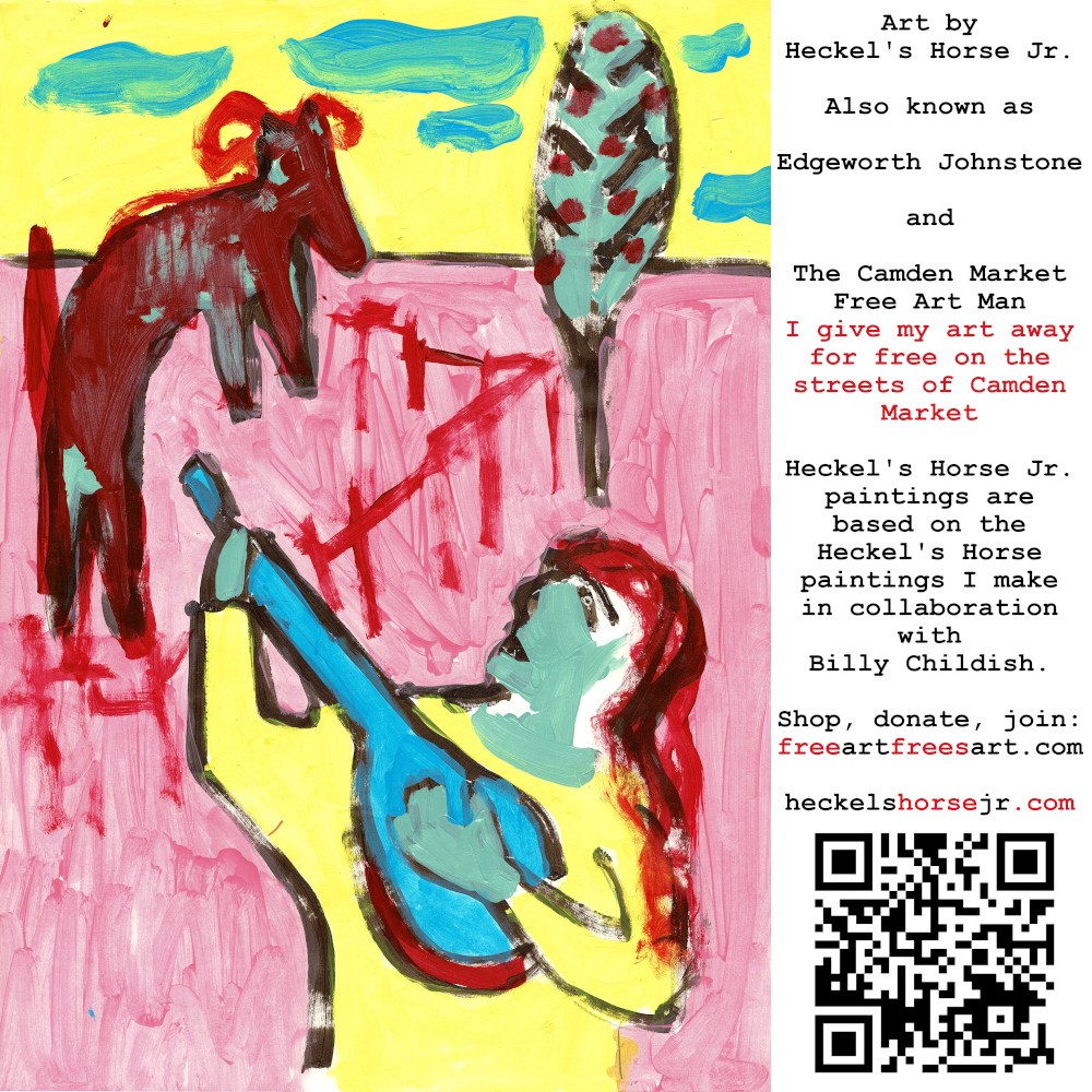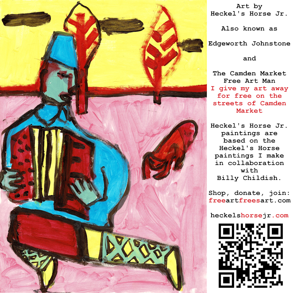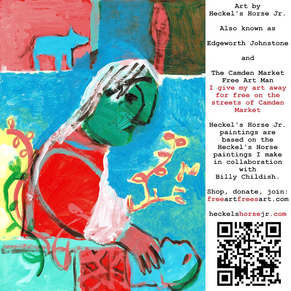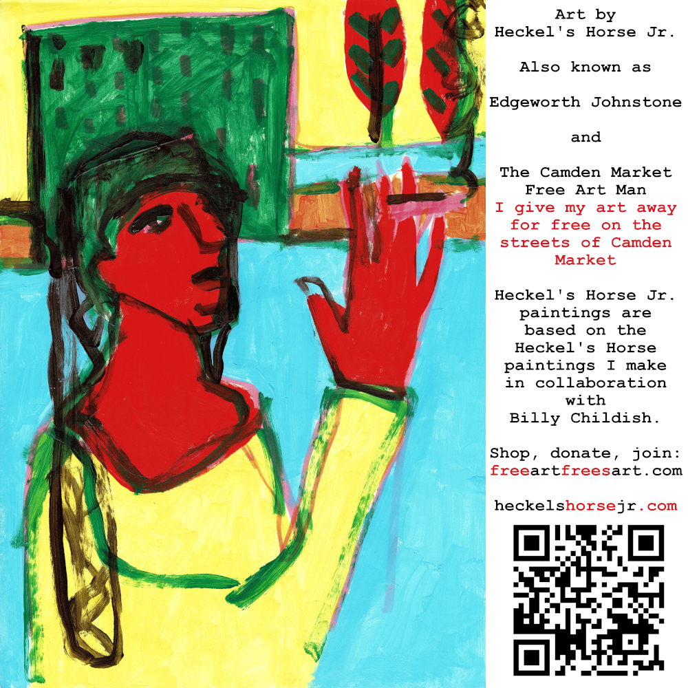 Art by Heckel’s Horse Jr. Also known as Edgeworth Johnstone and The Camden Market Free Art Man. I give my art away for free on the streets of Camden Market. Heckel’s Horse Jr. paintings are based on the Heckel’s Horse paintings I make in collaboration with Billy Childish.