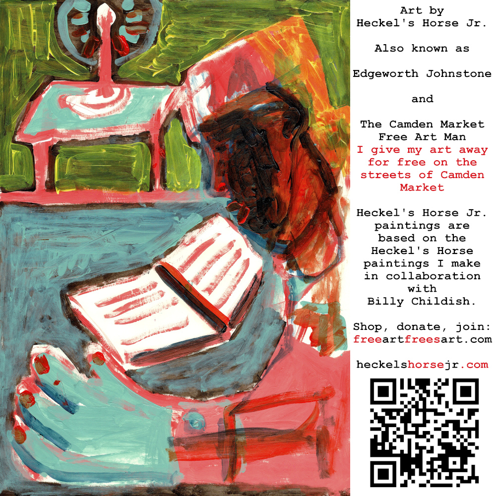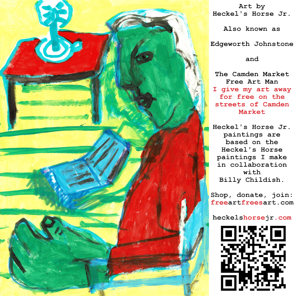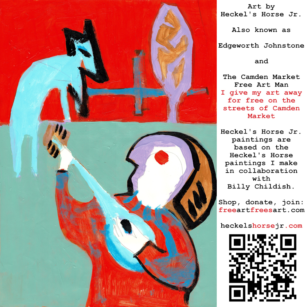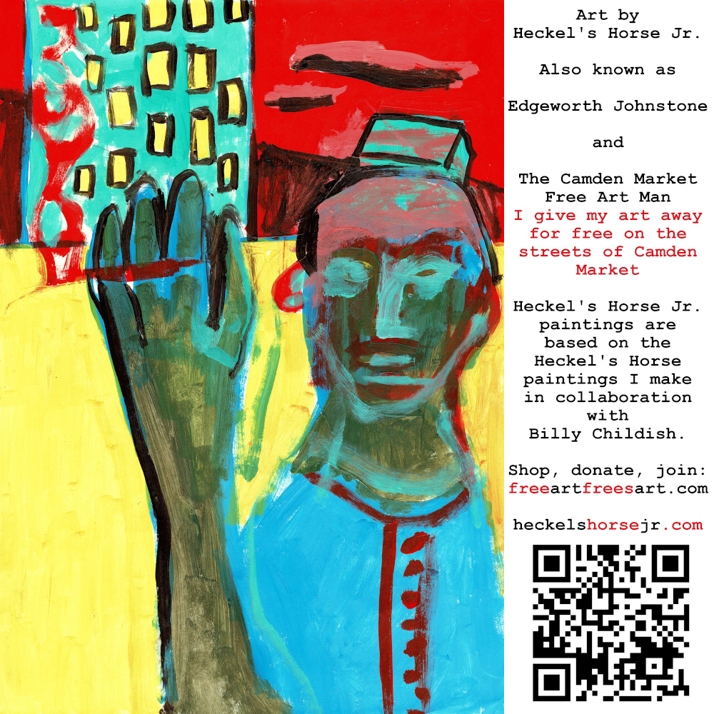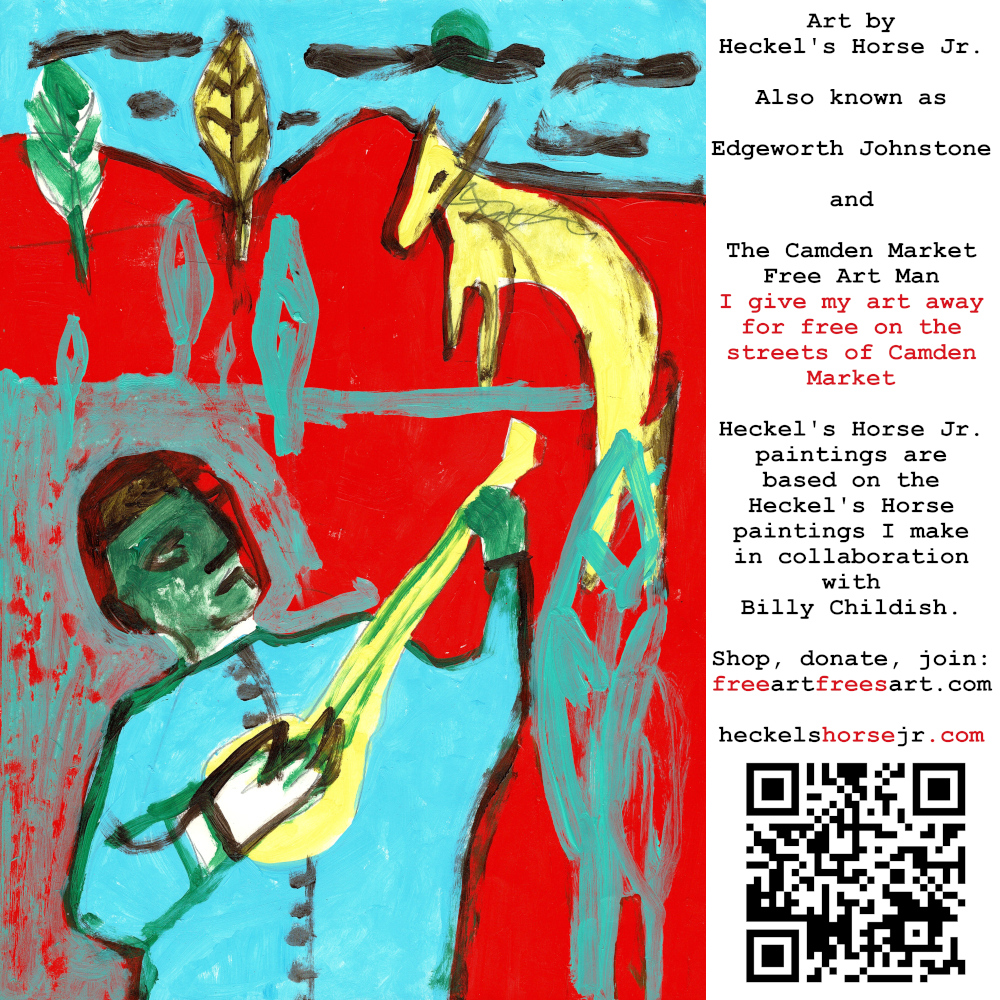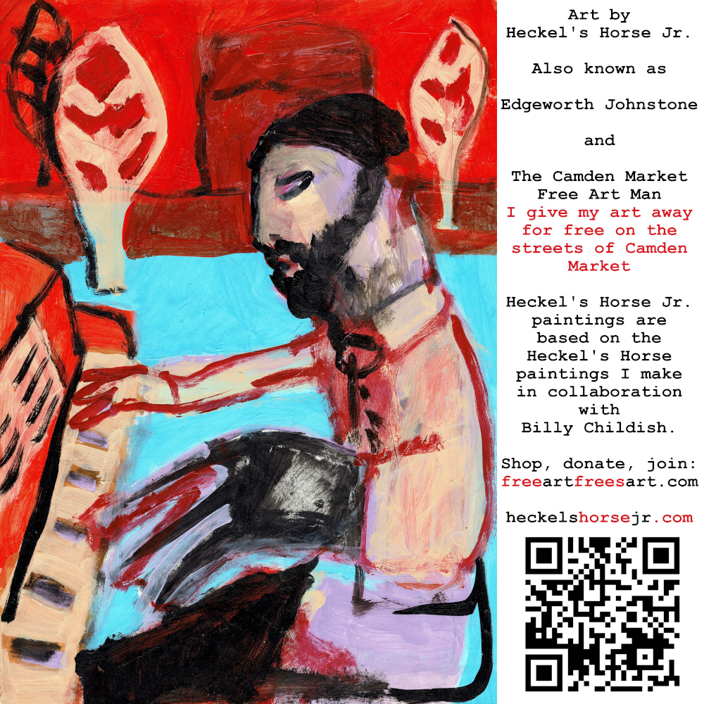 Art by Heckel’s Horse Jr. Also known as Edgeworth Johnstone and The Camden Market Free Art Man. I give my art away for free on the streets of Camden Market. Heckel’s Horse Jr. paintings are based on the Heckel’s Horse paintings I make in collaboration with Billy Childish.