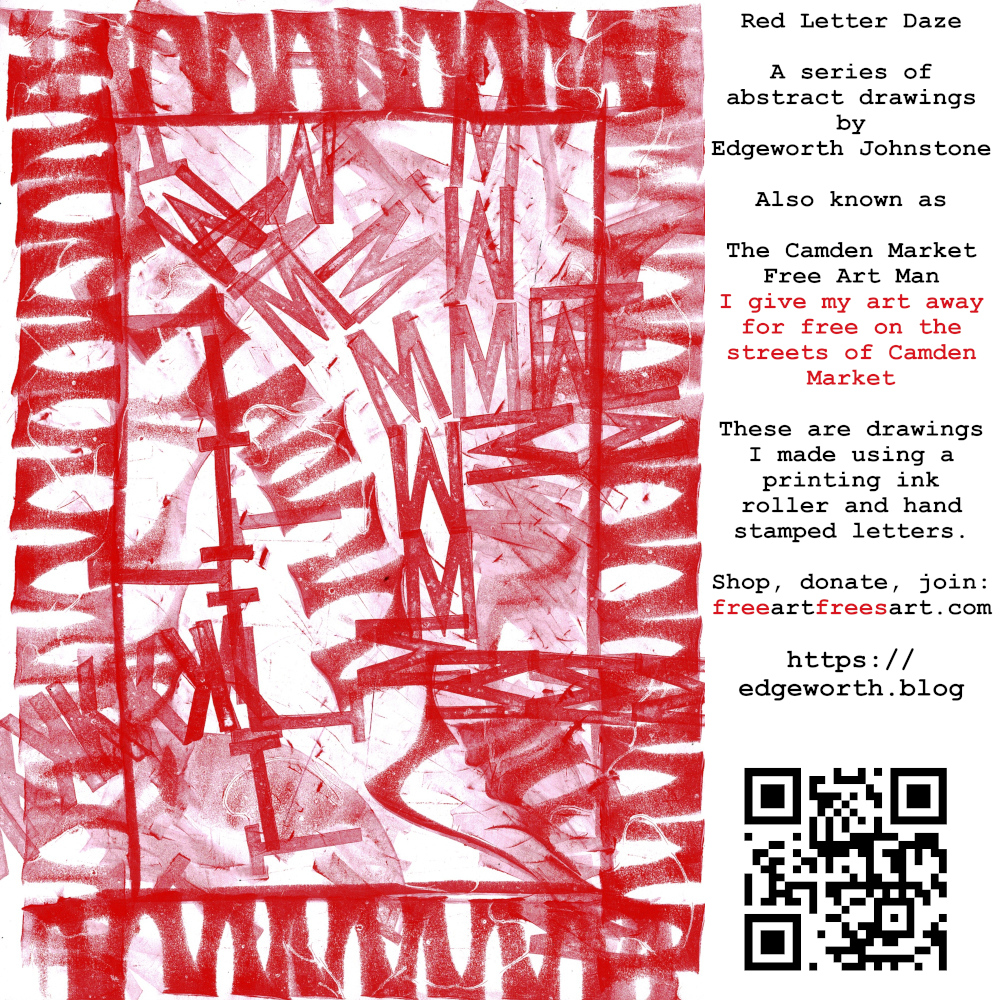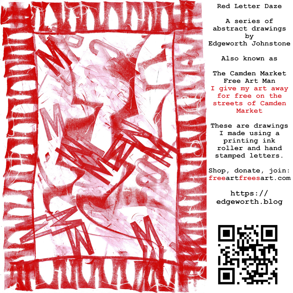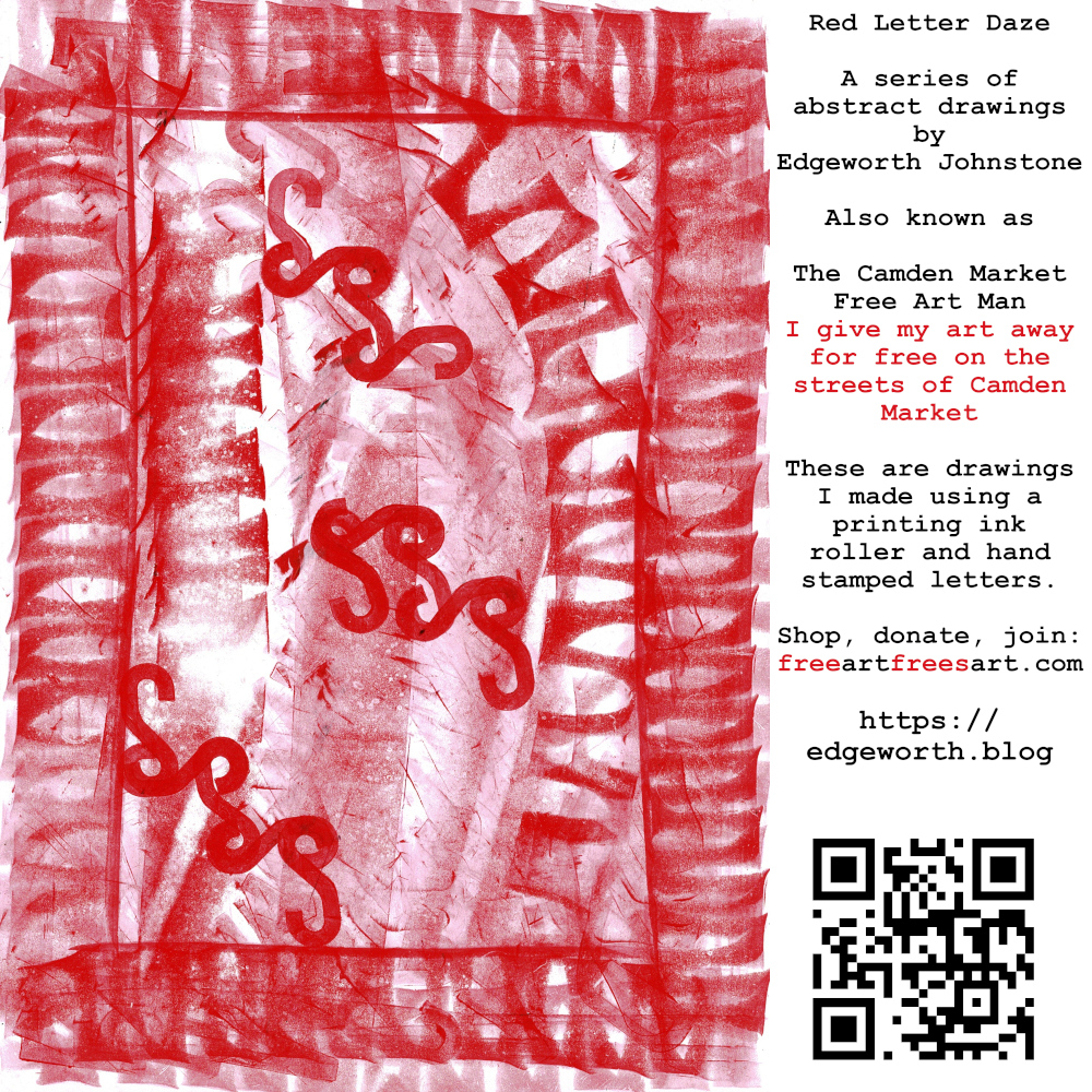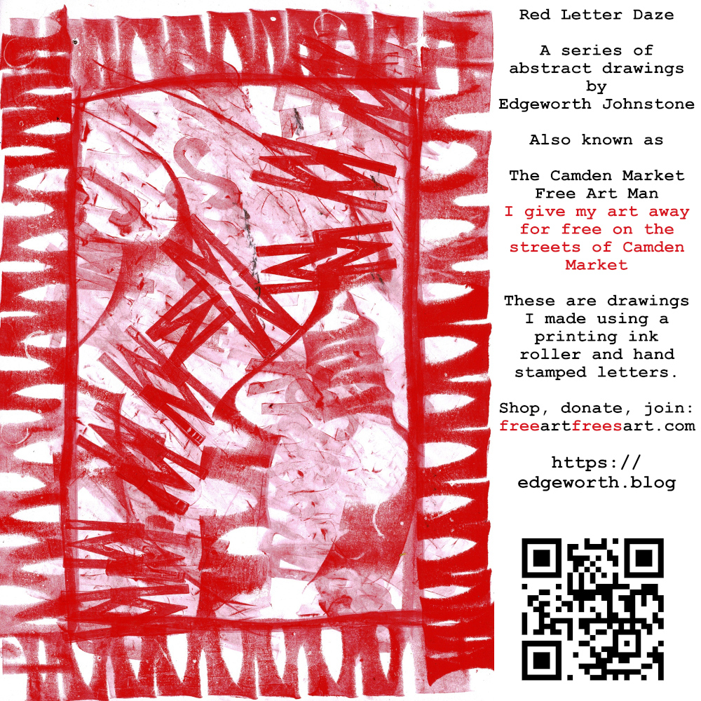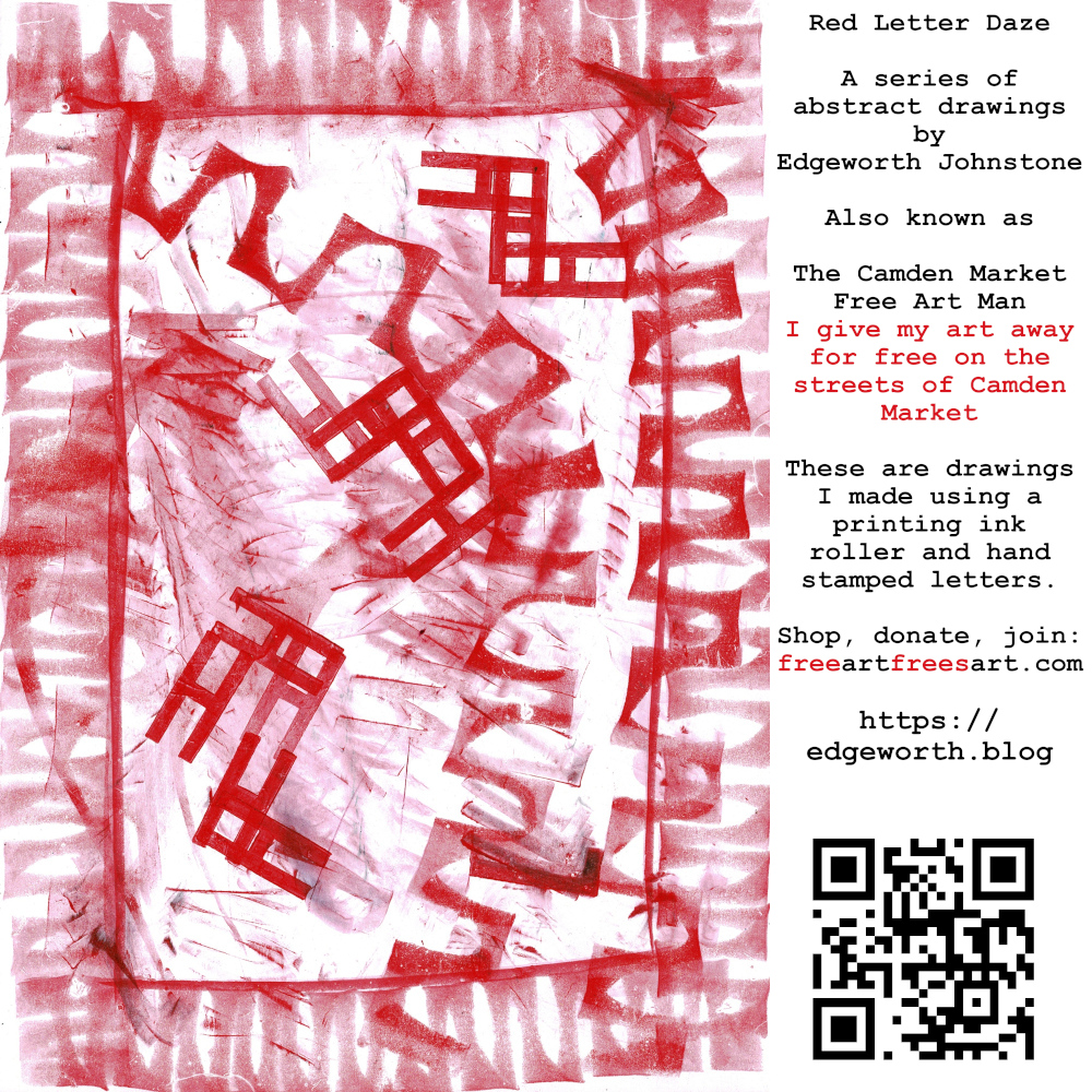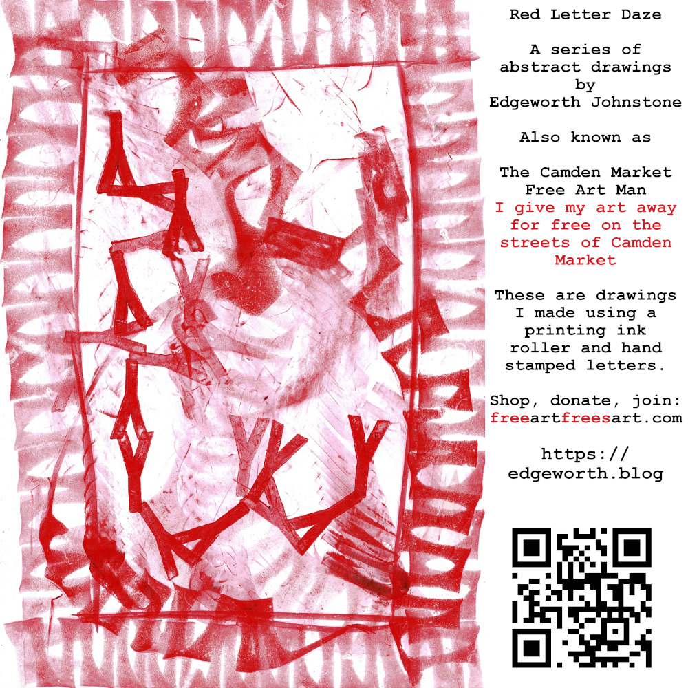 A4 drawings on paper I made with a printing ink roller and hand stamped letters.
