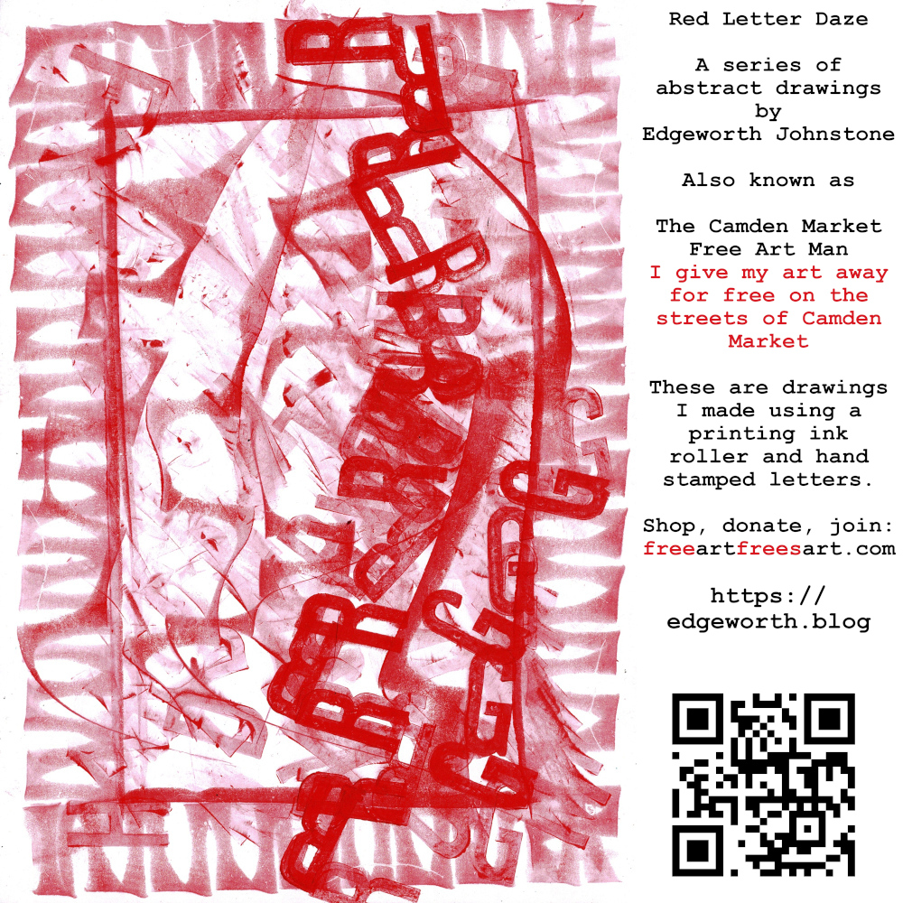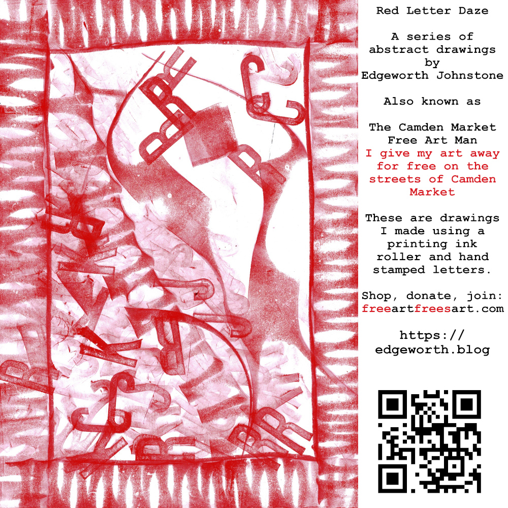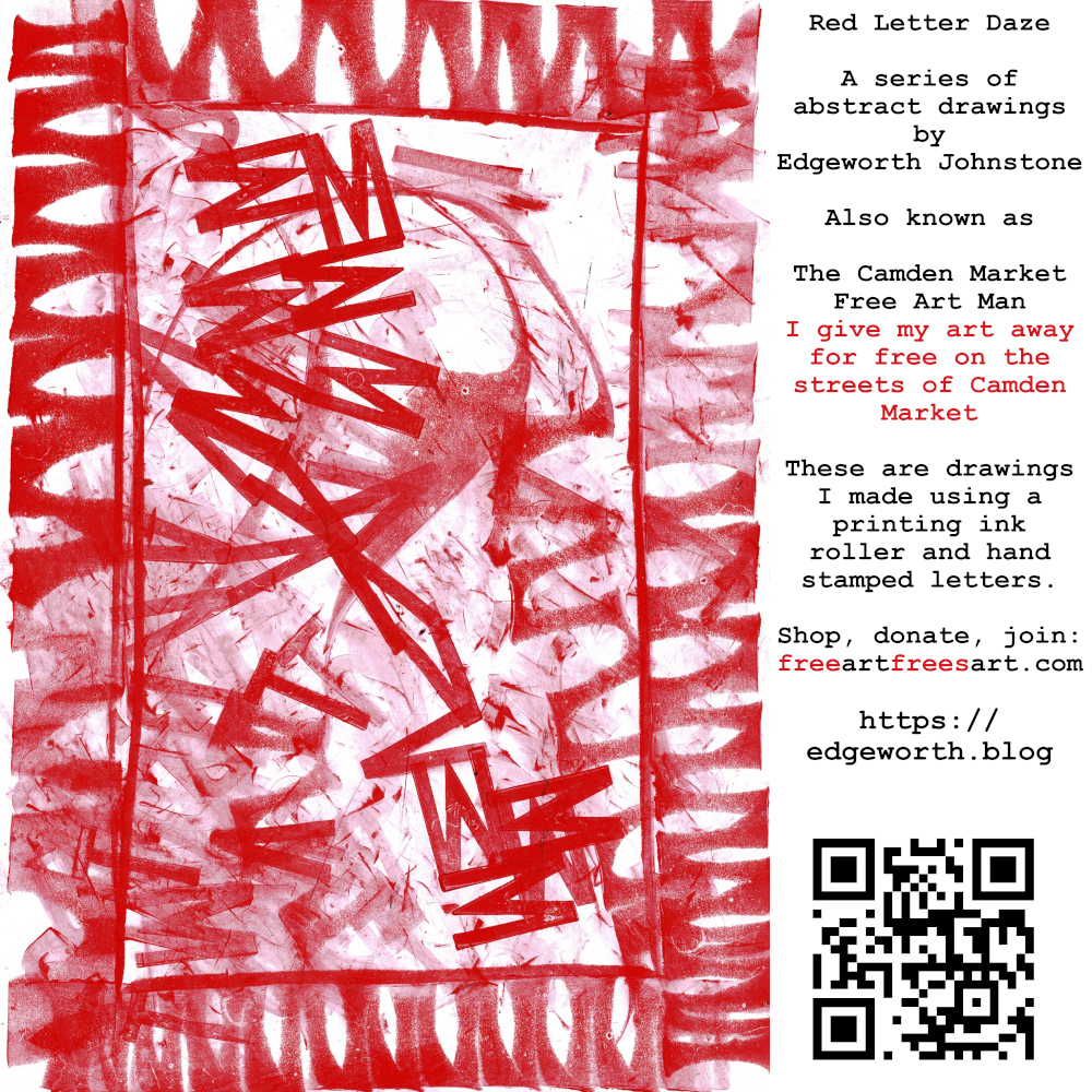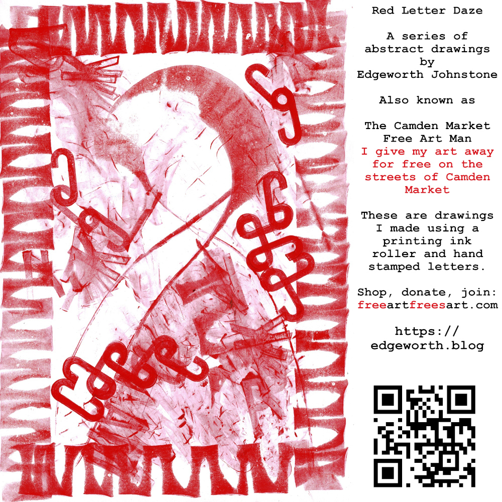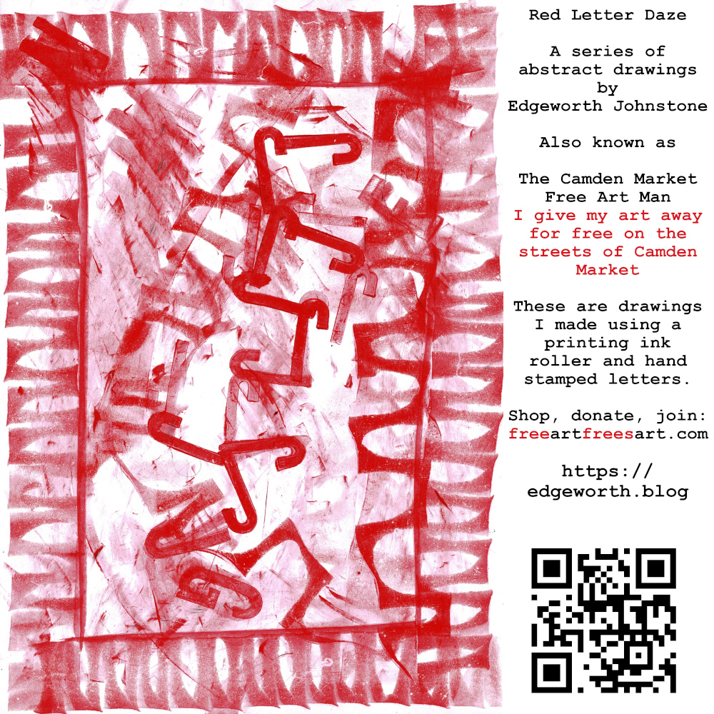 A4 drawings on paper I made with a printing ink roller and hand stamped letters.