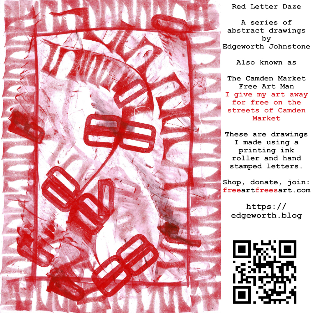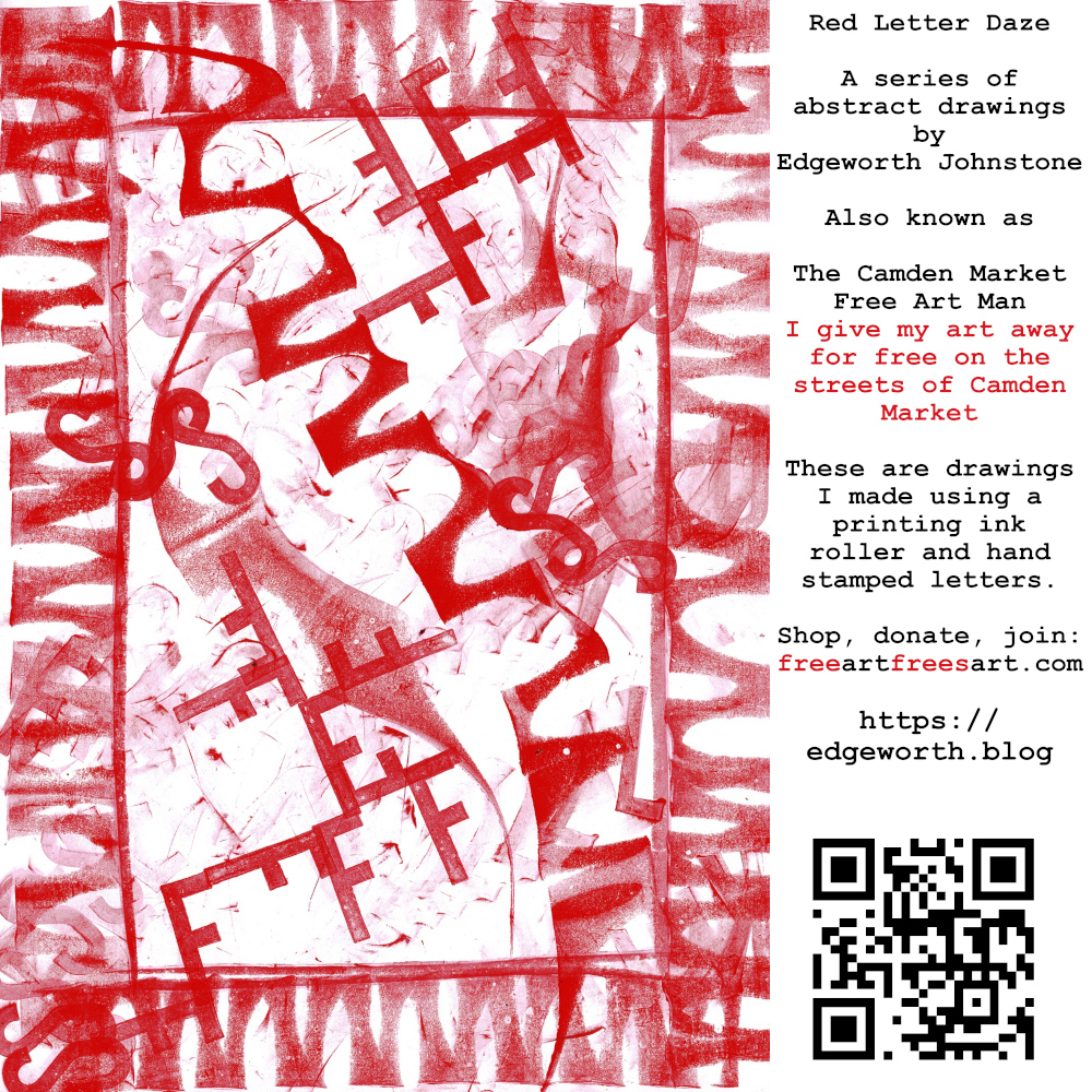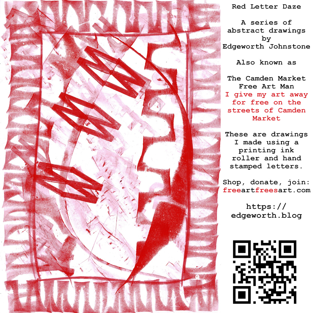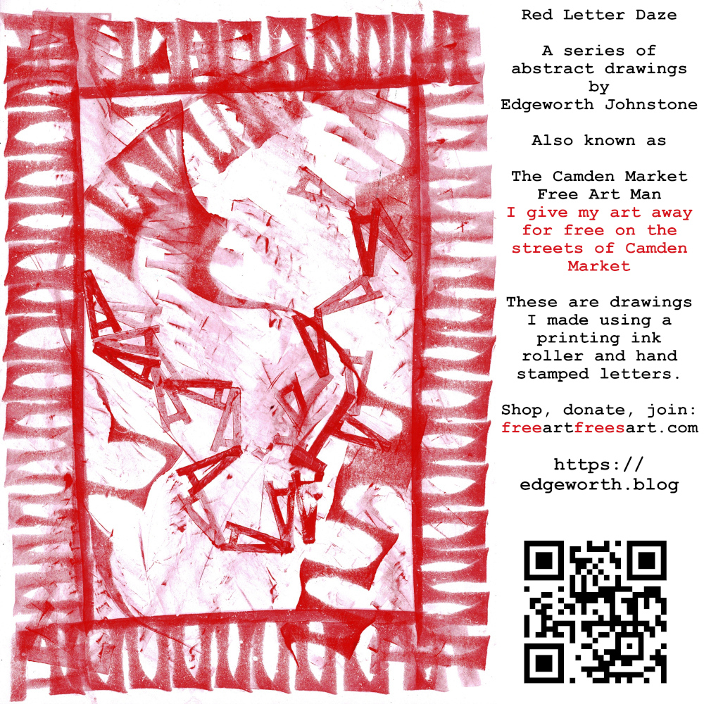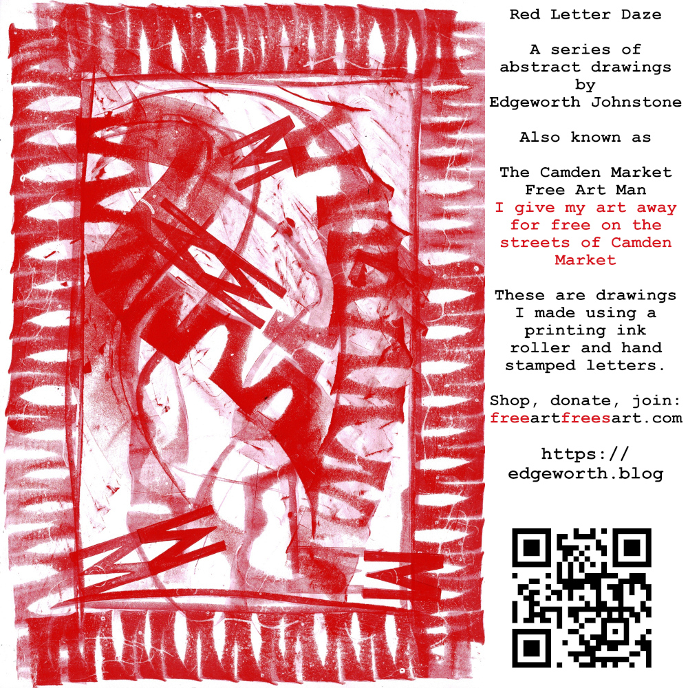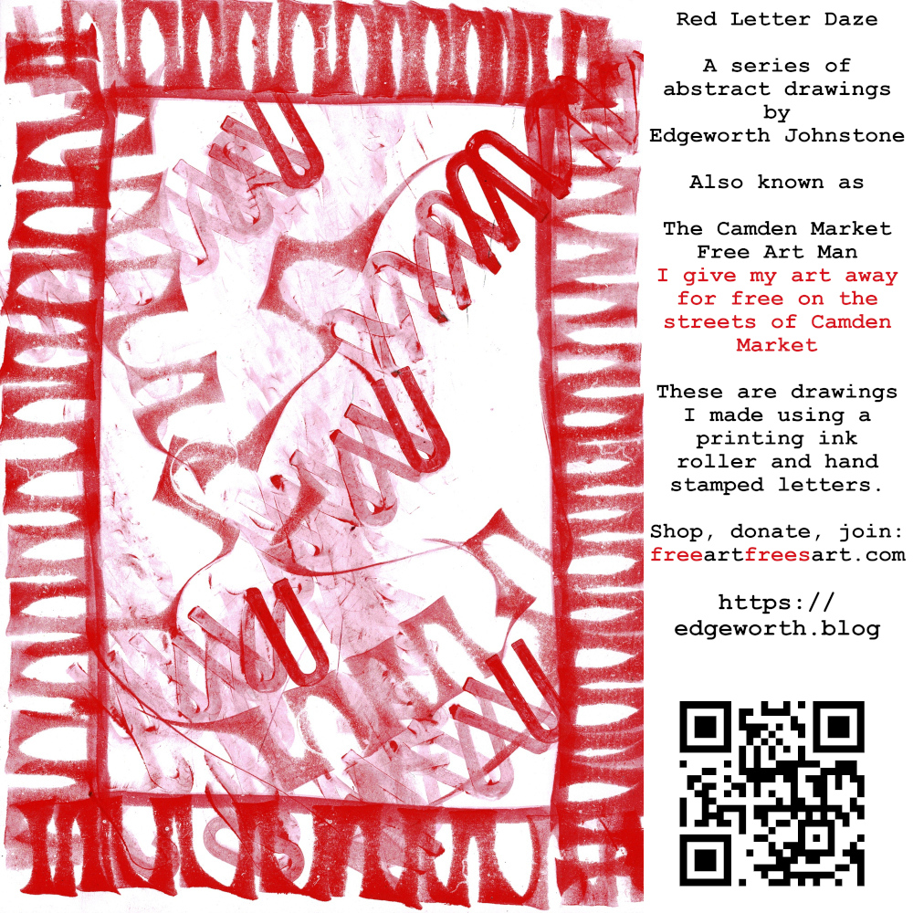 A4 drawings on paper I made with a printing ink roller and hand stamped letters.