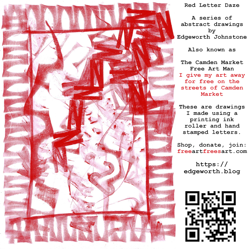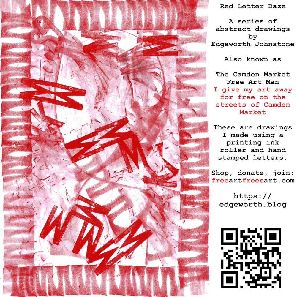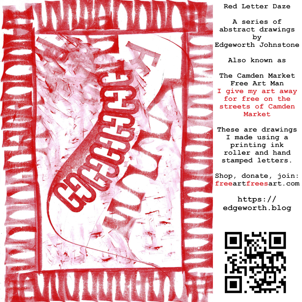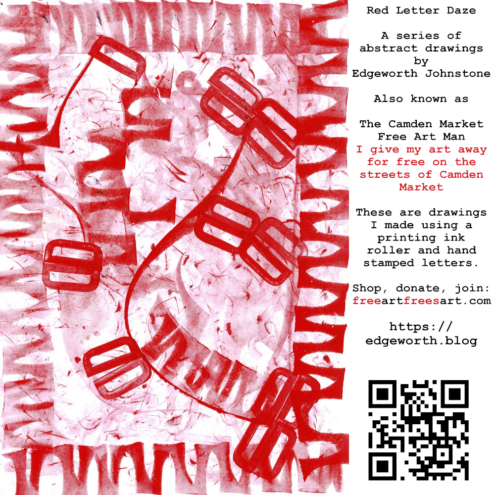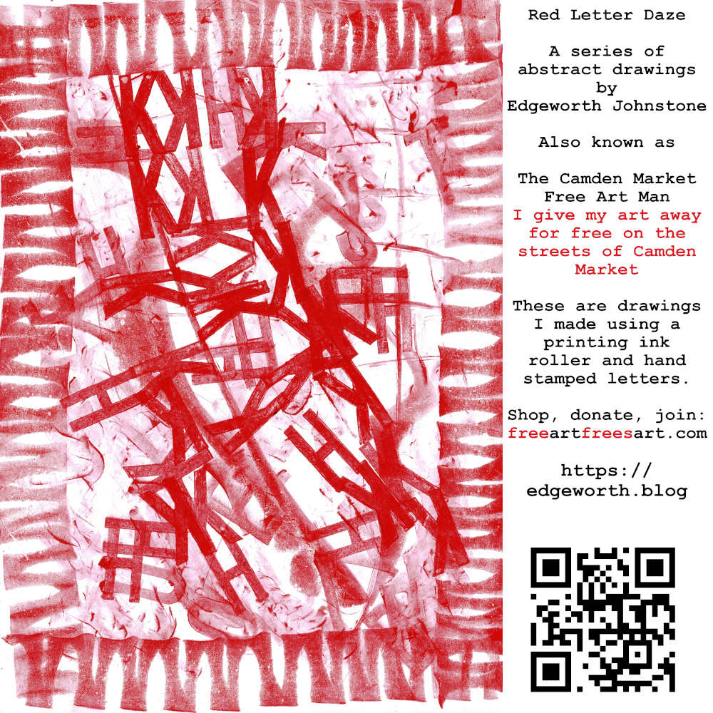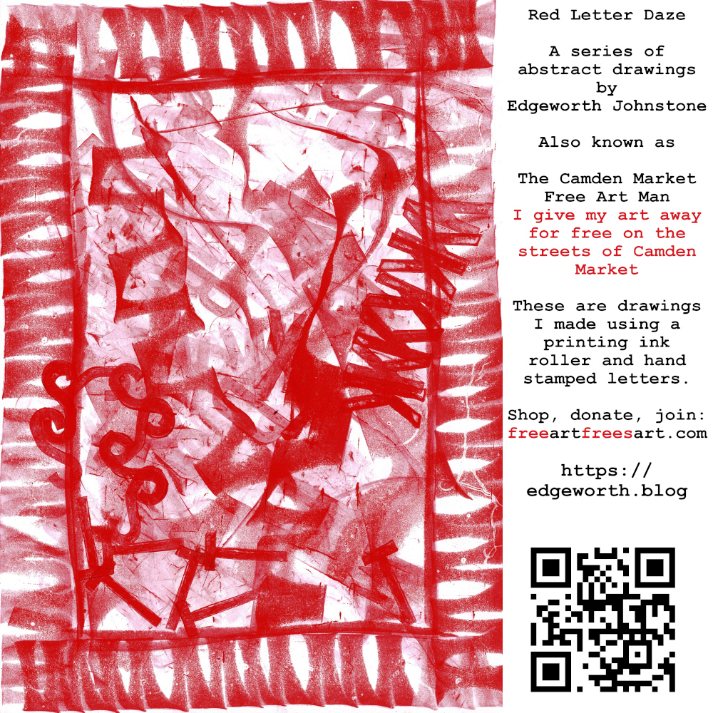 A4 drawings on paper I made with a printing ink roller and hand stamped letters.