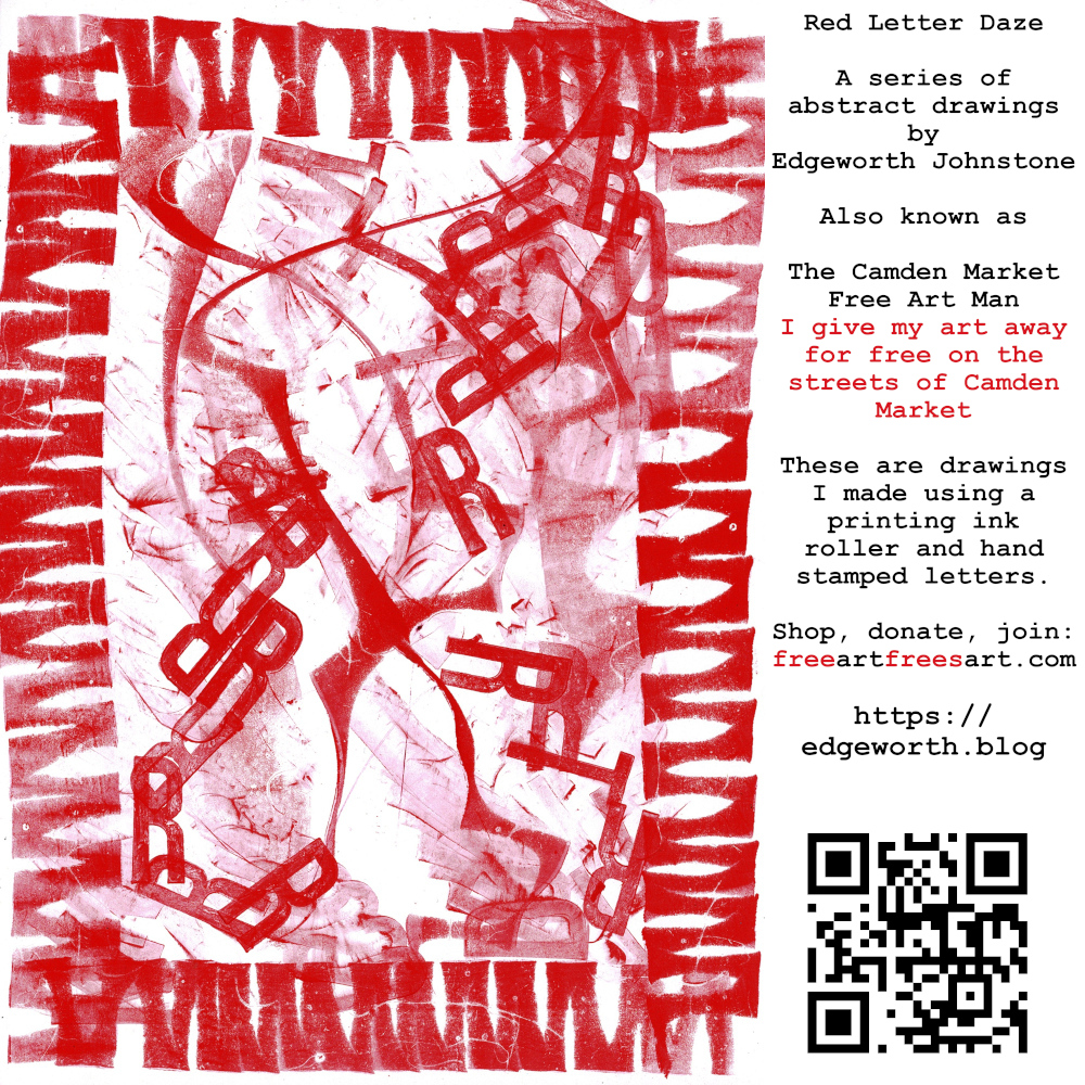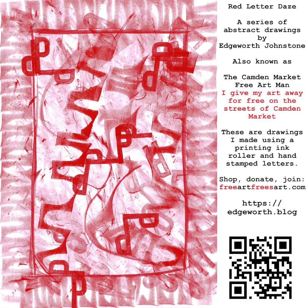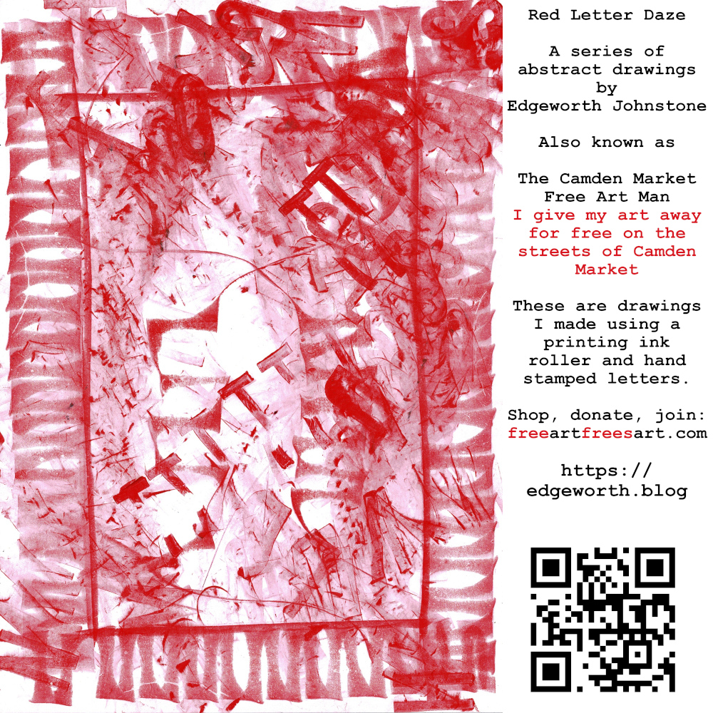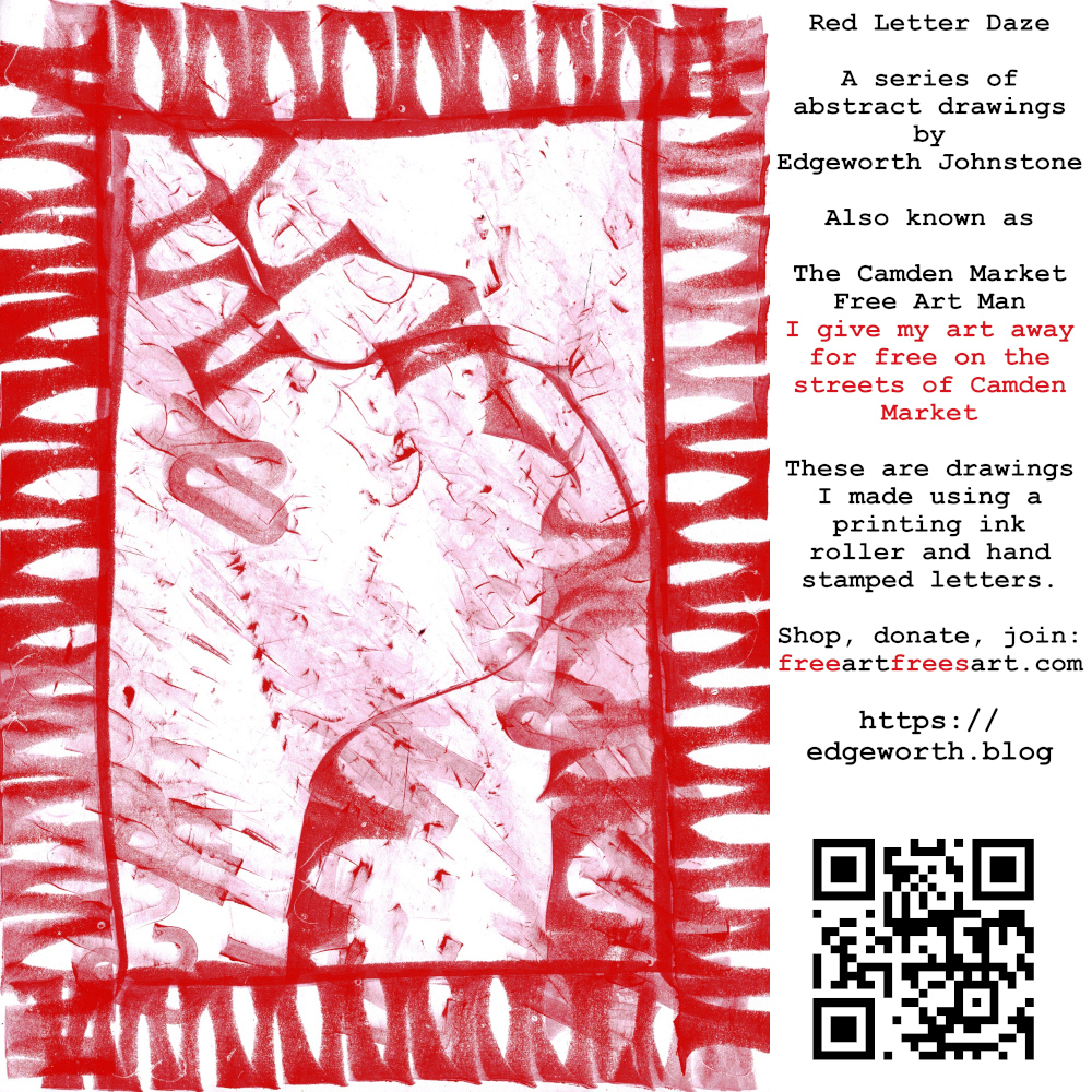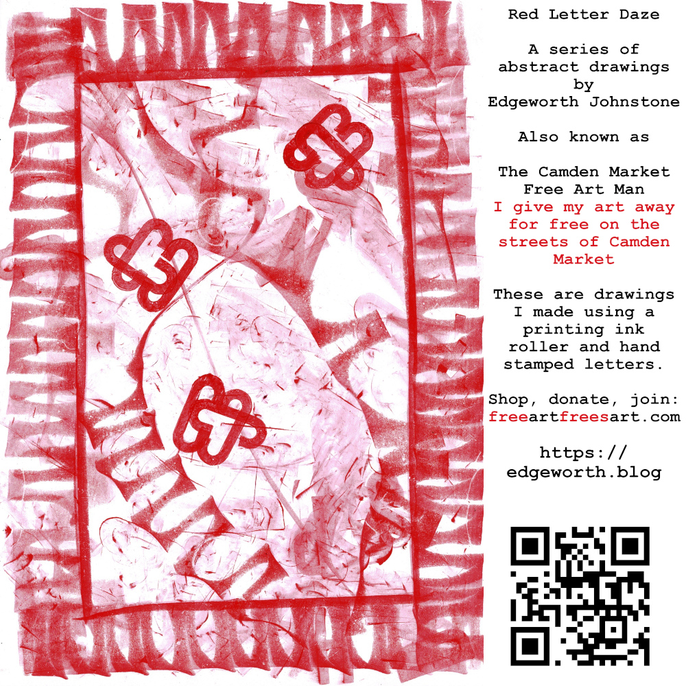 A4 drawings on paper I made with a printing ink roller and hand stamped letters.