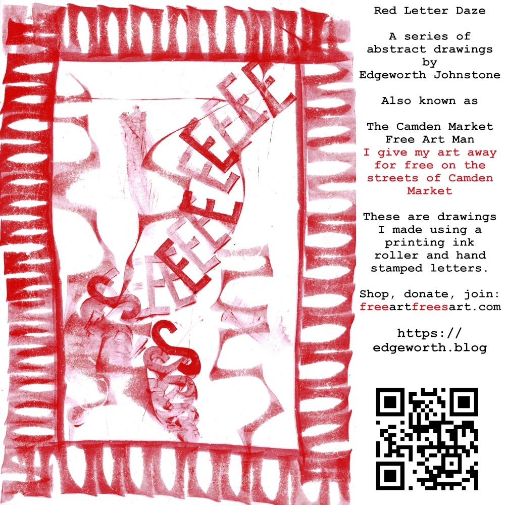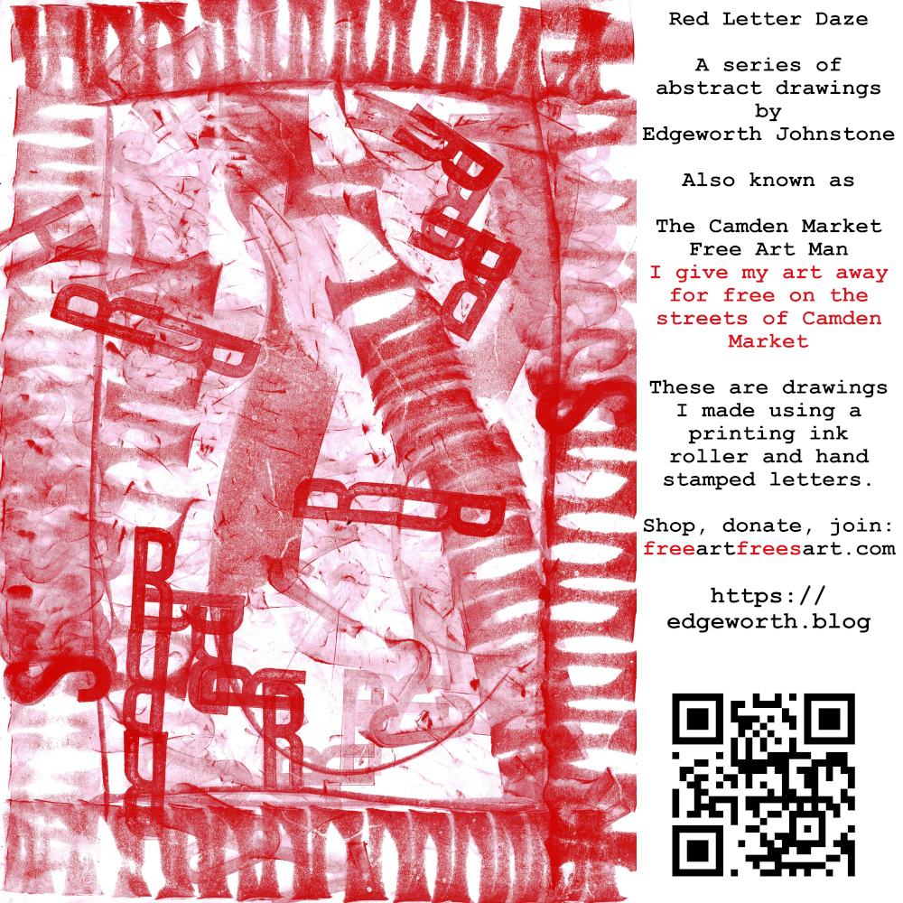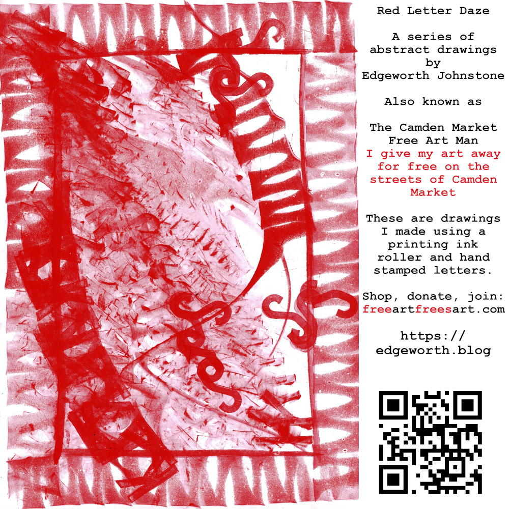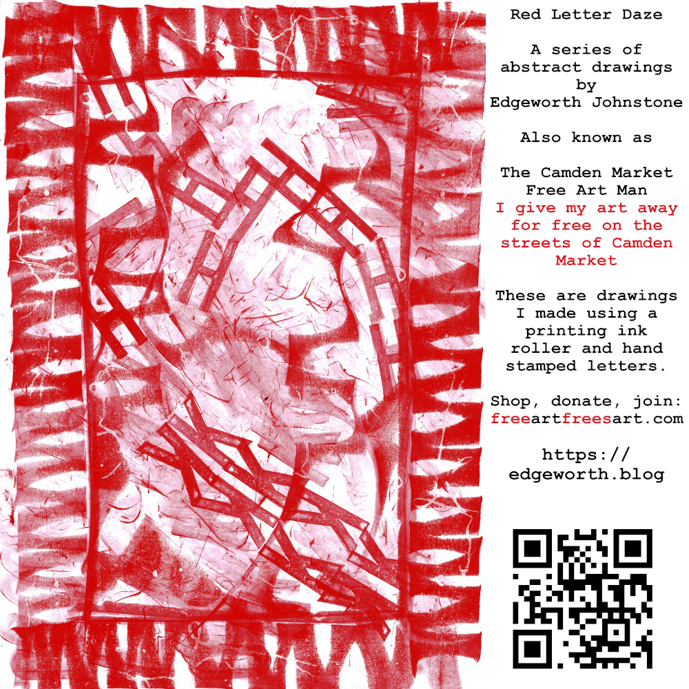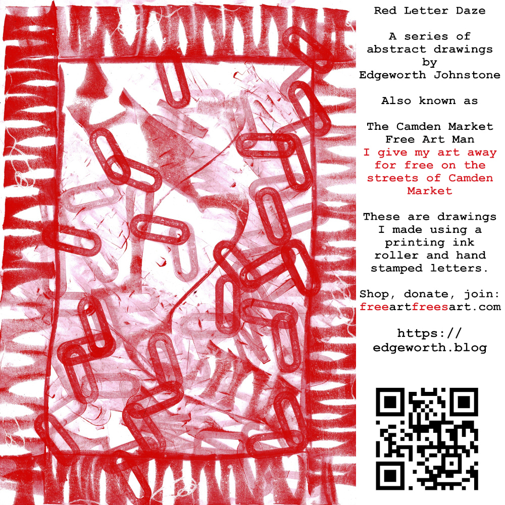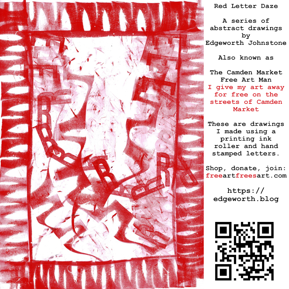 A4 drawings on paper I made with a printing ink roller and hand stamped letters.