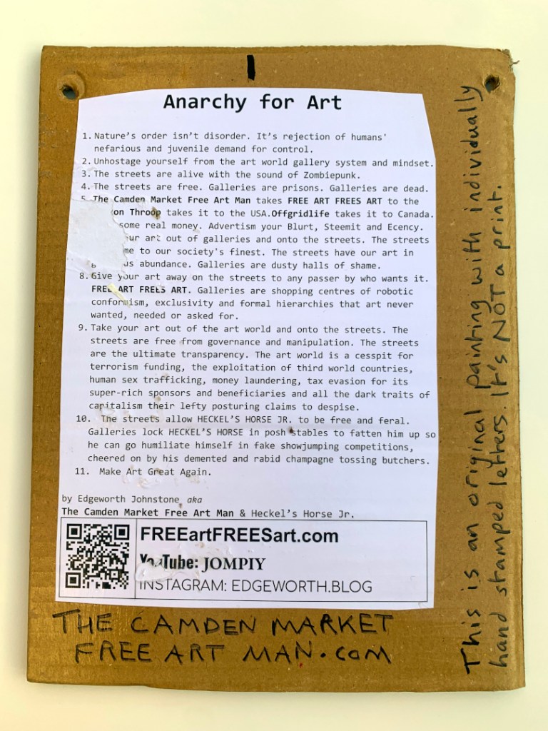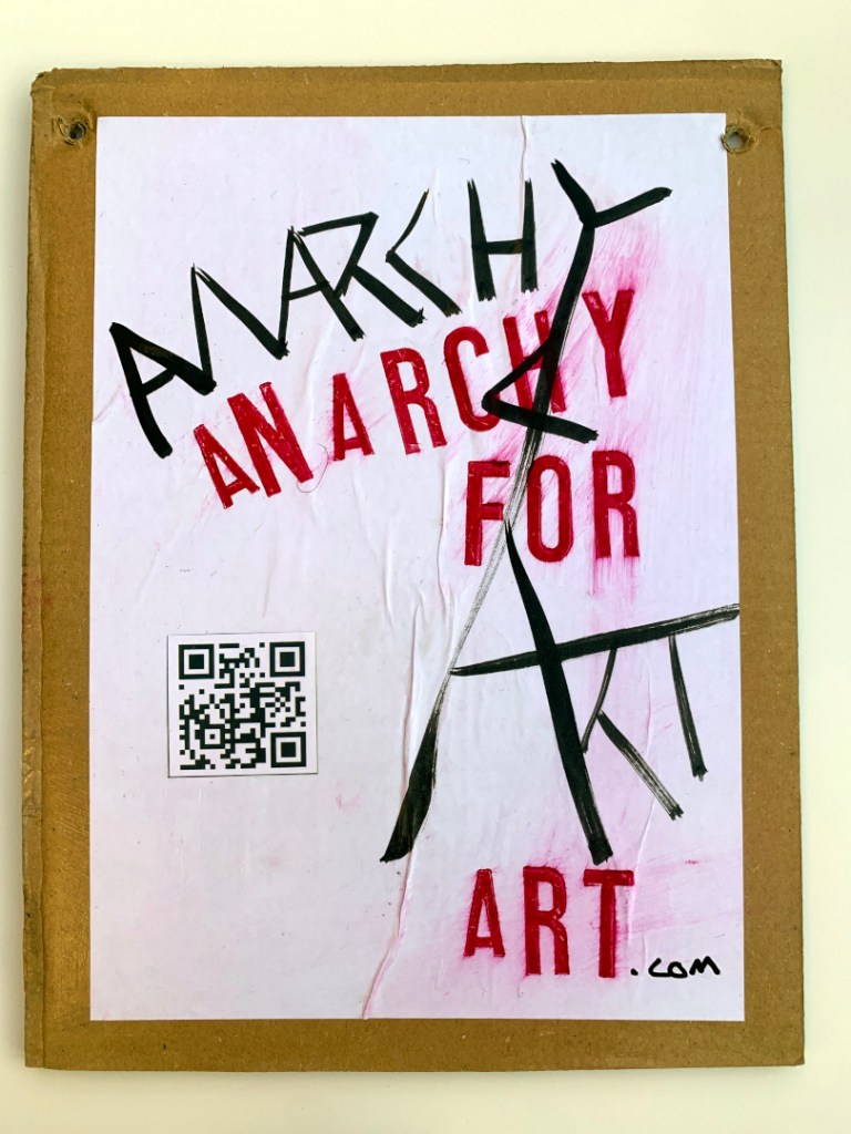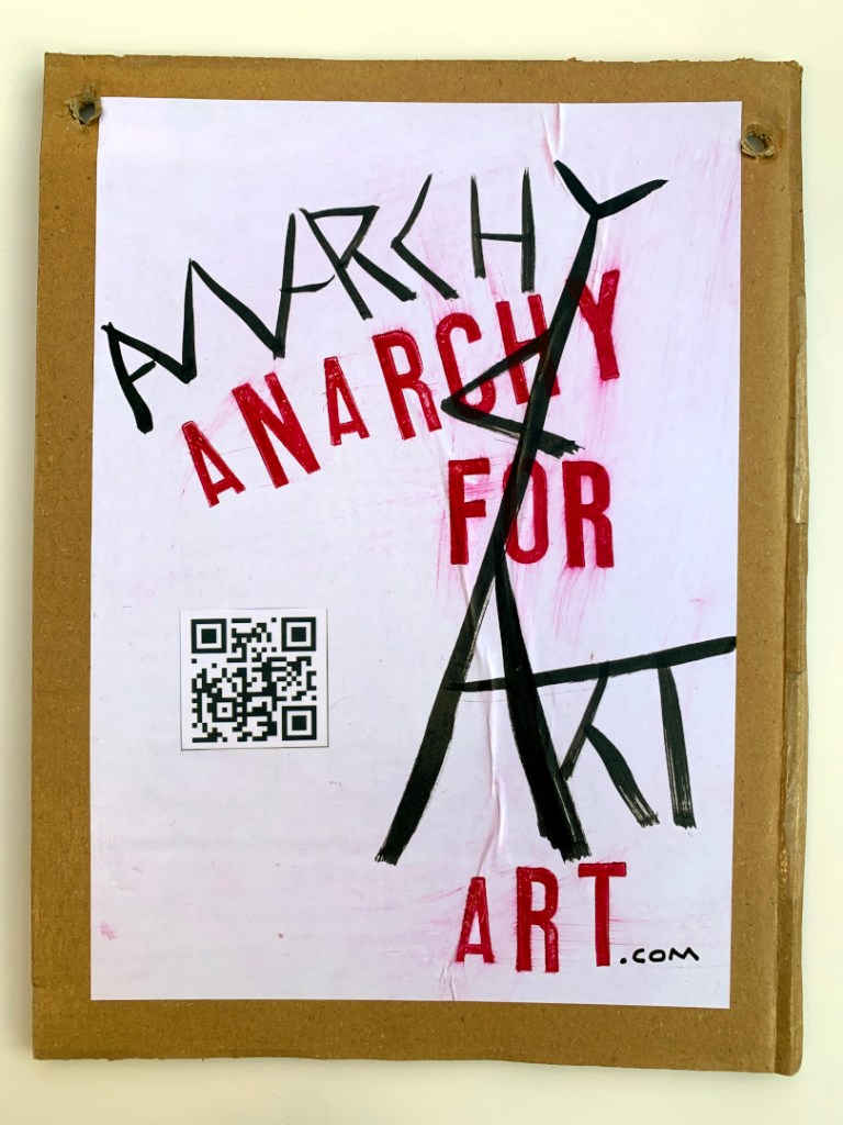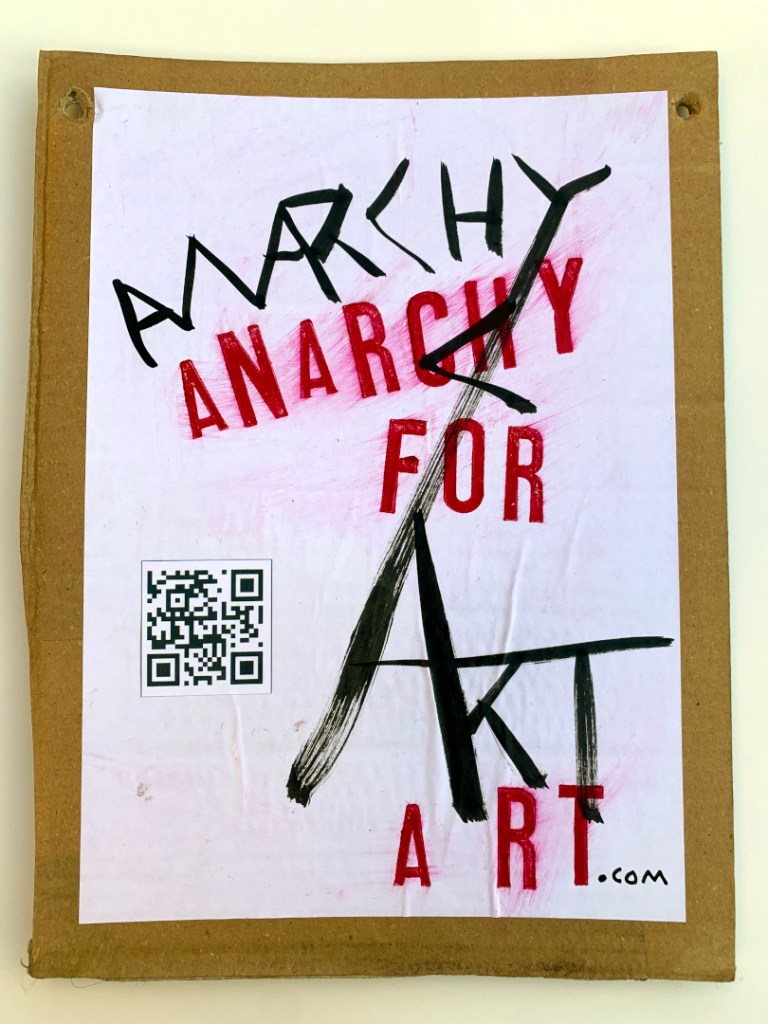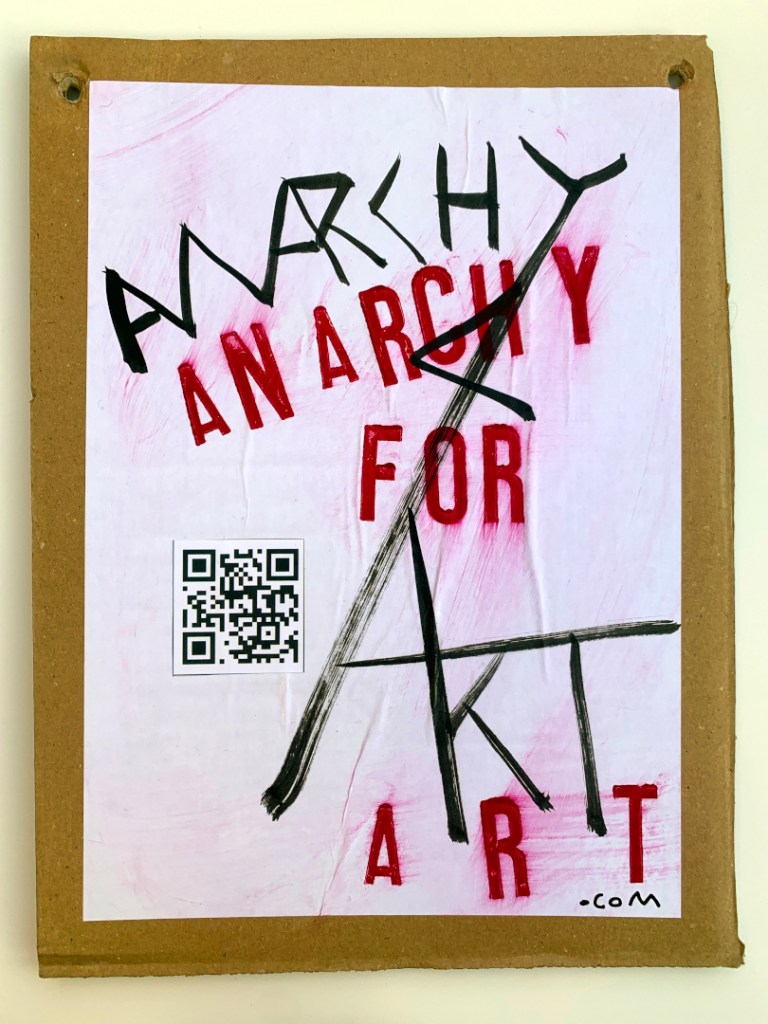 These are original paintings, NOT prints. Black Indian Ink painted onto A4 size office paper. Red lettering individually hand stamped in Caligo Rubine Red. the “.com” written in black Posca pen. PVA glued to thick cardboard and PVA glued on top. The handwriting on the back in done in Black Sharpie permanent marker. Holes in the corners so are ready to hang on the wall.