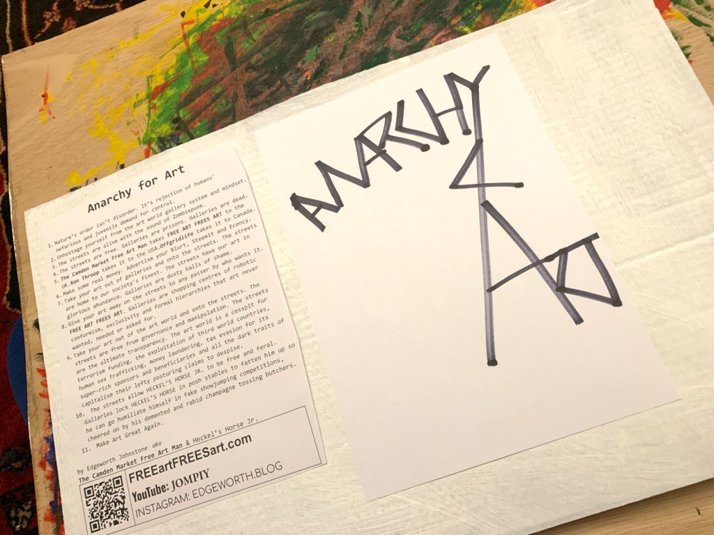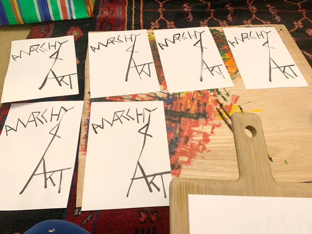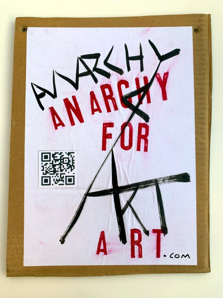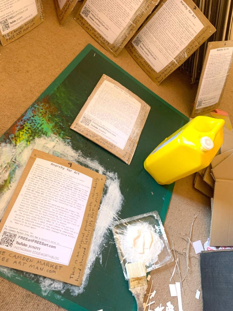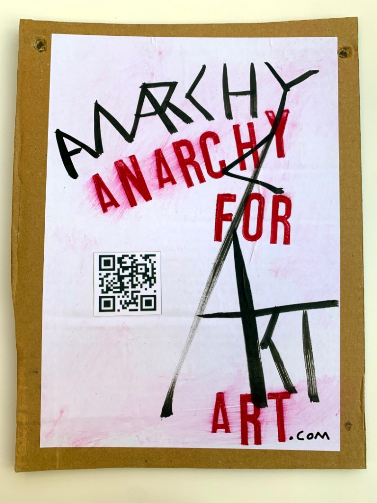 These are original paintings, NOT prints. Black Indian Ink painted onto A4 size office paper. Red lettering individually hand stamped in Caligo Rubine Red. the “.com” written in black Posca pen. PVA glued to thick cardboard and PVA glued on top. The handwriting on the back in done in Black Sharpie permanent marker. Holes in the corners so are ready to hang on the wall.