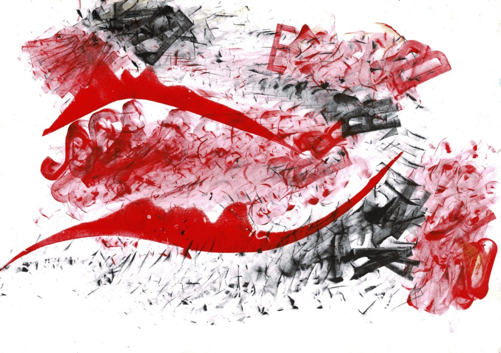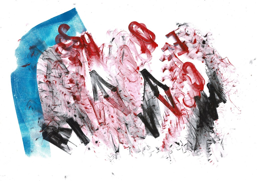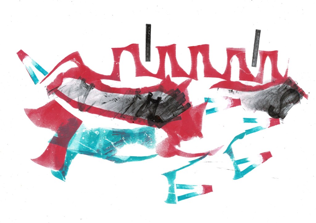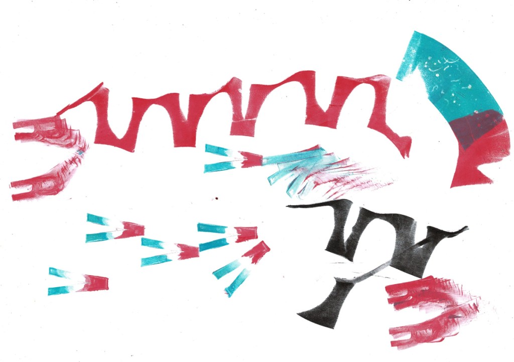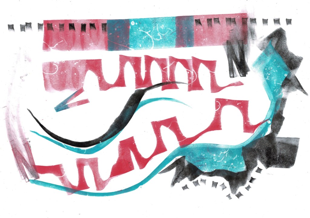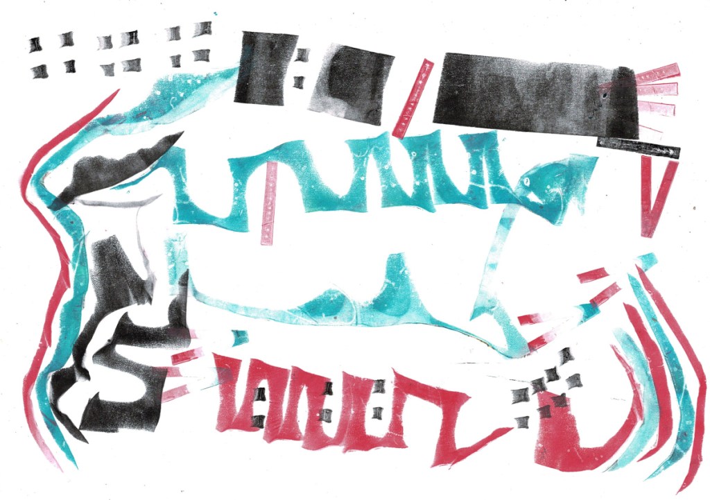 Abstract drawings with hand-printed areas. These ones are on A4 size 350 gsm acid-free paper.