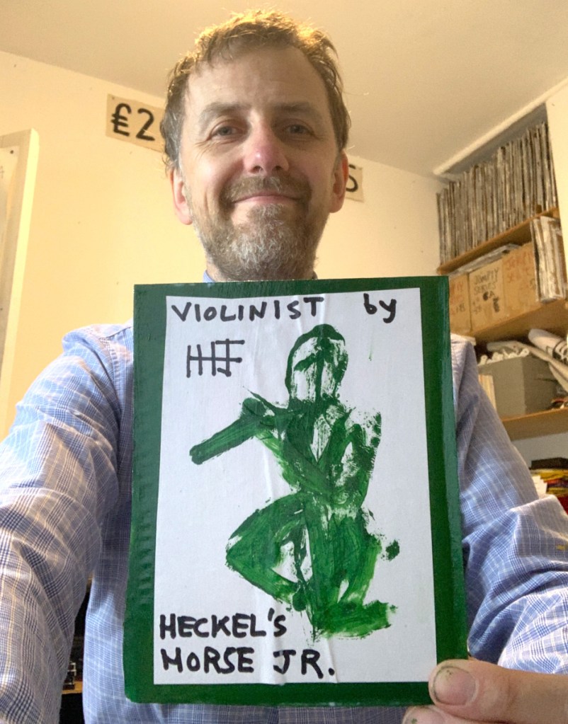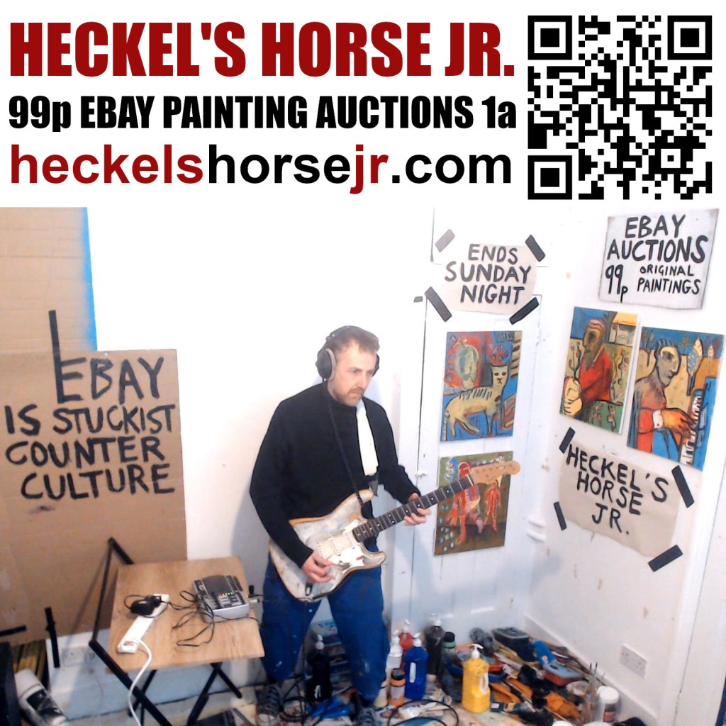 Heckel’s Horse Jr. works are based on the Heckel’s Horse paintings I make in collaboration with Billy Childish. Since 2013, Bily and I have made roughly 200 Heckel’s Horse paintings together at his painting studio in Chatham Dockyard. Heckel’s Horse Jr. paintings can be bought on Etsy and Ebay. I give some Heckel’s Horse Jr. paintings away on the streets of Camden Market, in London UK because I’m The Camden Market Free Art Man.