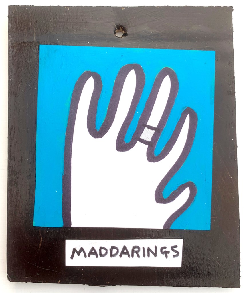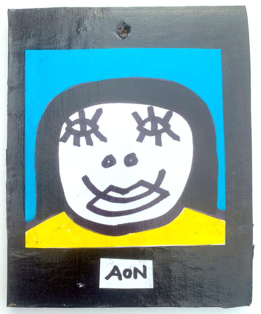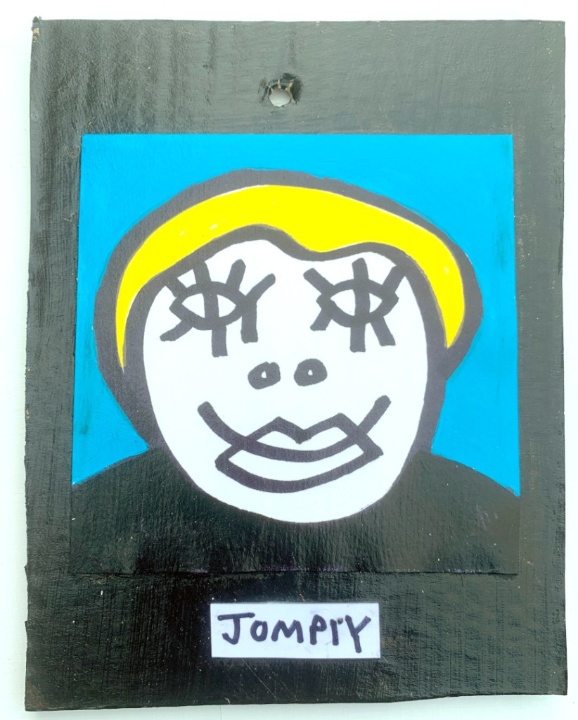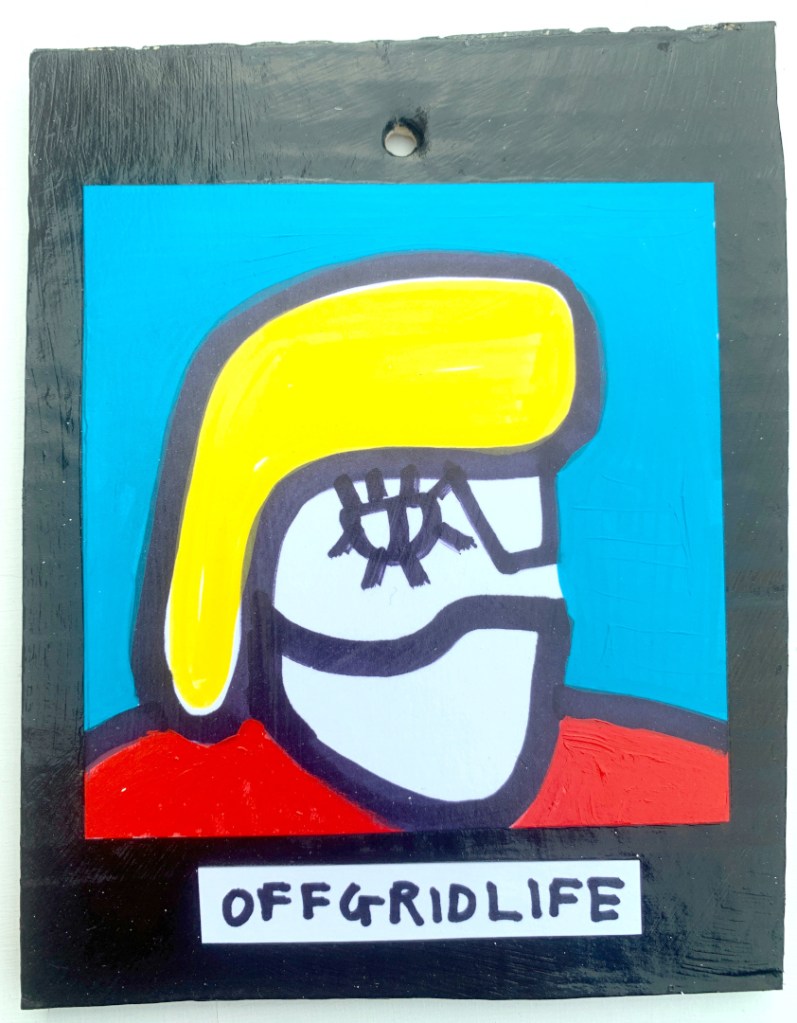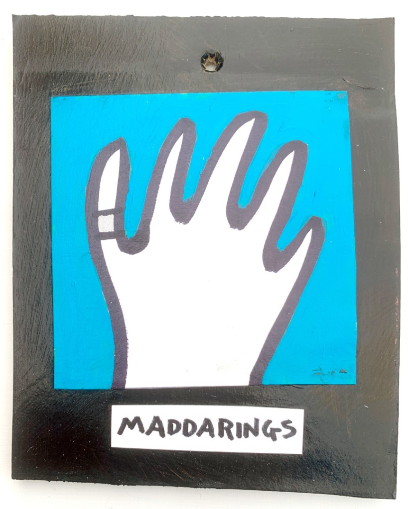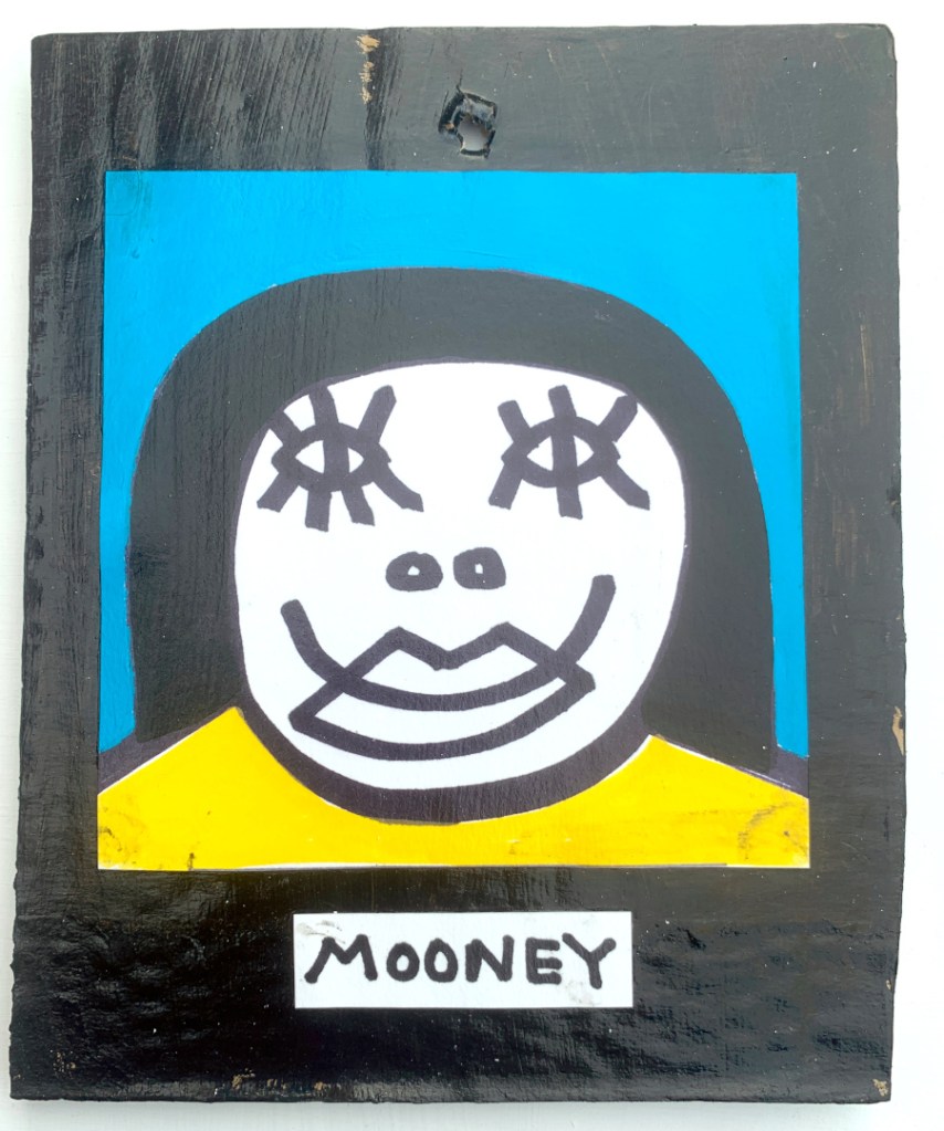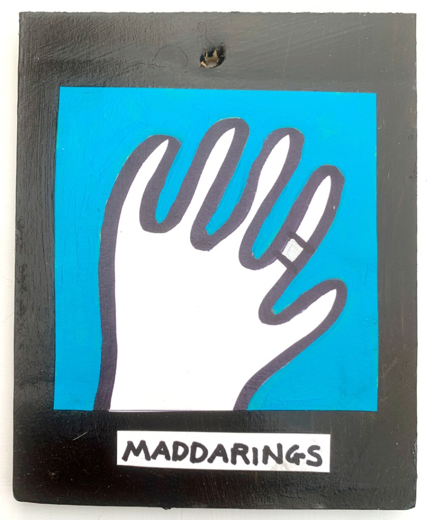 Acrylic on paper paintings, PVA glued onto thick, good quality cardboard rescued from the streets of Camden and Muswell Hill. Coated in PVA glue with hand-written info on the back in black Sharpie permanent marker.