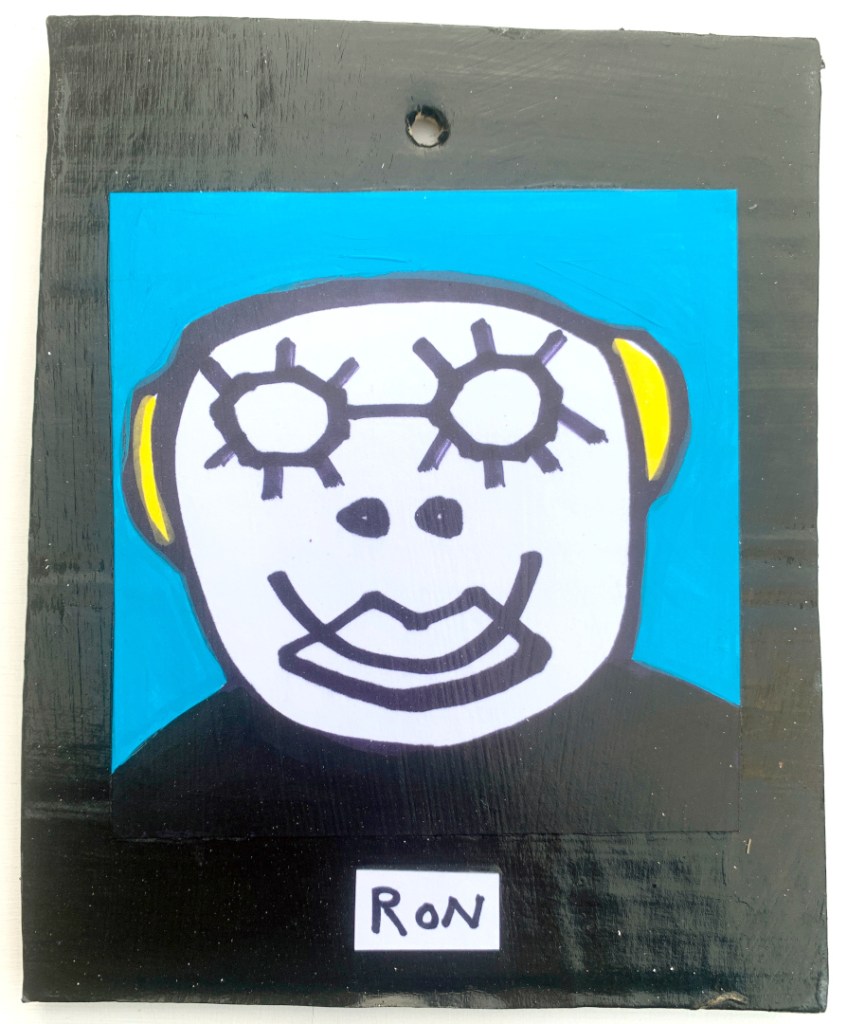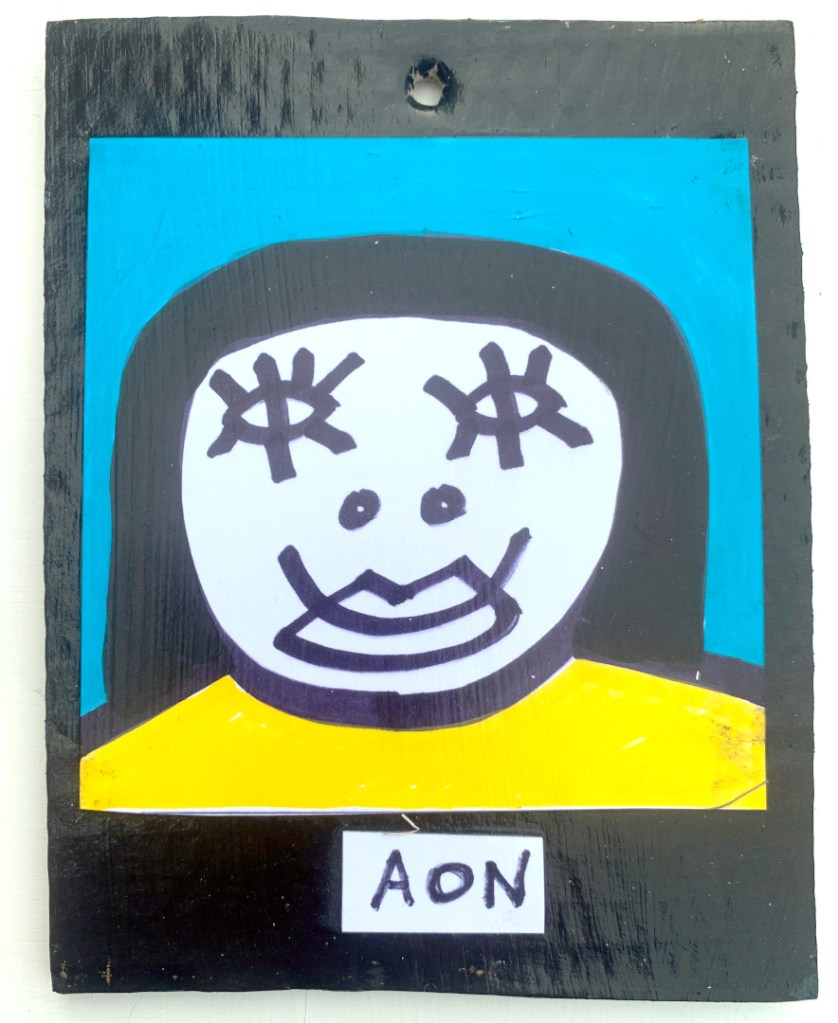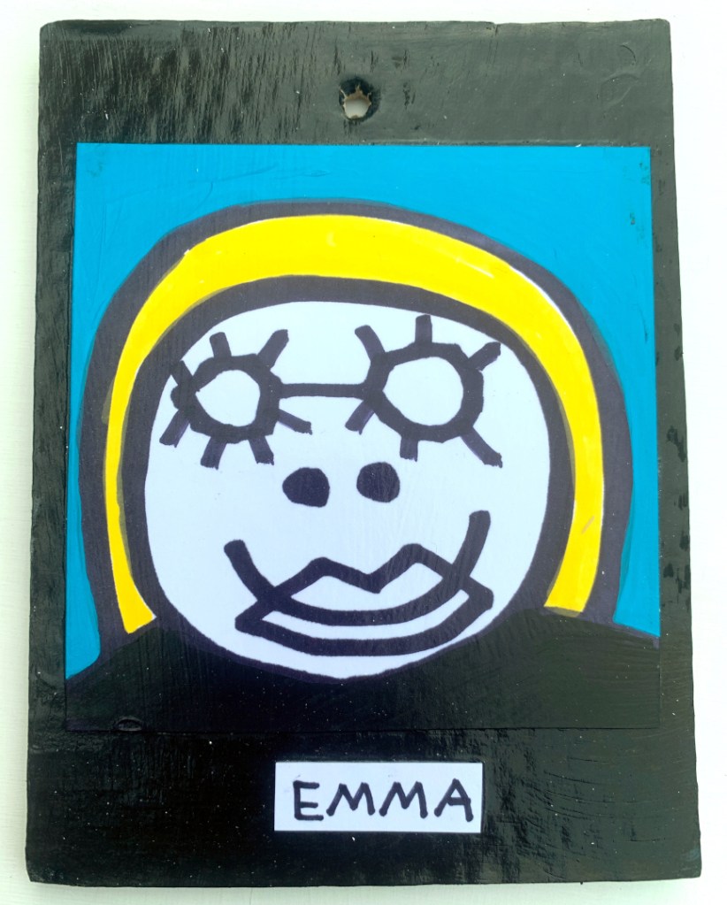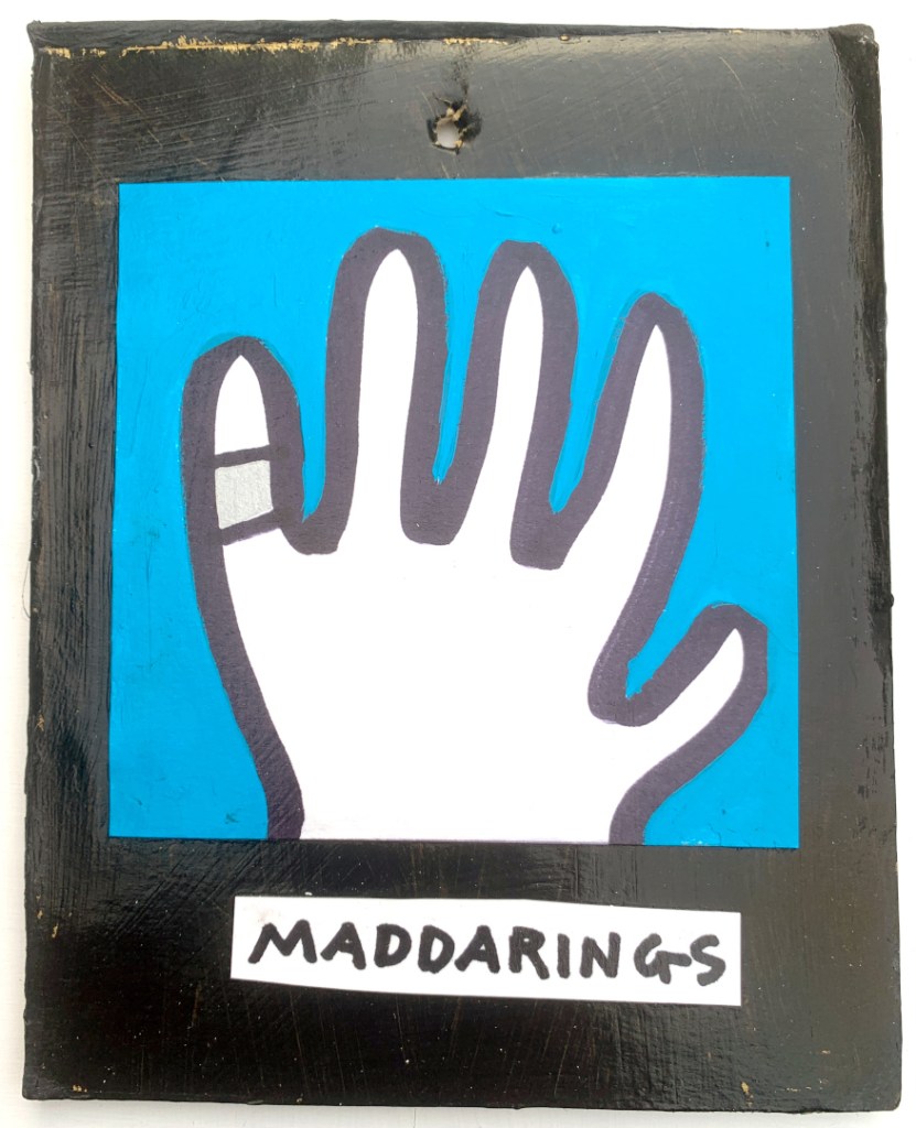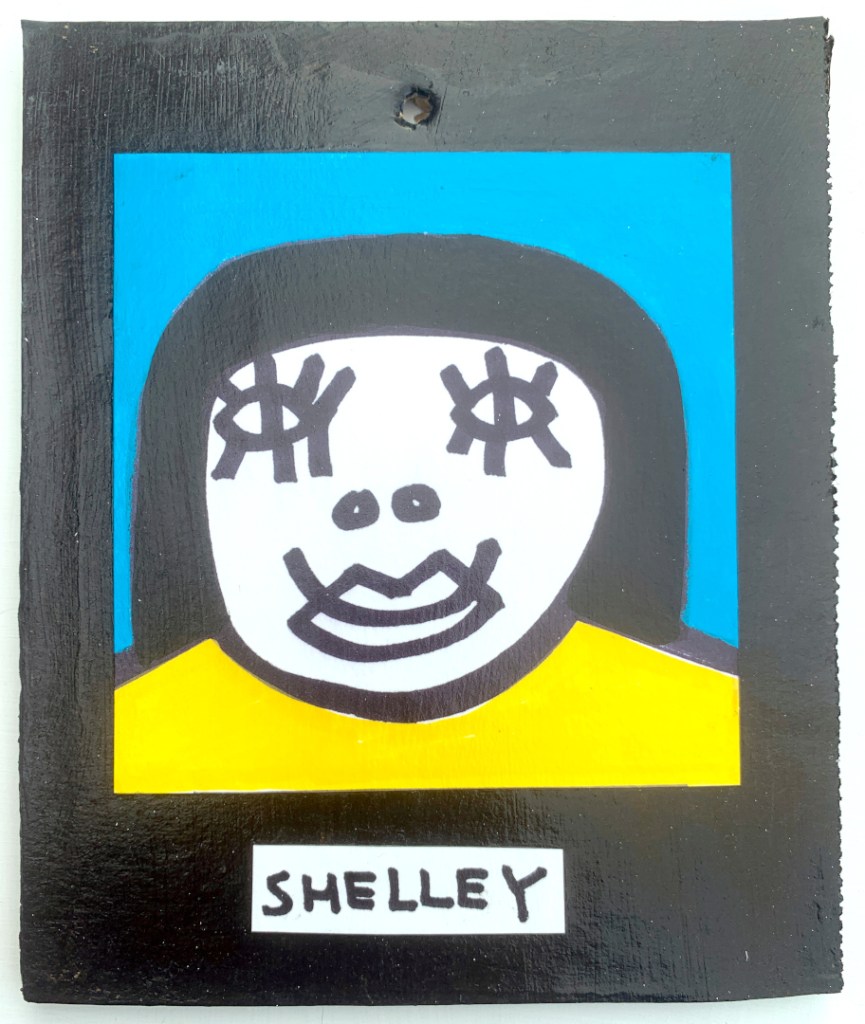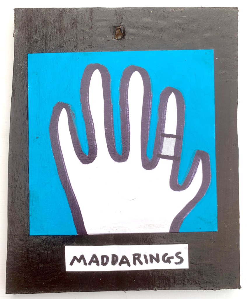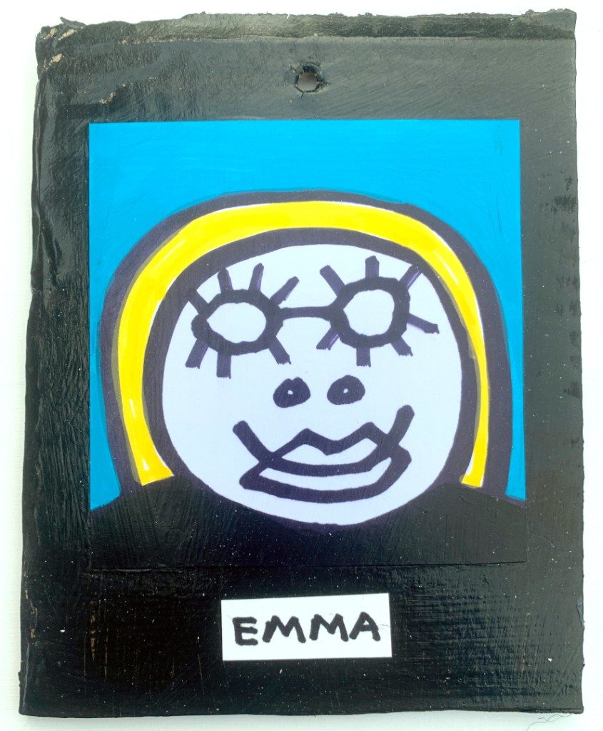 Acrylic on paper paintings, PVA glued onto thick, good quality cardboard rescued from the streets of Camden and Muswell Hill. Coated in PVA glue with hand-written info on the back in black Sharpie permanent marker.