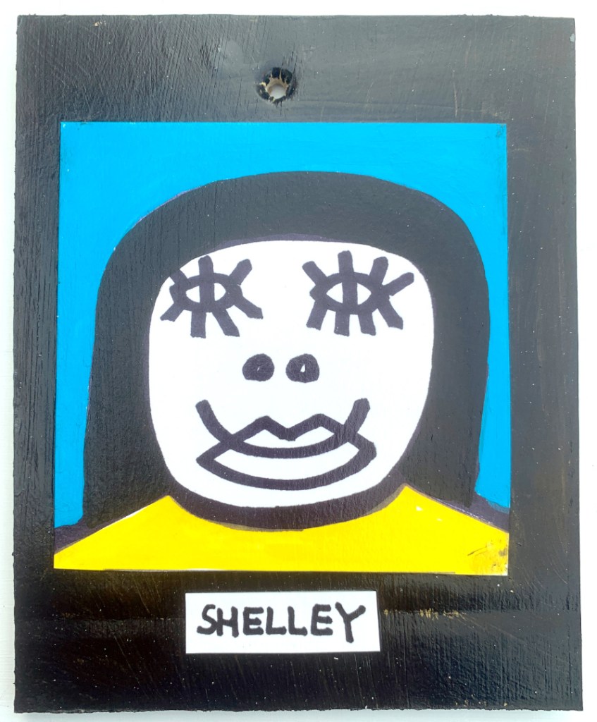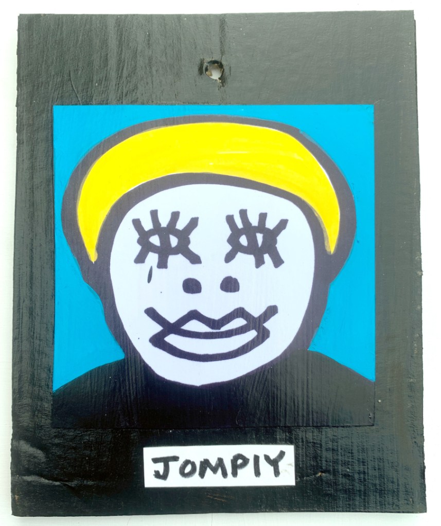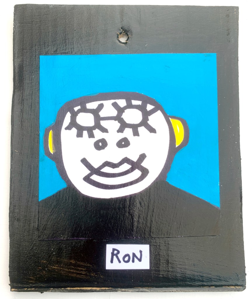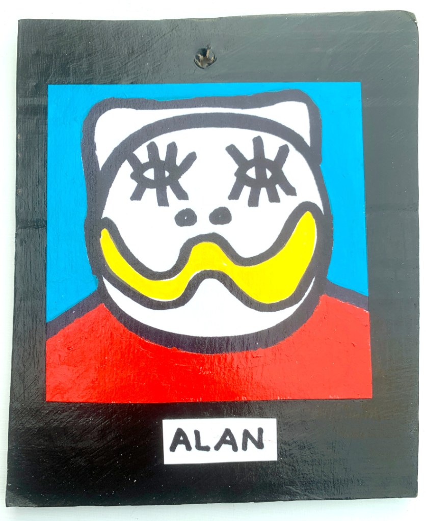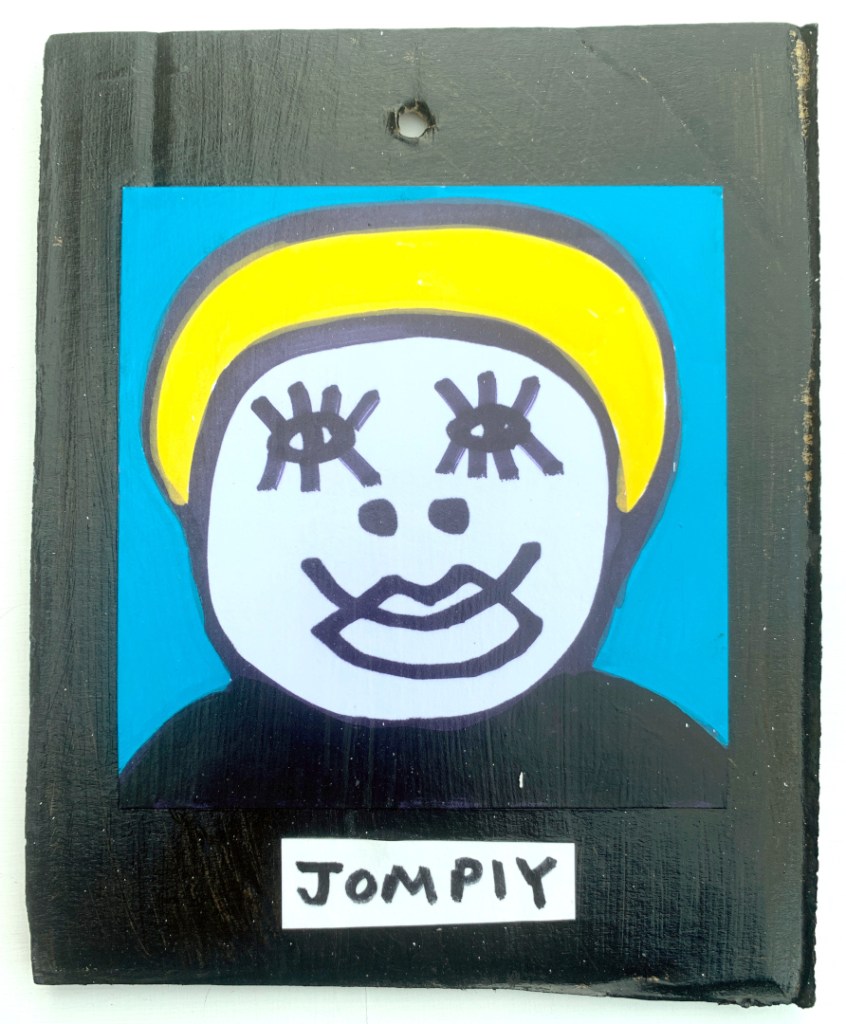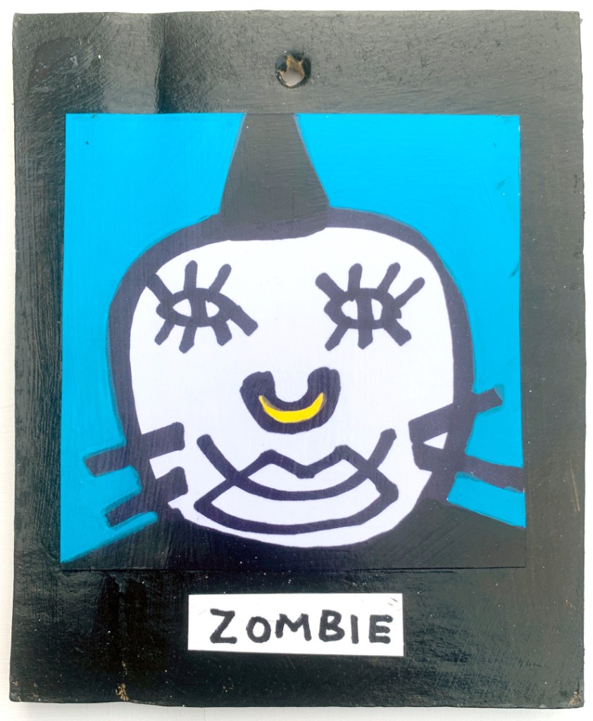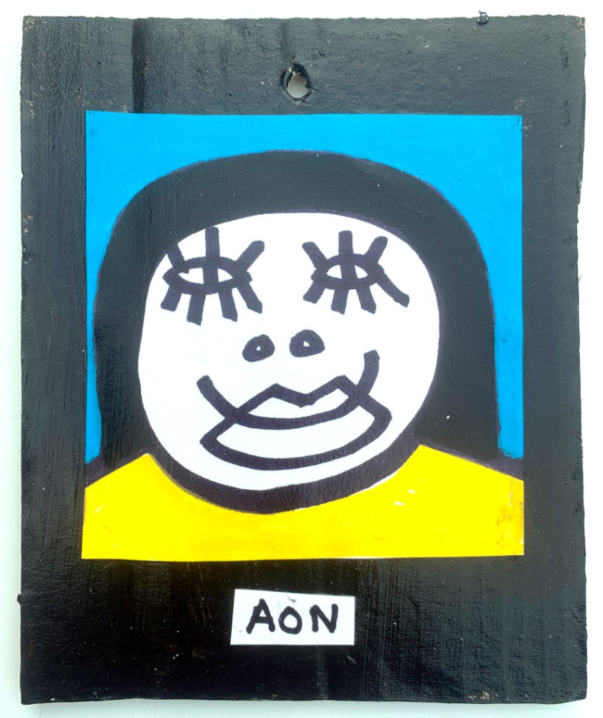 Acrylic on paper paintings, PVA glued onto thick, good quality cardboard rescued from the streets of Camden and Muswell Hill. Coated in PVA glue with hand-written info on the back in black Sharpie permanent marker.