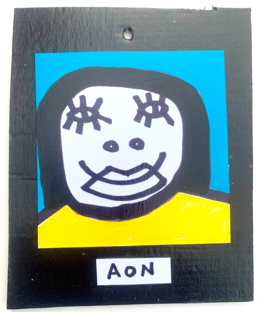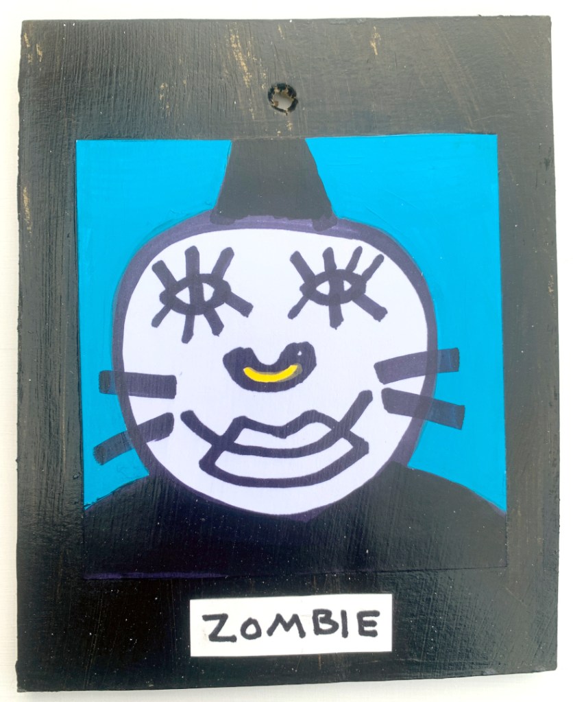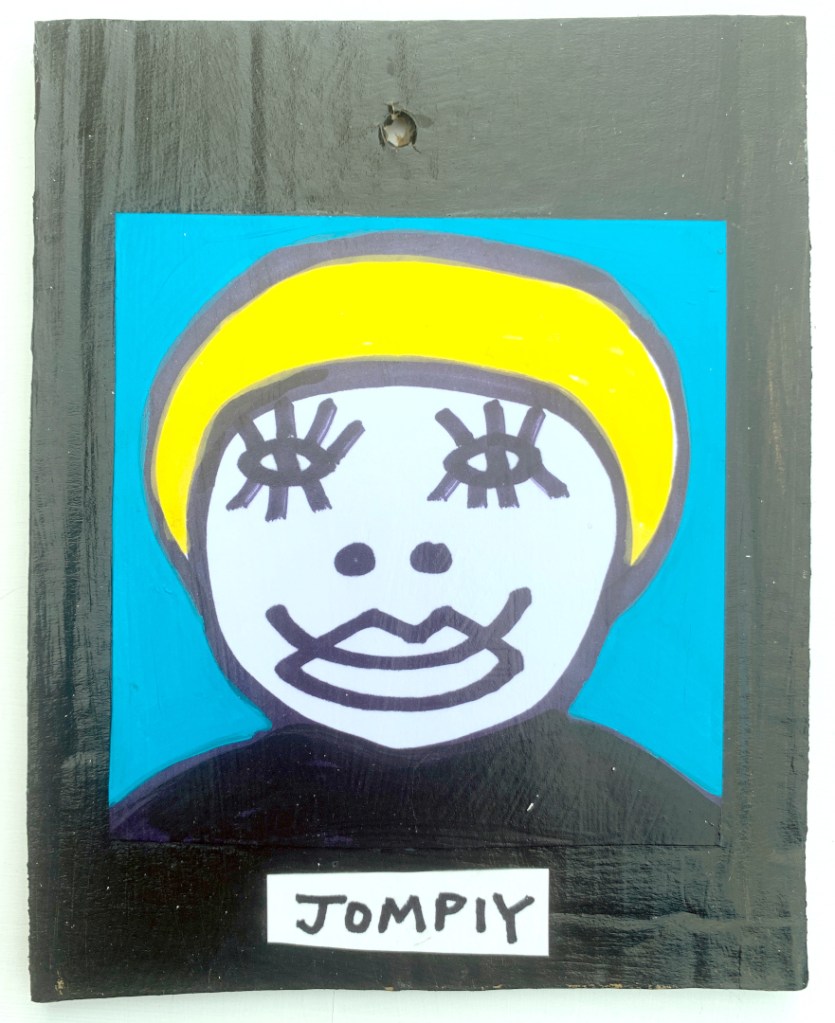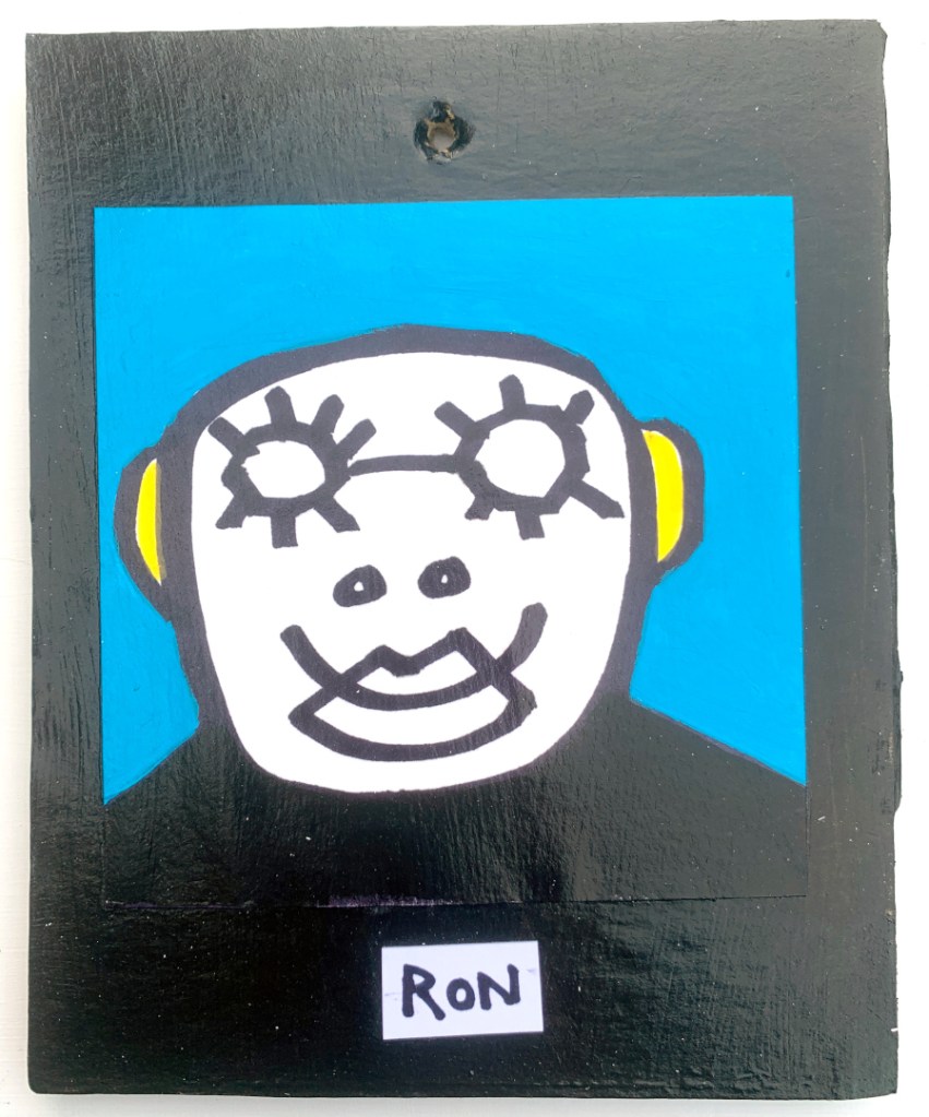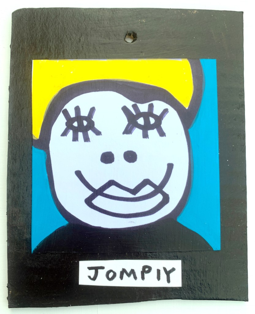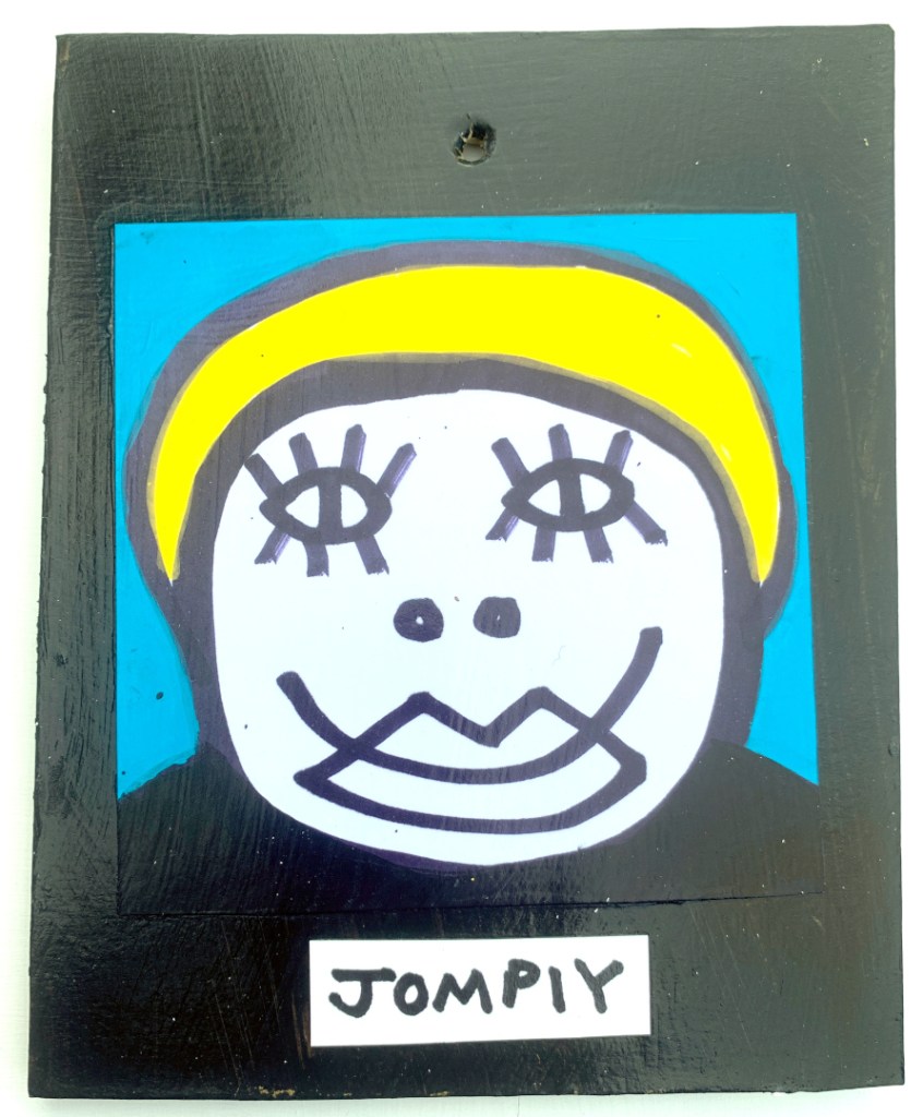 Acrylic on paper paintings, PVA glued onto thick, good quality cardboard rescued from the streets of Camden and Muswell Hill. Coated in PVA glue with hand-written info on the back in black Sharpie permanent marker.