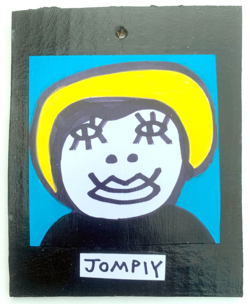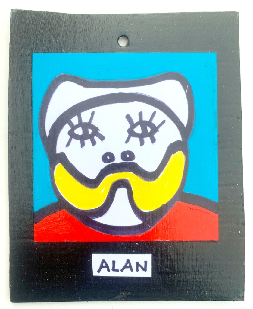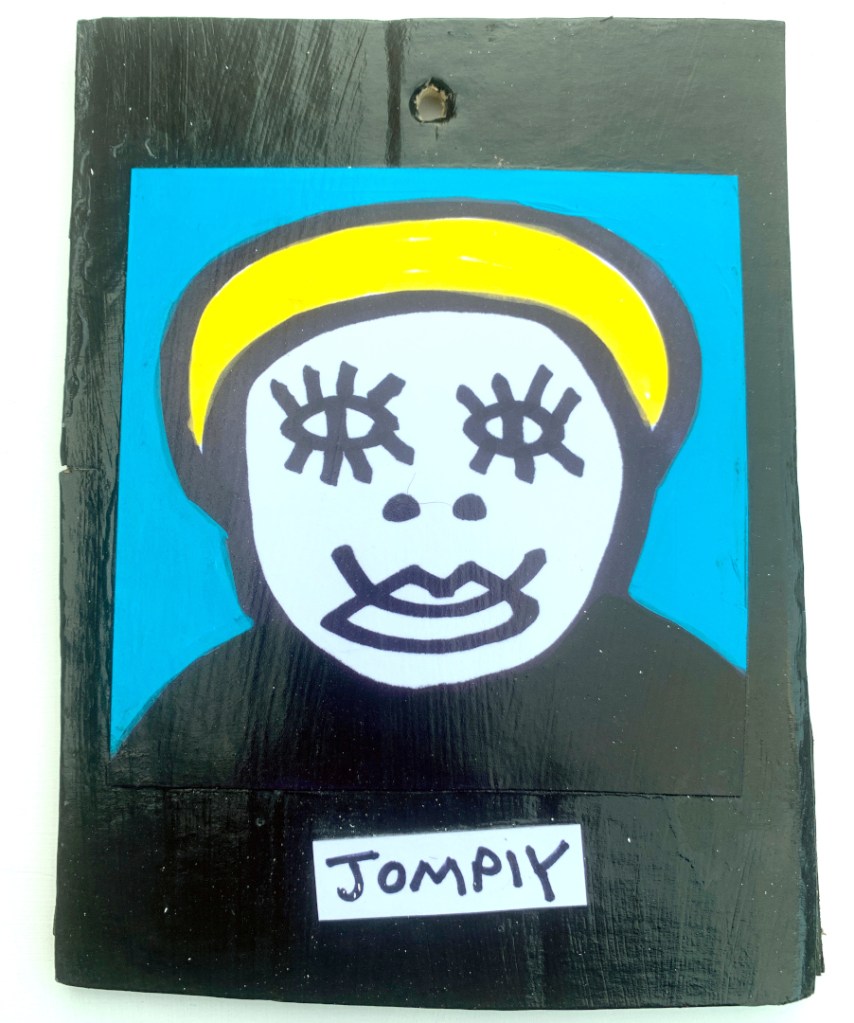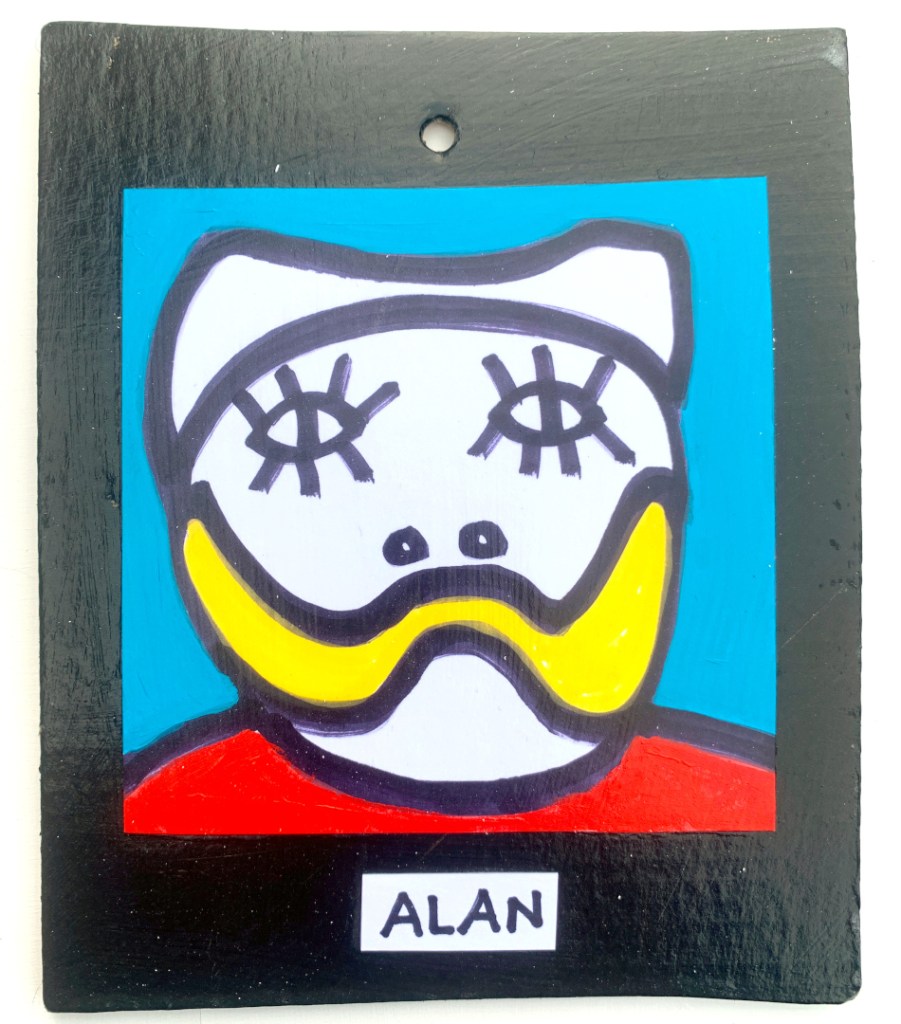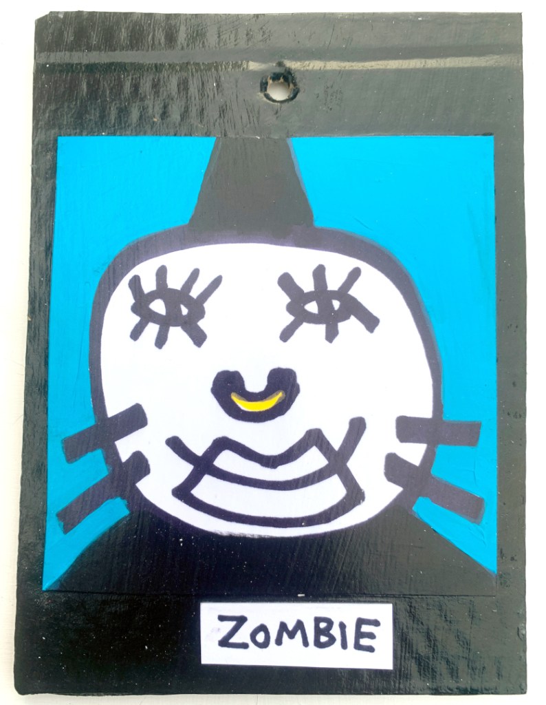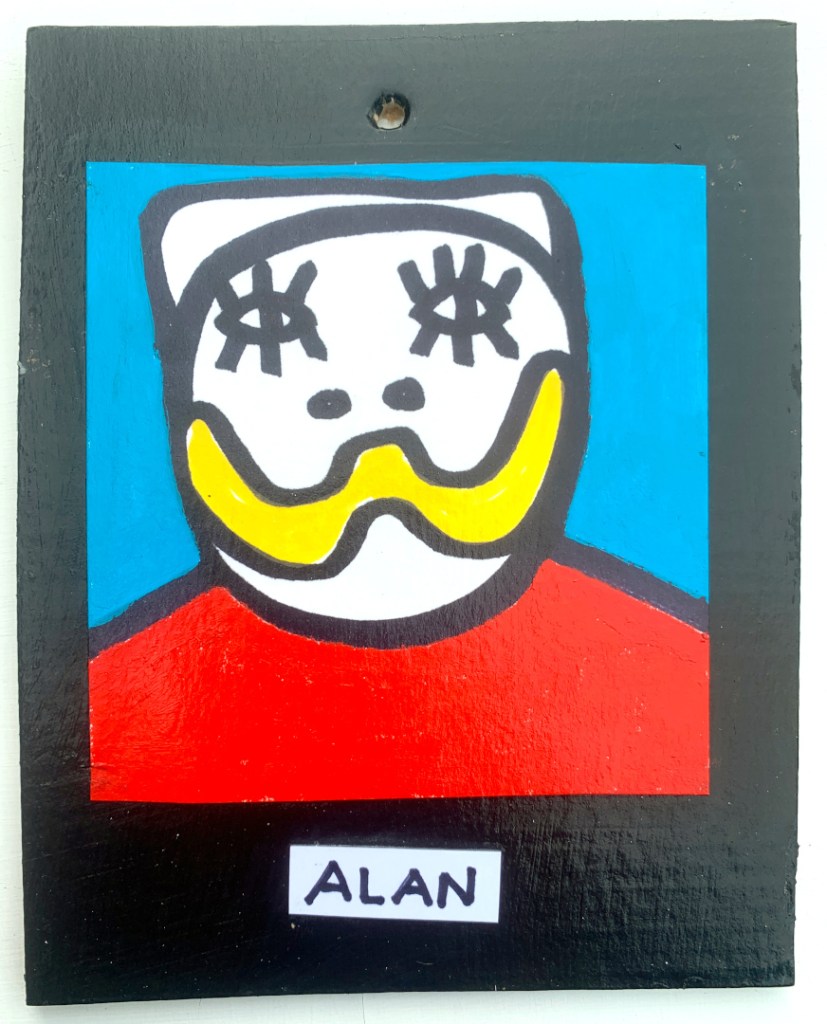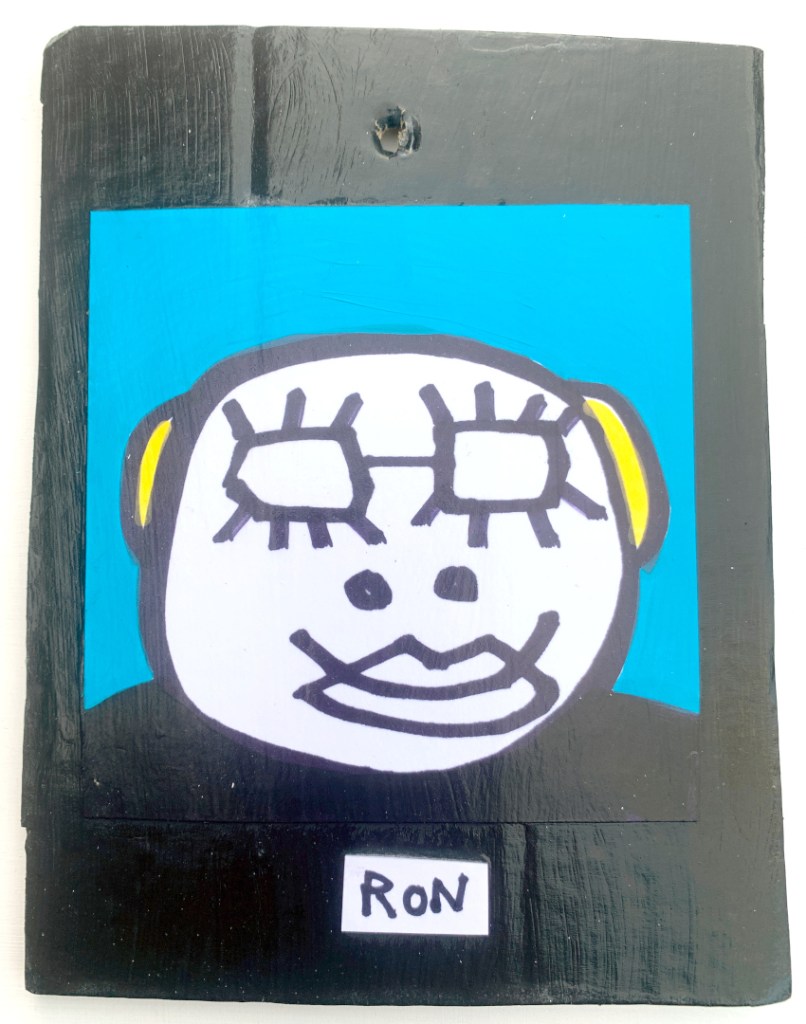 Acrylic on paper paintings, PVA glued onto thick, good quality cardboard rescued from the streets of Camden and Muswell Hill. Coated in PVA glue with hand-written info on the back in black Sharpie permanent marker.