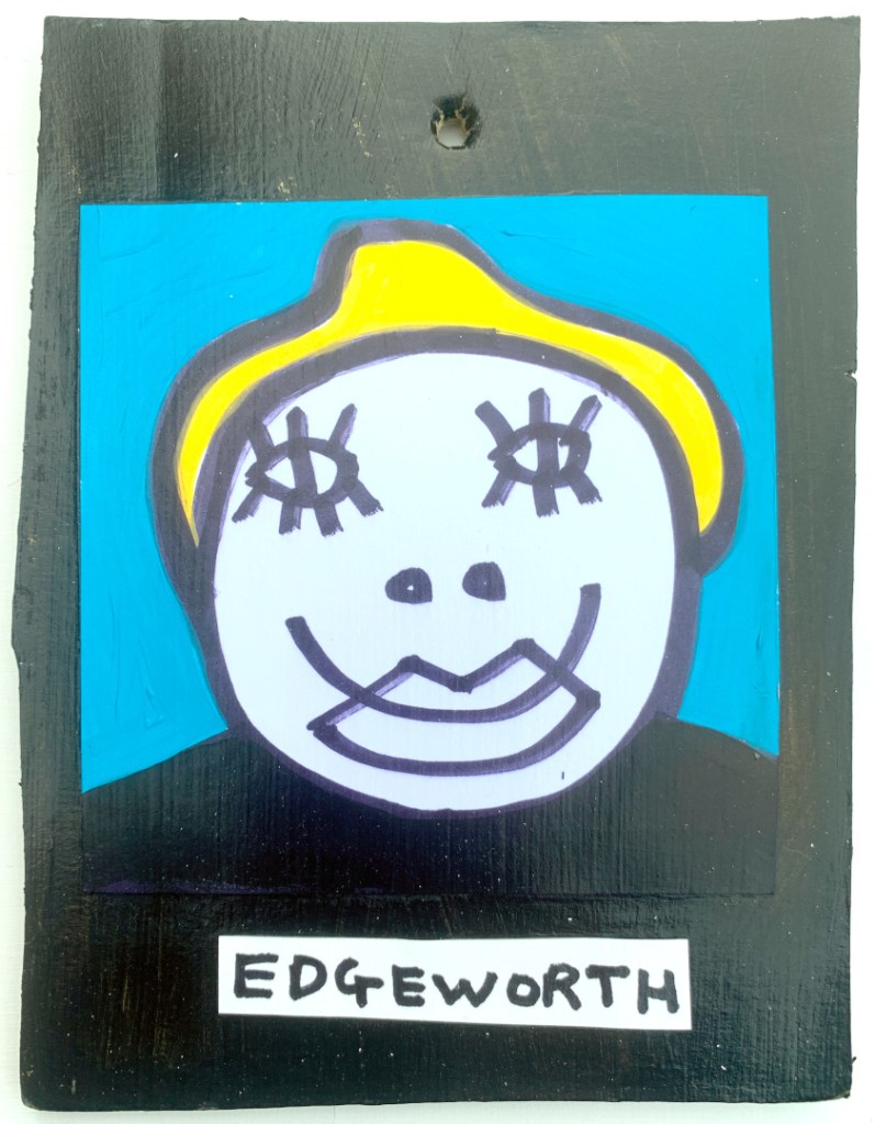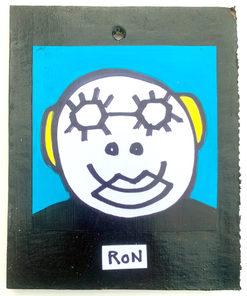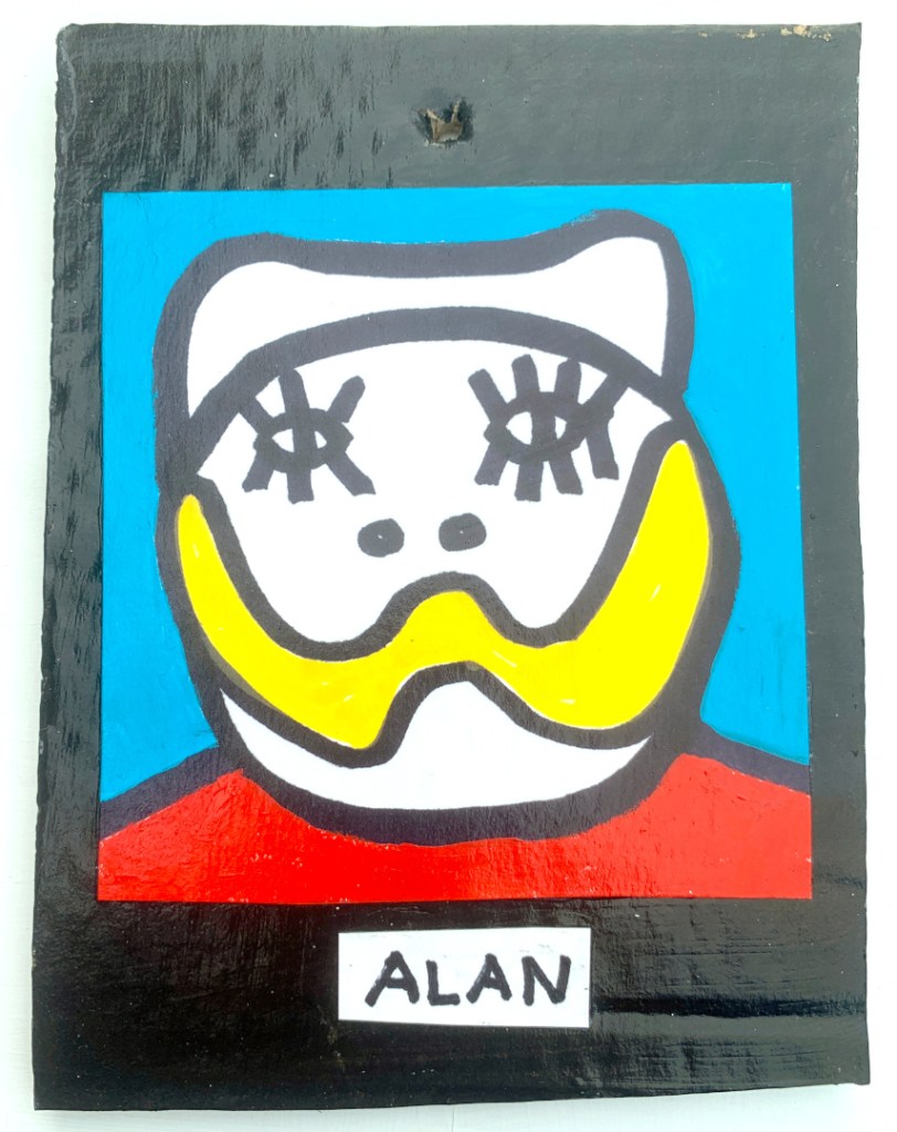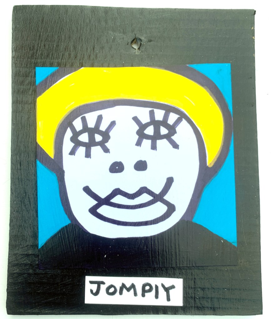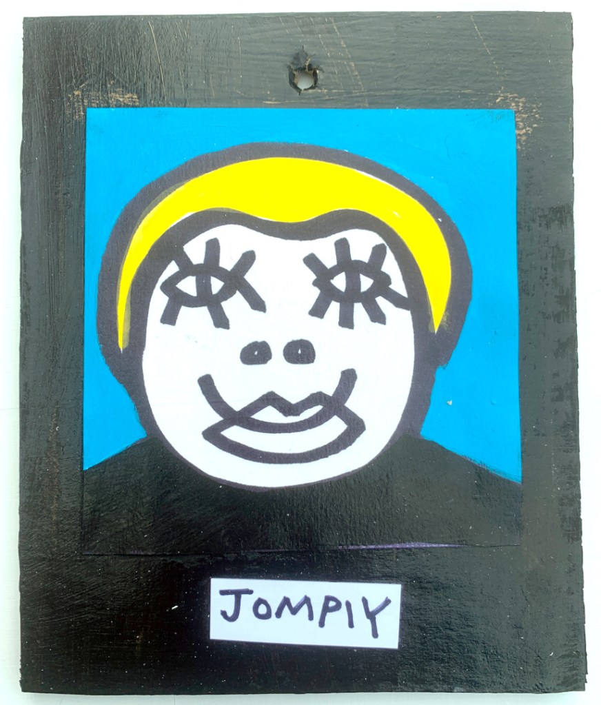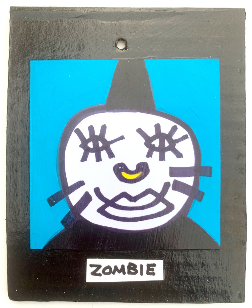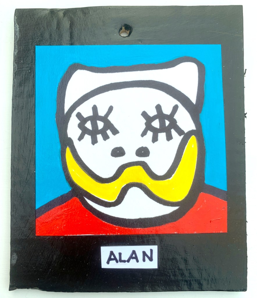 Acrylic on paper paintings, PVA glued onto thick, good quality cardboard rescued from the streets of Camden and Muswell Hill. Coated in PVA glue with hand-written info on the back in black Sharpie permanent marker.