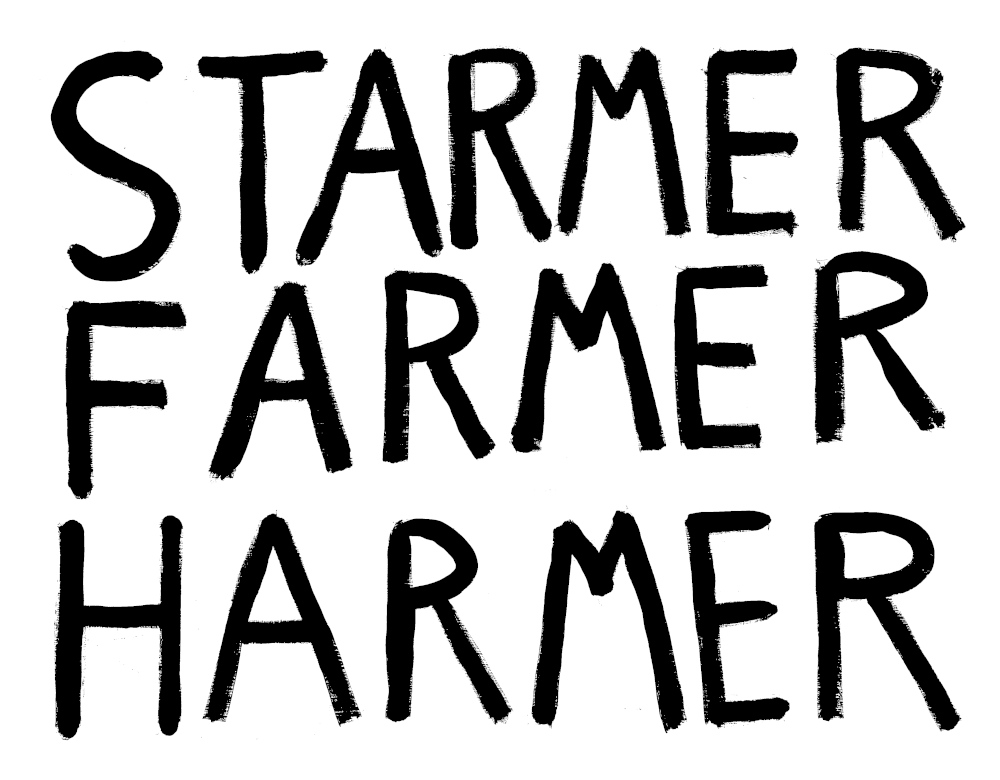 Buy the placards in my Etsy shop at: https://www.etsy.com/uk/listing/1881218608/starmer-farmer-harmer-placard-ready-to
