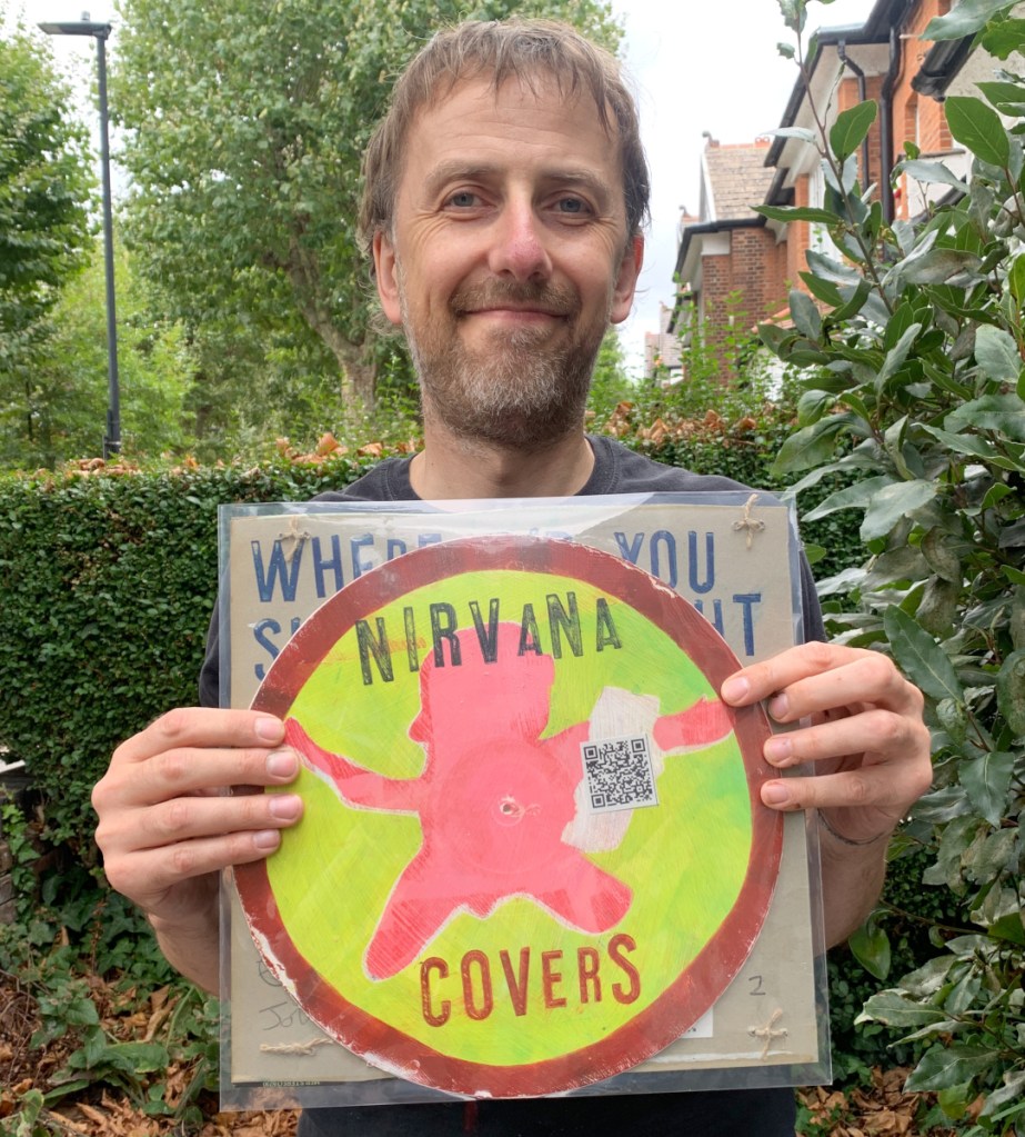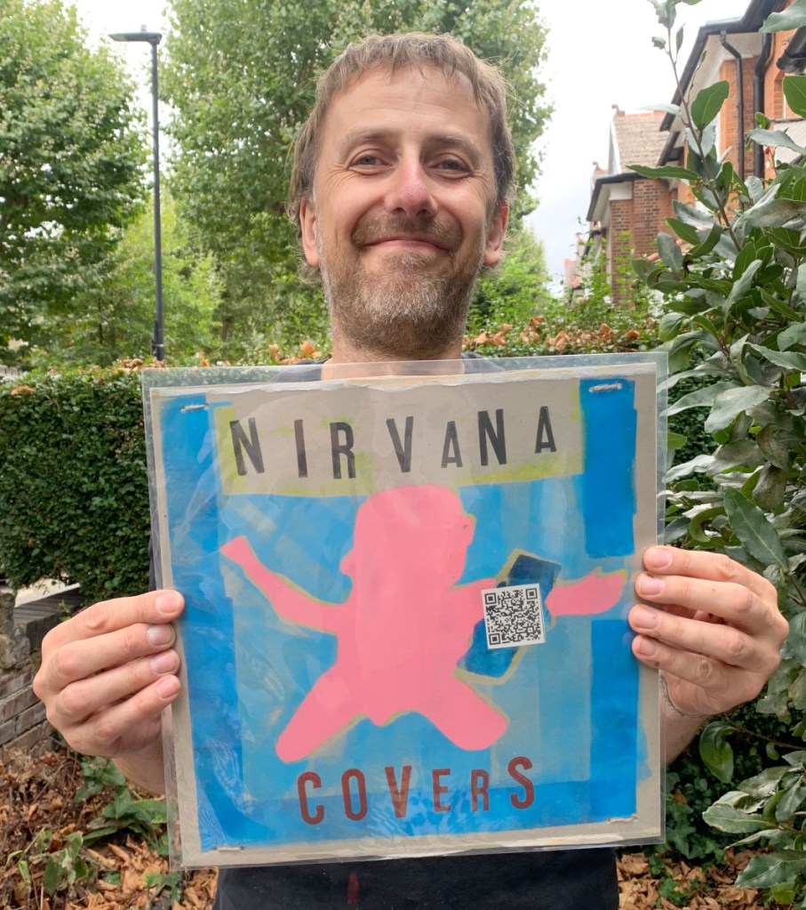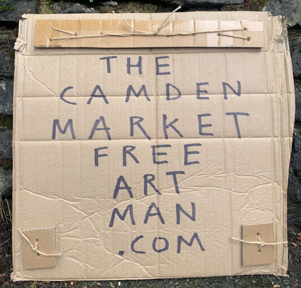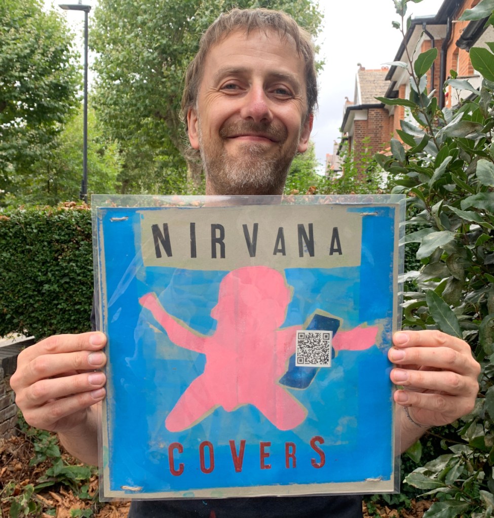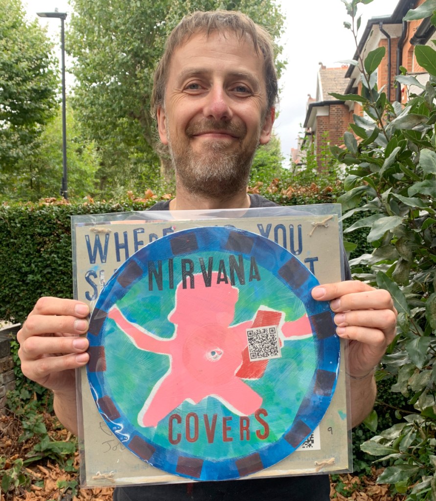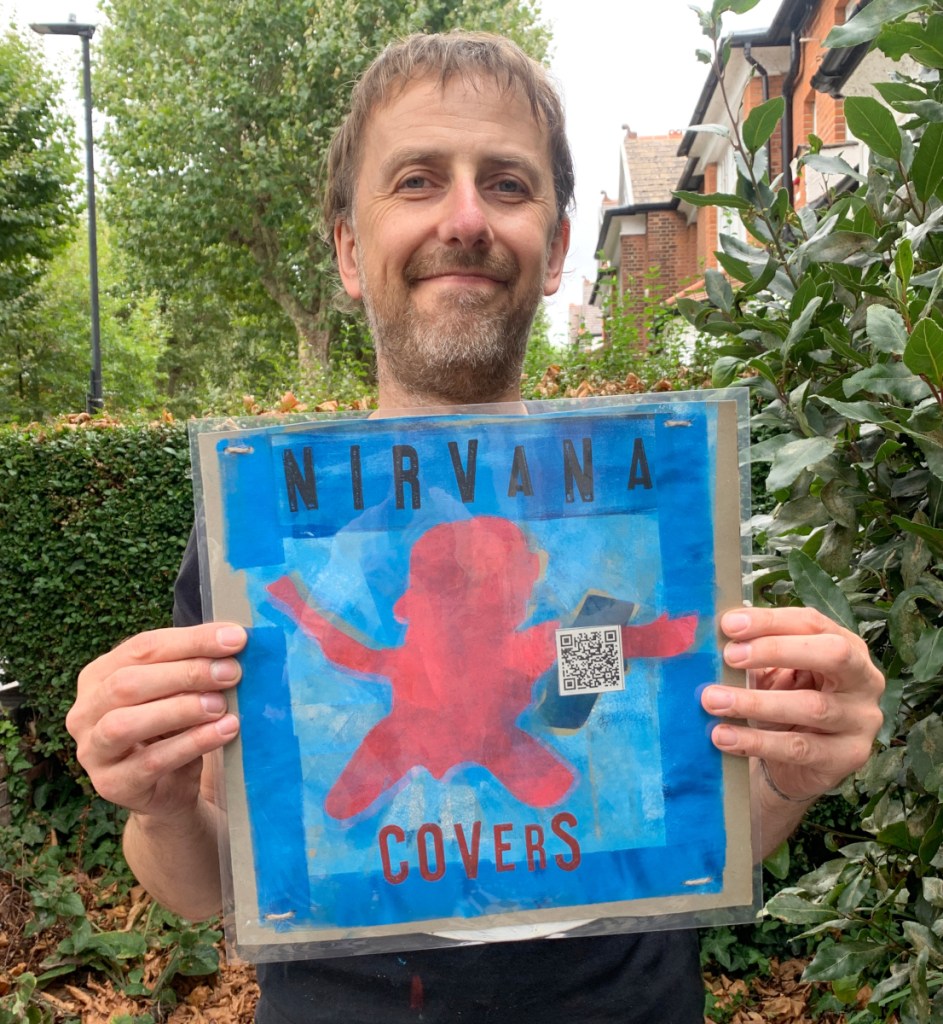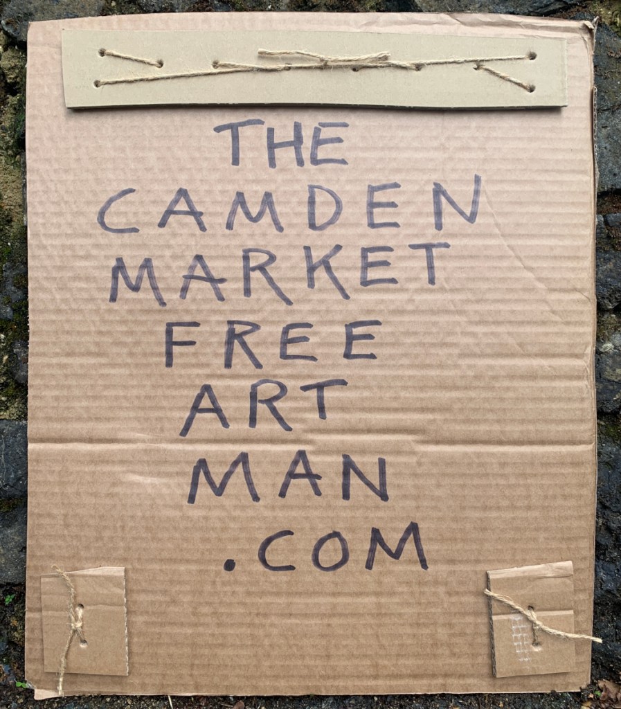 I make these 12 inch Nirvana LPs from second hand vinyl I buy in charity shops. Hand made monoprints on the album cover and face of the vinyl. They come in a clear crystal album sleeve, are signed and numbered and can be bought on my Etsy and Ebay shops. I also give them away at my Camden Market Free Art Man Political Protest Against Expensive Art. If you go to Camden and I’m not there, Moonlight Sculpture sell them on Maker’s Alley, near the Amy Winehouse statue and Cyberdog. See this Instagram post for a clearer picture of where that is: