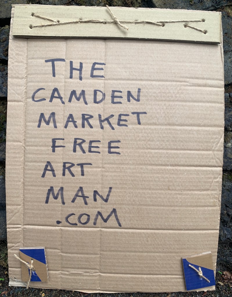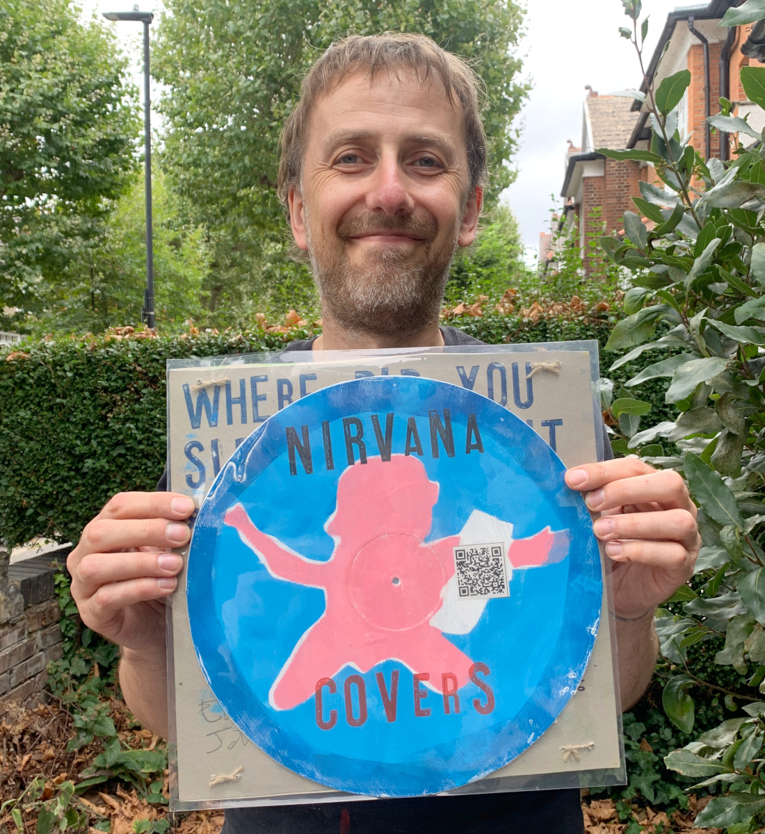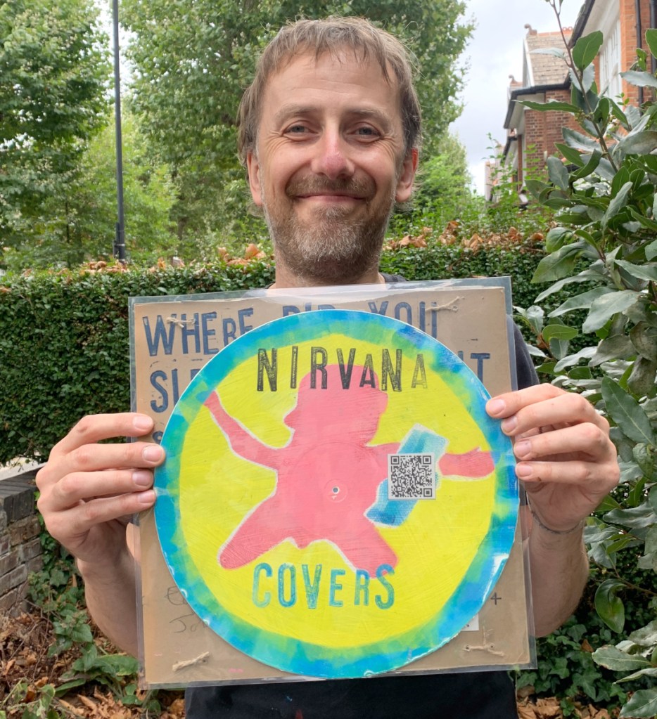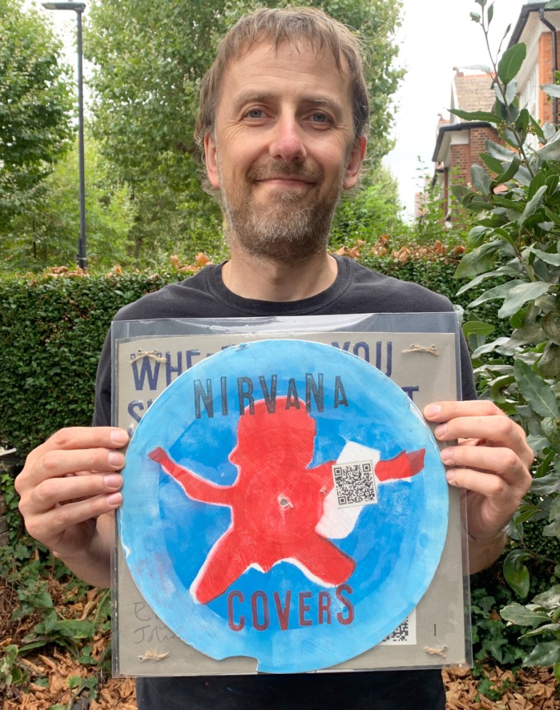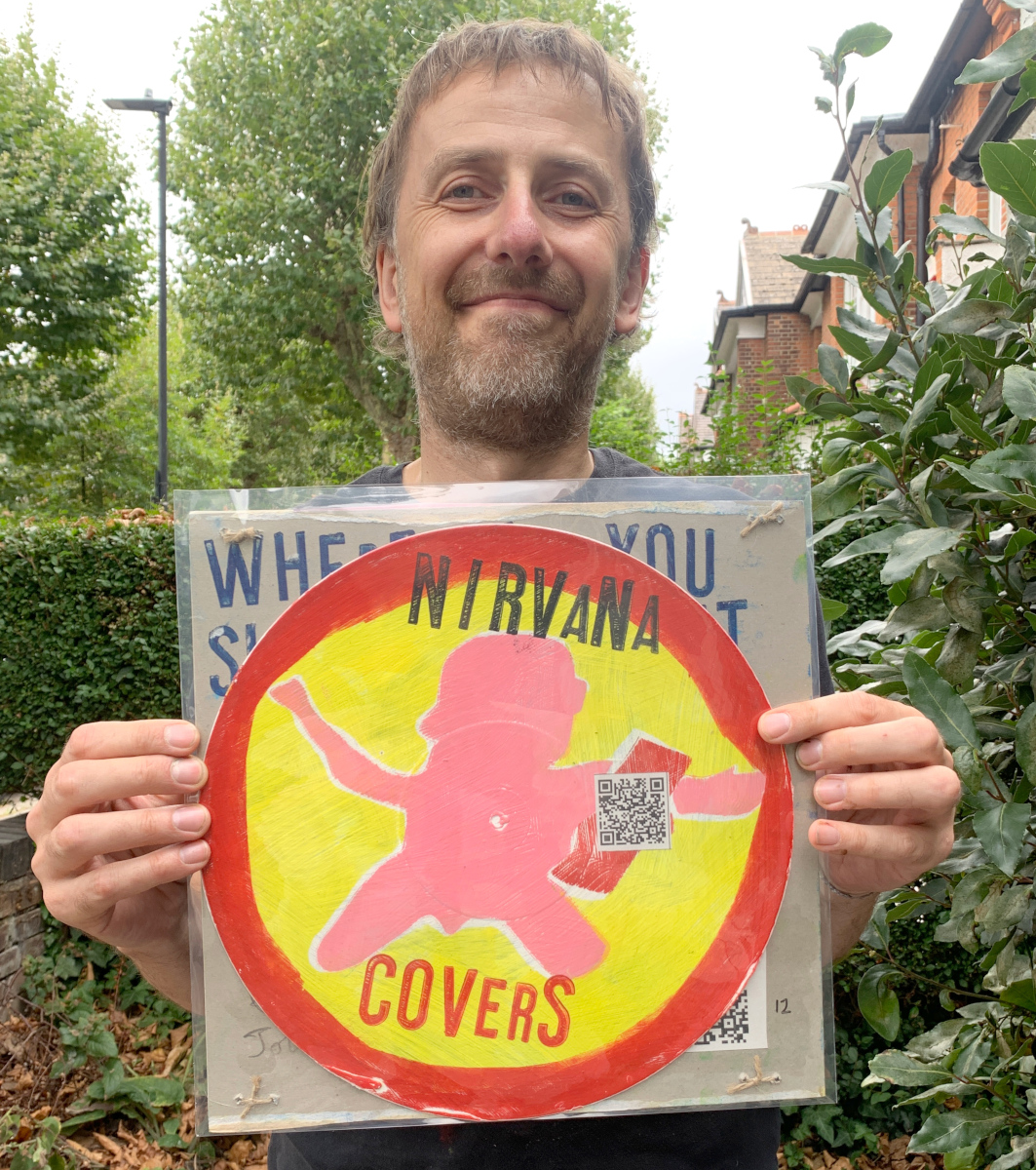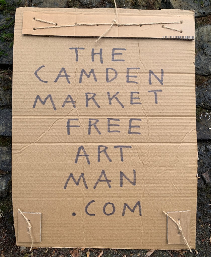 I make these 12 inch Nirvana LPs from second hand vinyl I buy in charity shops. Hand made monoprints on the album cover and face of the vinyl. They come in a clear crystal album sleeve, are signed and numbered and can be bought on my Etsy and Ebay shops. I also give them away at my Camden Market Free Art Man Political Protest Against Expensive Art. If you go to Camden and I’m not there, Moonlight Sculpture sell them on Maker’s Alley, near the Amy Winehouse statue and Cyberdog. See this Instagram post for a clearer picture of where that is: