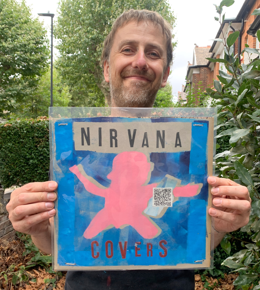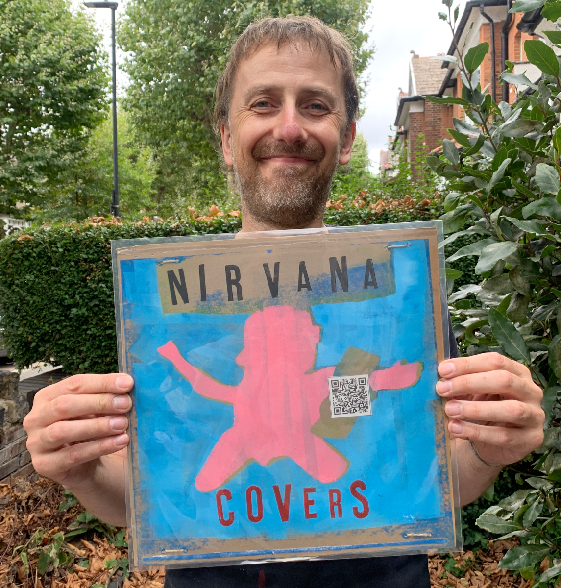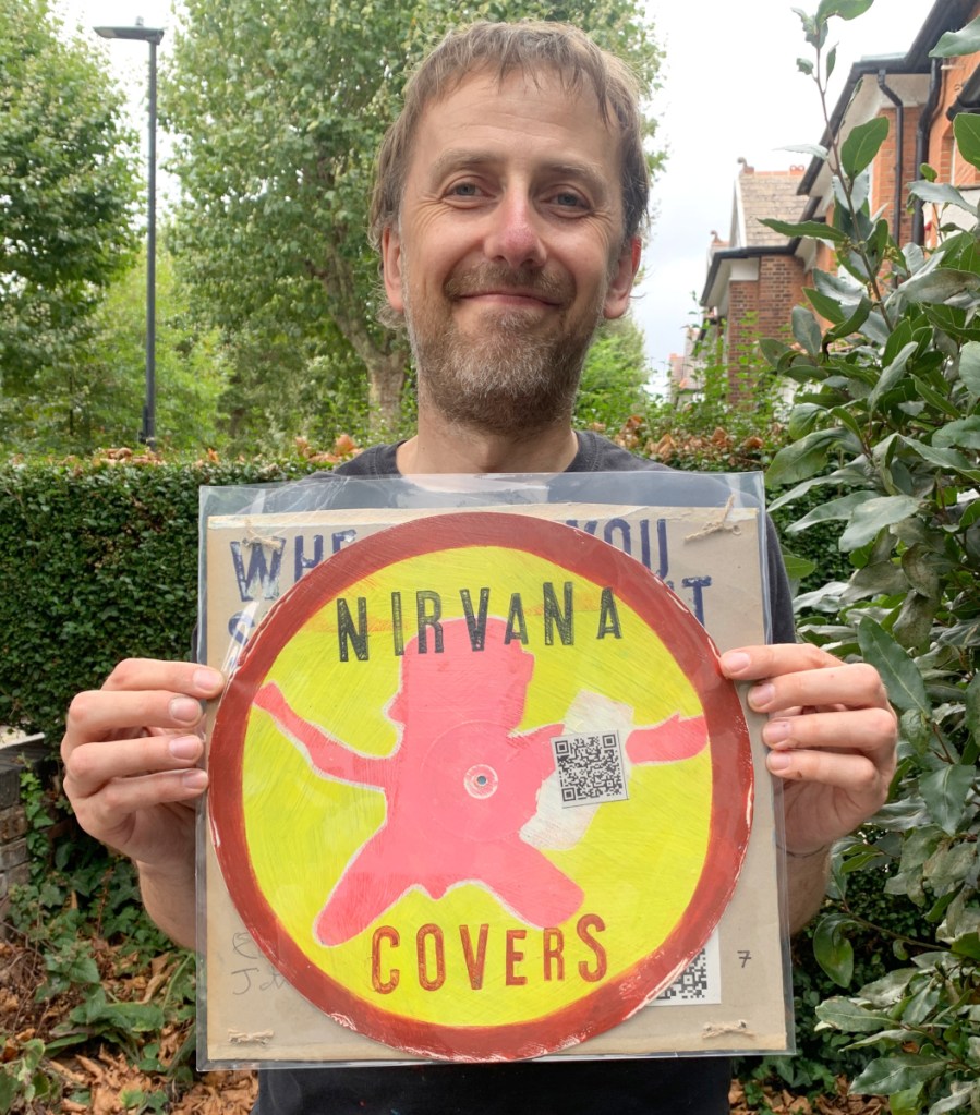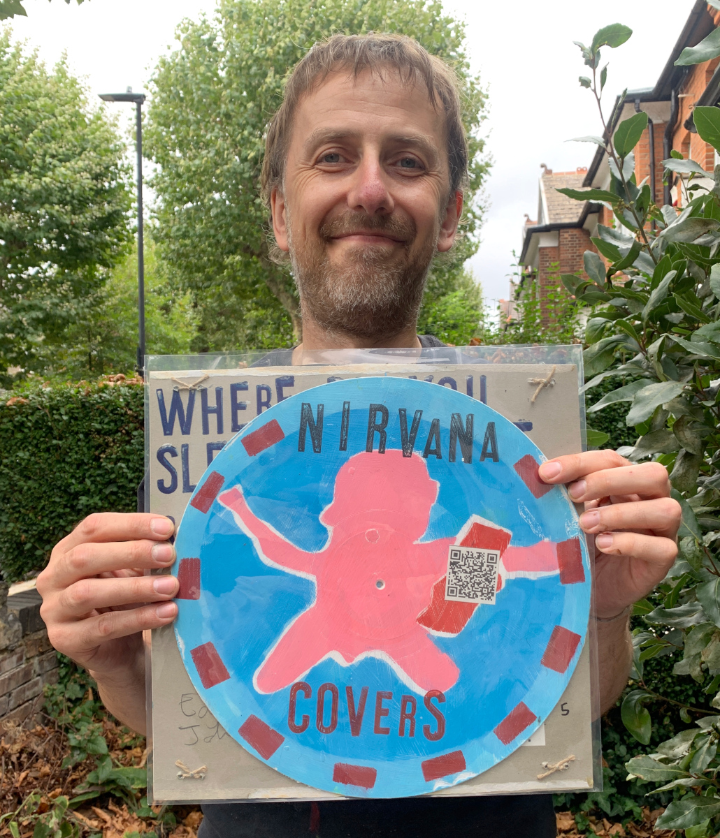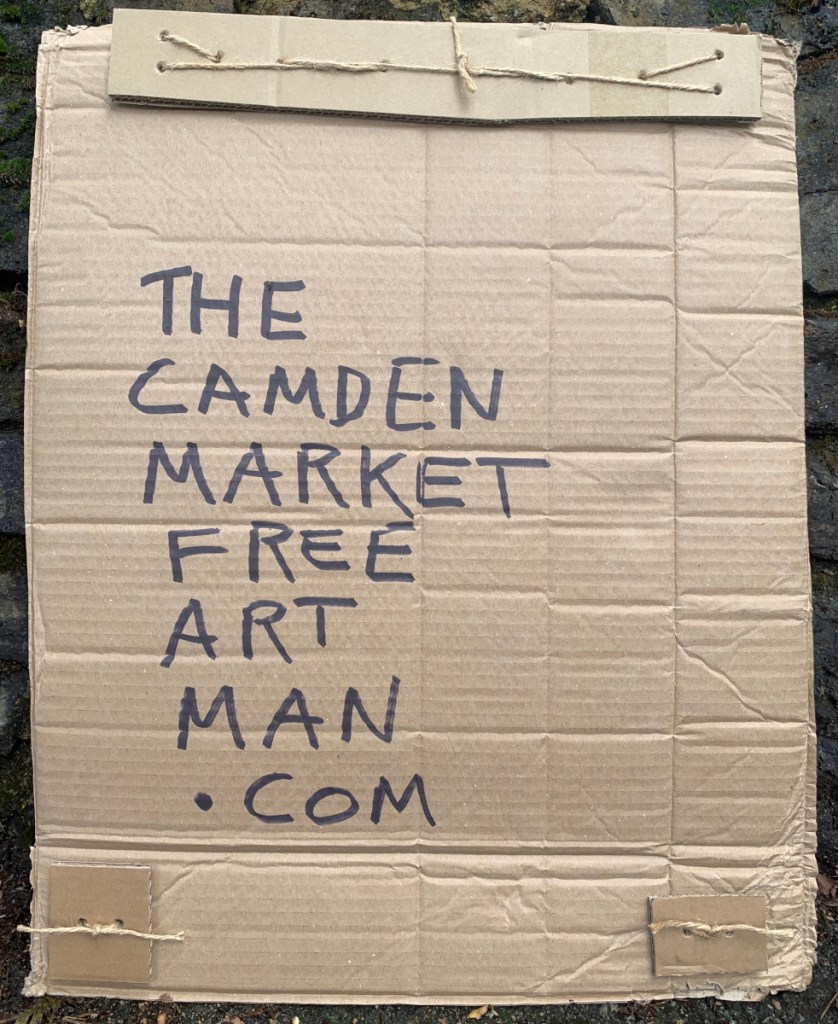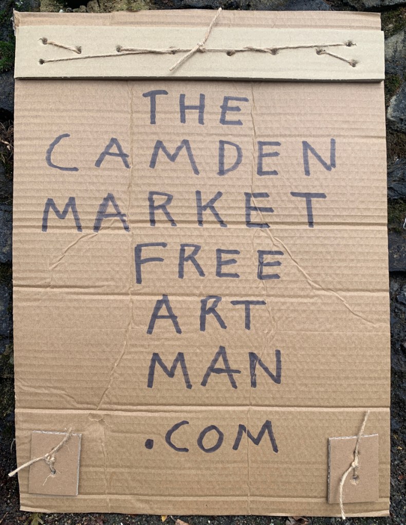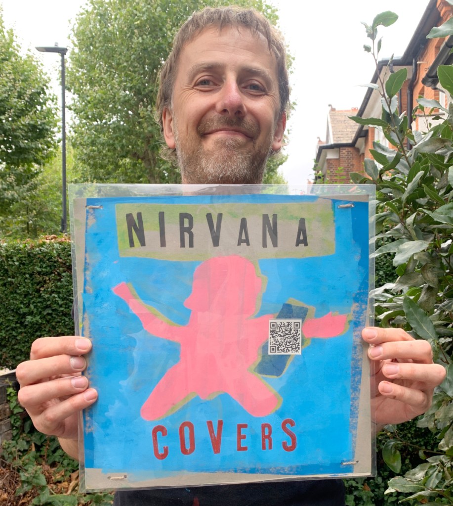 I make these 12 inch Nirvana LPs from second hand vinyl I buy in charity shops. Hand made monoprints on the album cover and face of the vinyl. They come in a clear crystal album sleeve, are signed and numbered and can be bought on my Etsy and Ebay shops. I also give them away at my Camden Market Free Art Man Political Protest Against Expensive Art. If you go to Camden and I’m not there, Moonlight Sculpture sell them on Maker’s Alley, near the Amy Winehouse statue and Cyberdog. See this Instagram post for a clearer picture of where that is: