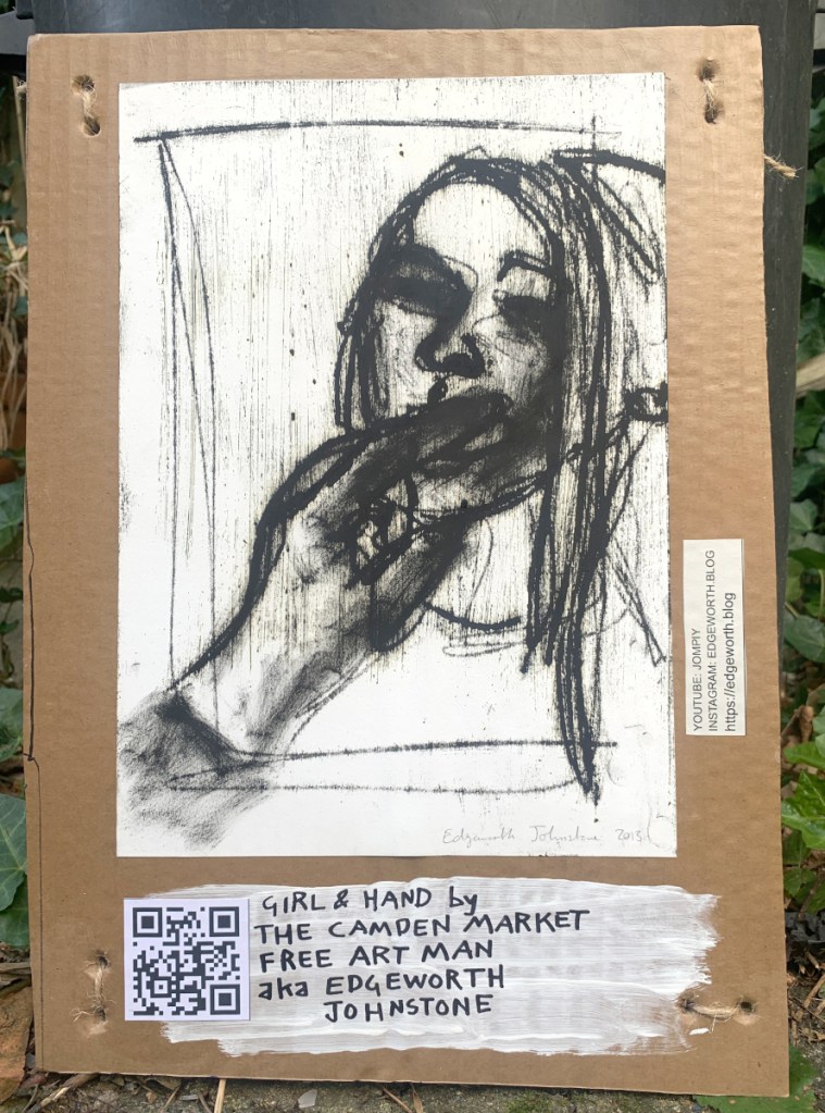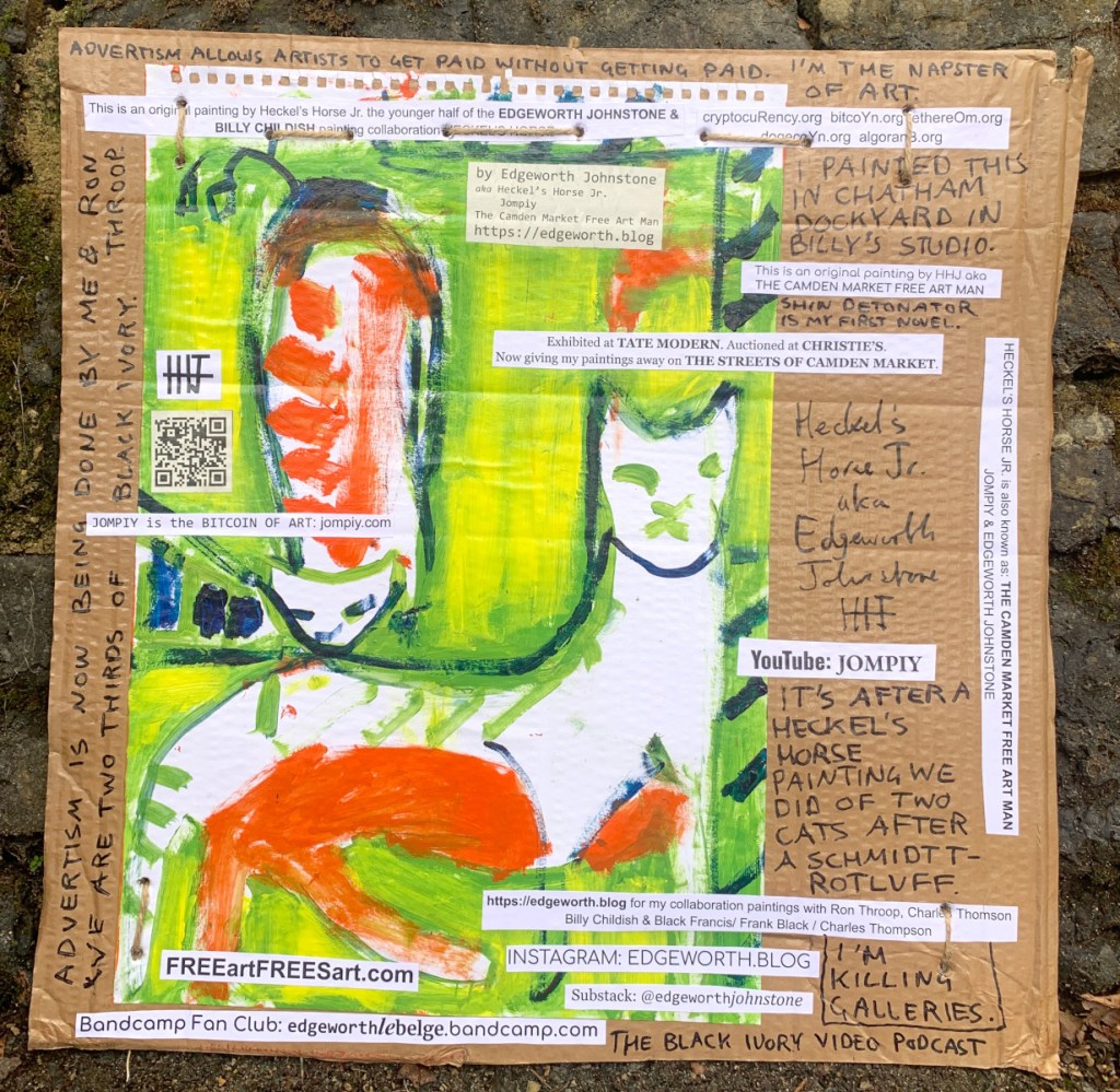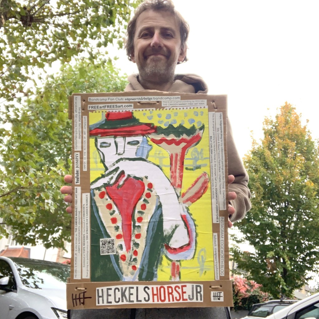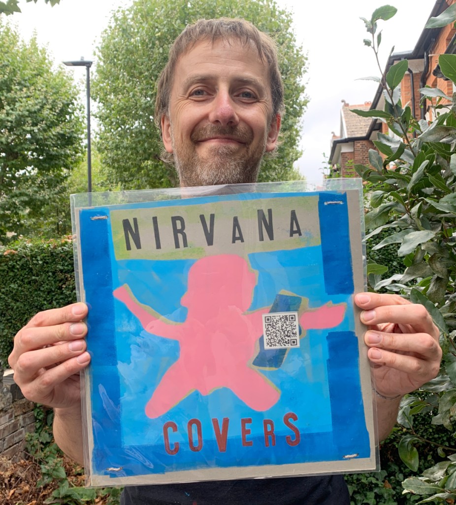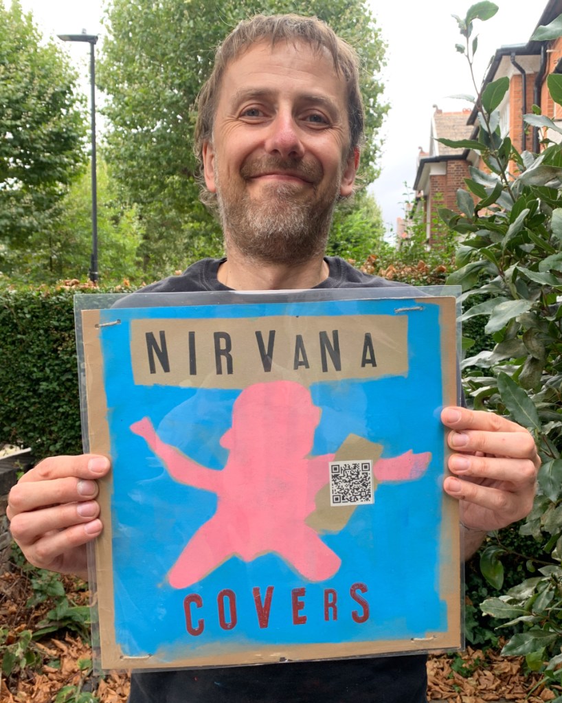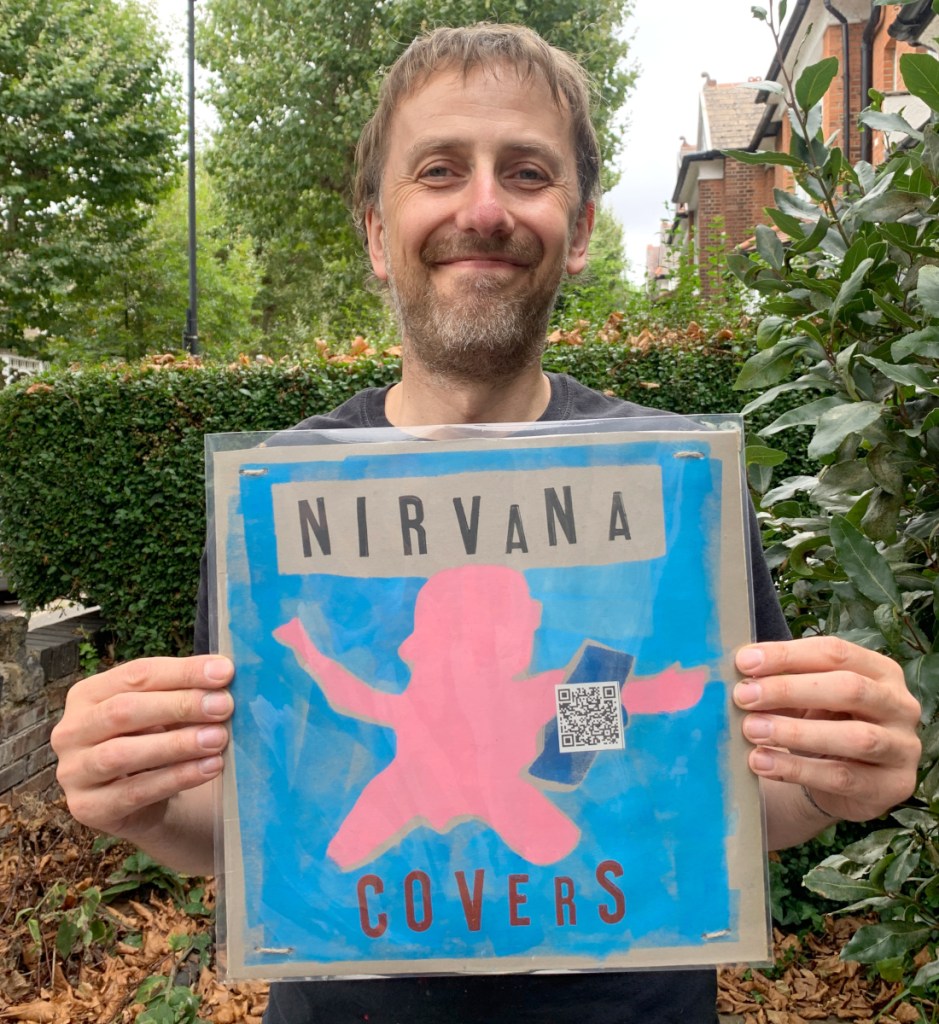 I make these 12 inch Nirvana LPs from second hand vinyl I buy in charity shops. Hand made monoprints on the album cover and face of the vinyl. They come in a clear crystal album sleeve, are signed and numbered and can be bought on my Etsy and Ebay shops. I also give them away at my Camden Market Free Art Man Political Protest Against Expensive Art. If you go to Camden and I’m not there, Moonlight Sculpture sell them on Maker’s Alley, near the Amy Winehouse statue and Cyberdog. See this Instagram post for a clearer picture of where that is: