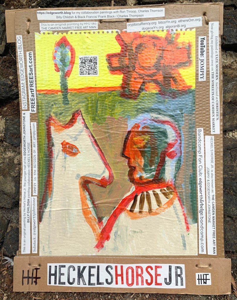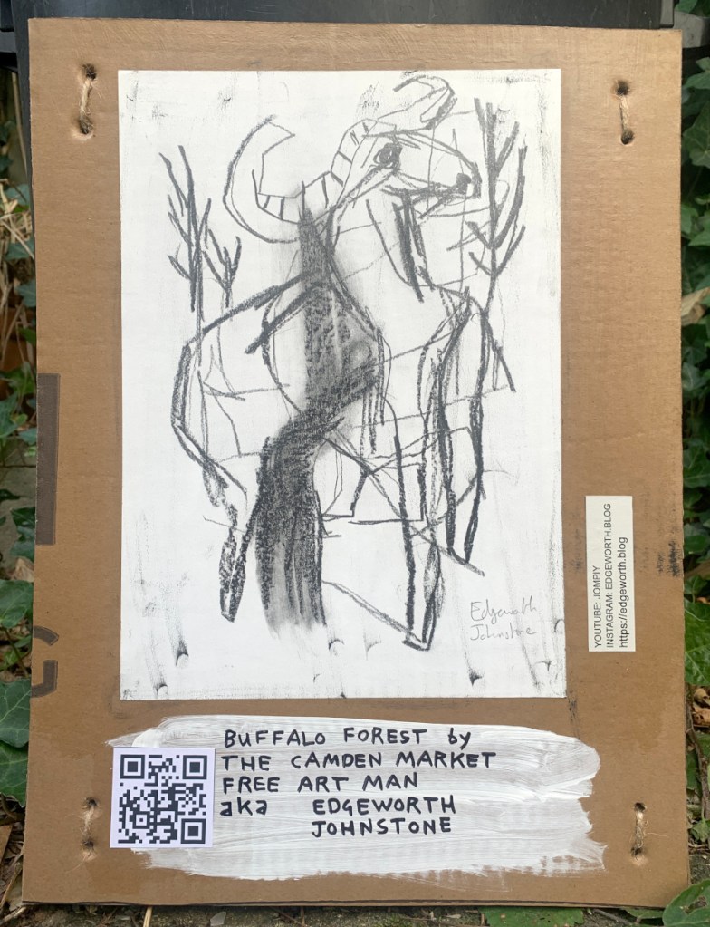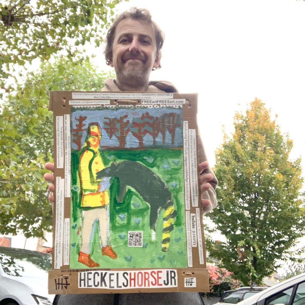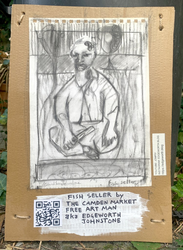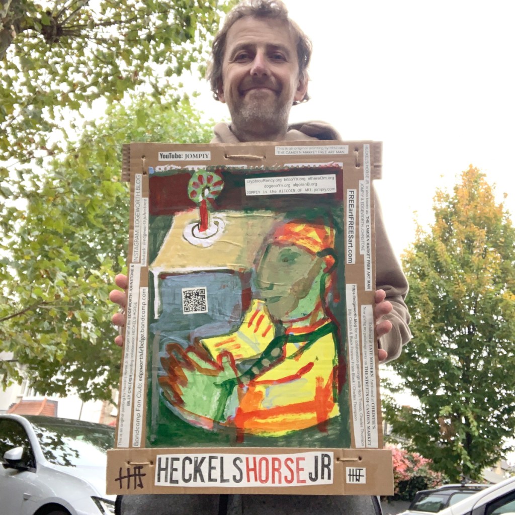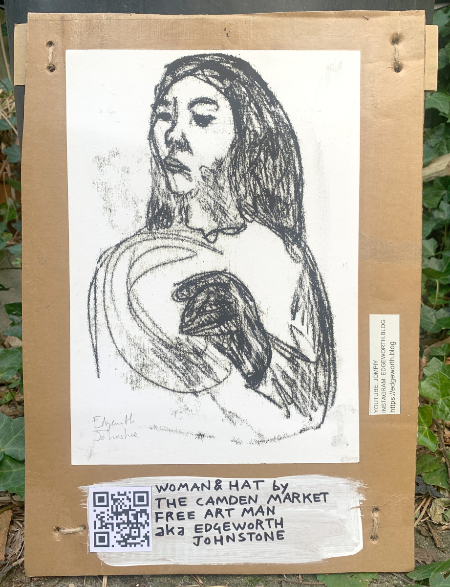 I make these 12 inch Nirvana LPs from second hand vinyl I buy in charity shops. Hand made monoprints on the album cover and face of the vinyl. They come in a clear crystal album sleeve, are signed and numbered and can be bought on my Etsy and Ebay shops. I also give them away at my Camden Market Free Art Man Political Protest Against Expensive Art. If you go to Camden and I’m not there, Moonlight Sculpture sell them on Maker’s Alley, near the Amy Winehouse statue and Cyberdog. See this Instagram post for a clearer picture of where that is: