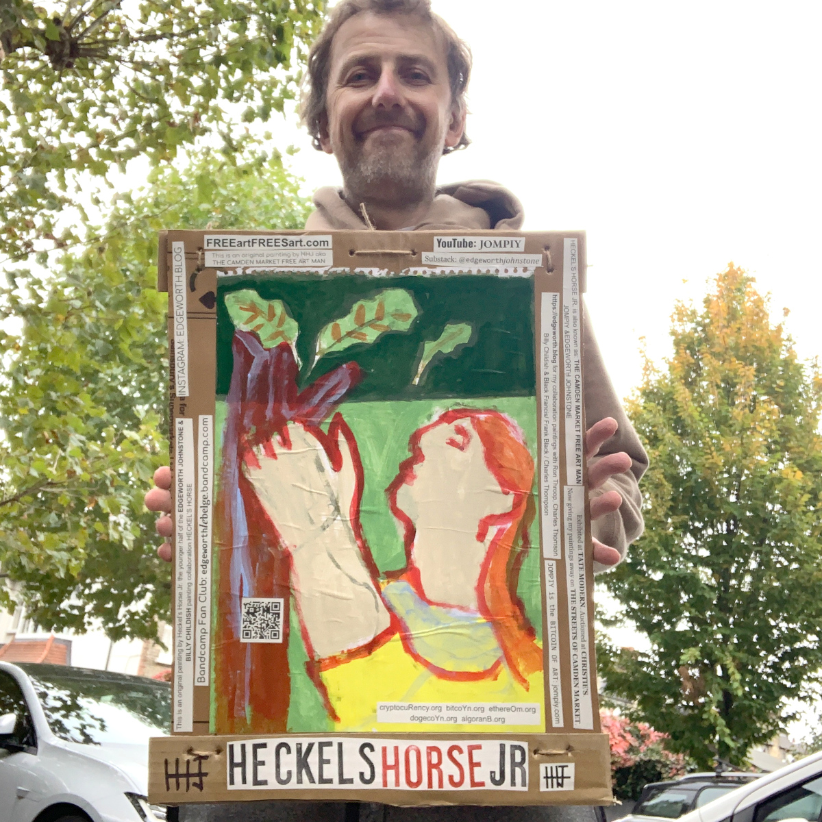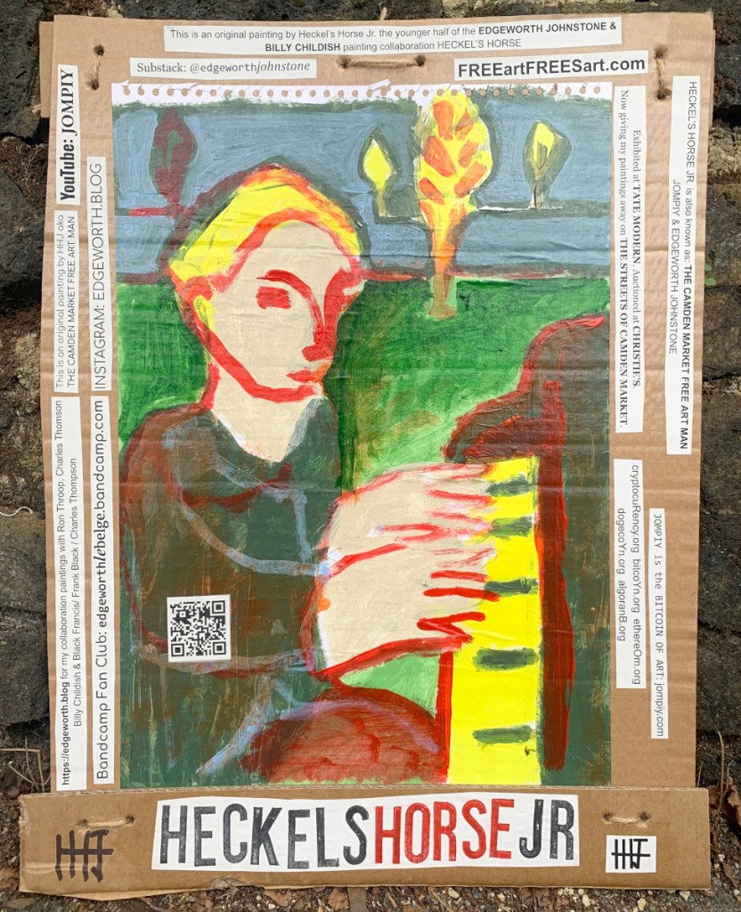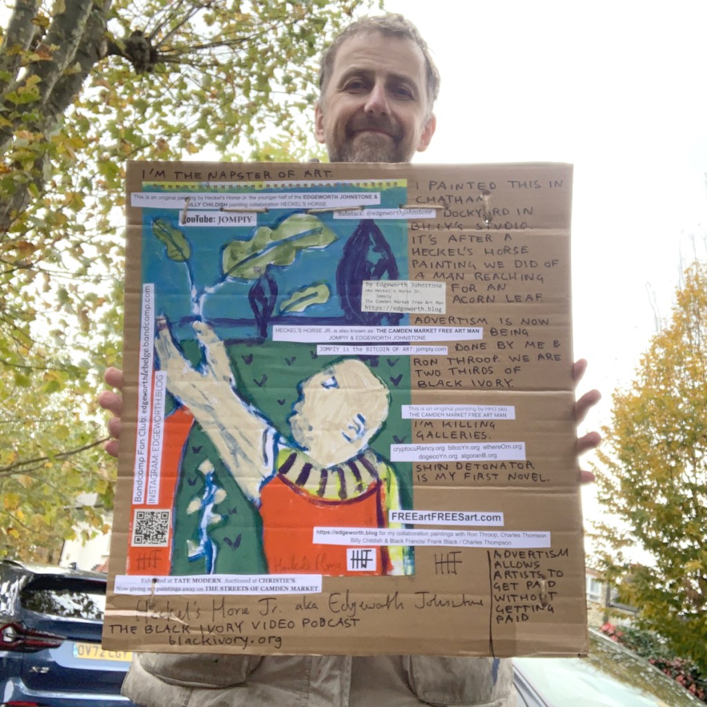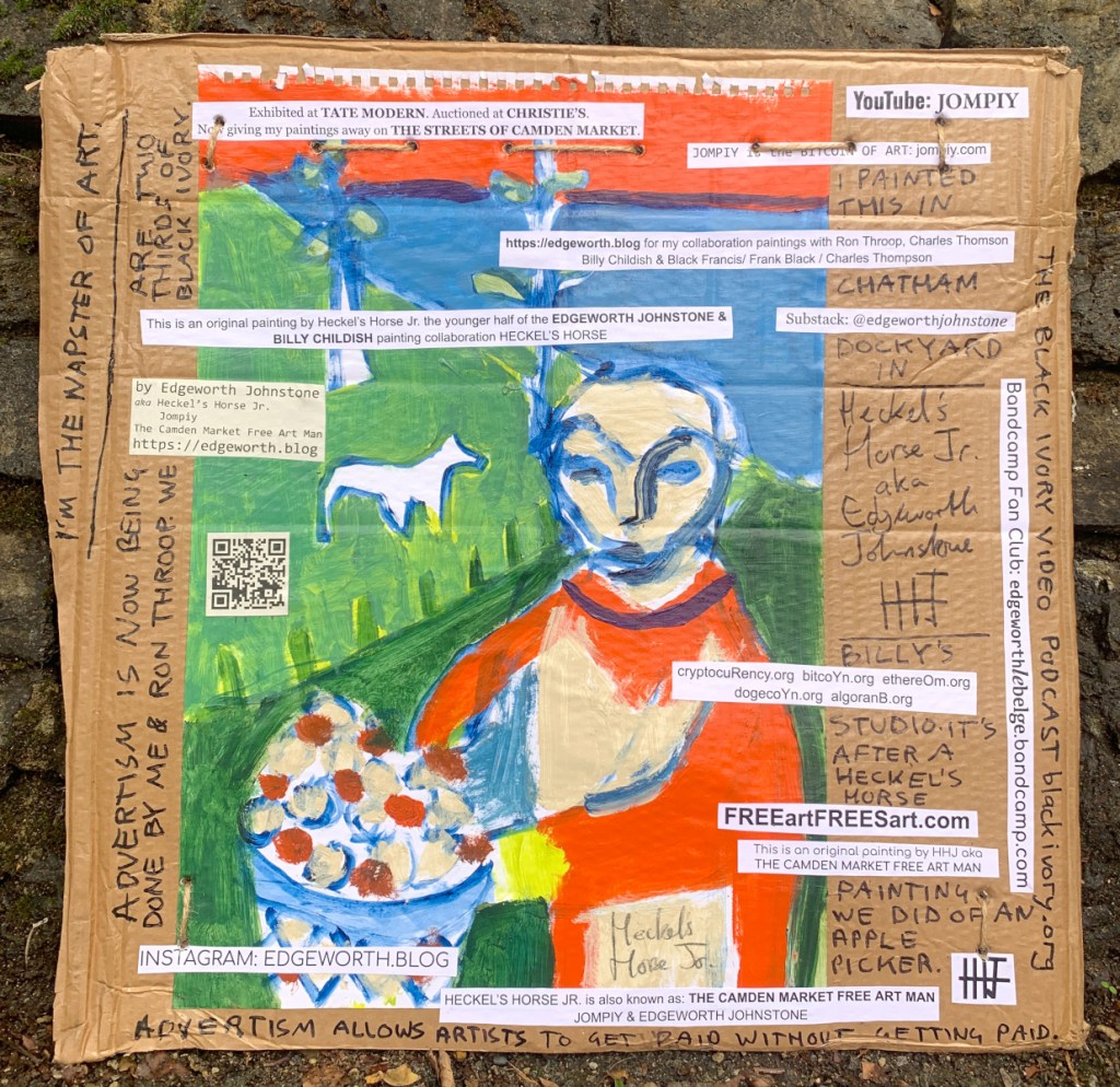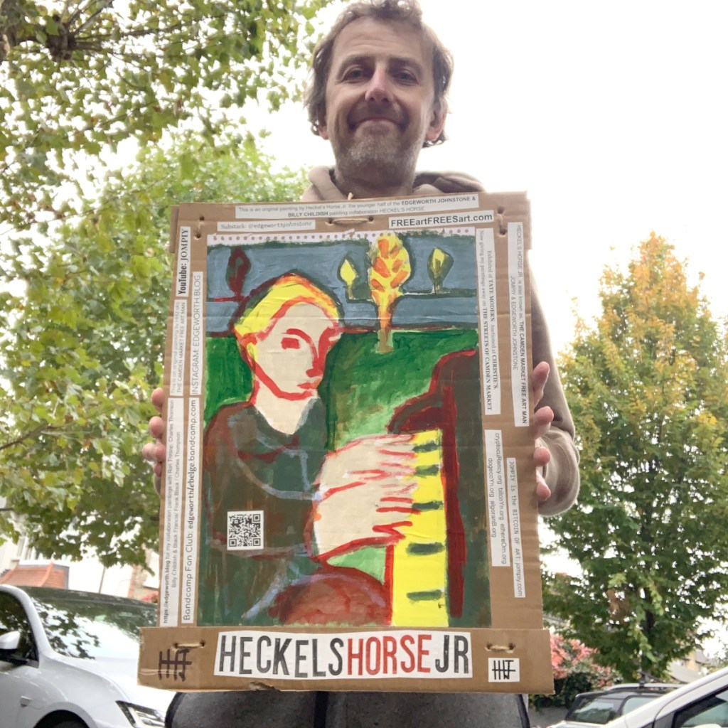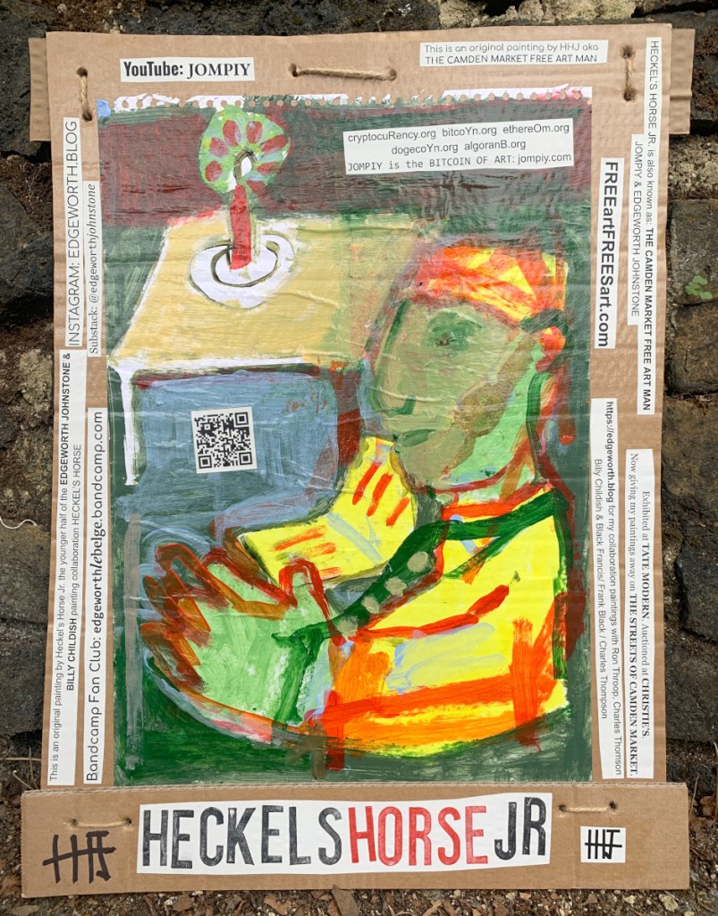 I make these 12 inch Nirvana LPs from second hand vinyl I buy in charity shops. Hand made monoprints on the album cover and face of the vinyl. They come in a clear crystal album sleeve, are signed and numbered and can be bought on my Etsy and Ebay shops. I also give them away at my Camden Market Free Art Man Political Protest Against Expensive Art. If you go to Camden and I’m not there, Moonlight Sculpture sell them on Maker’s Alley, near the Amy Winehouse statue and Cyberdog. See this Instagram post for a clearer picture of where that is: