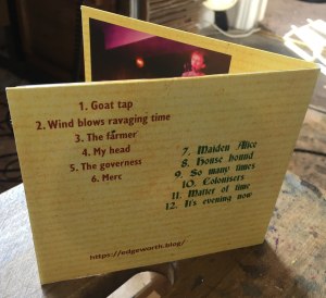 BANDCAMP – In rough hand-made packaging (see photos below) – £15.00 plus postageAbove: Hand-made packaging CD. Available at BANDCAMP.
