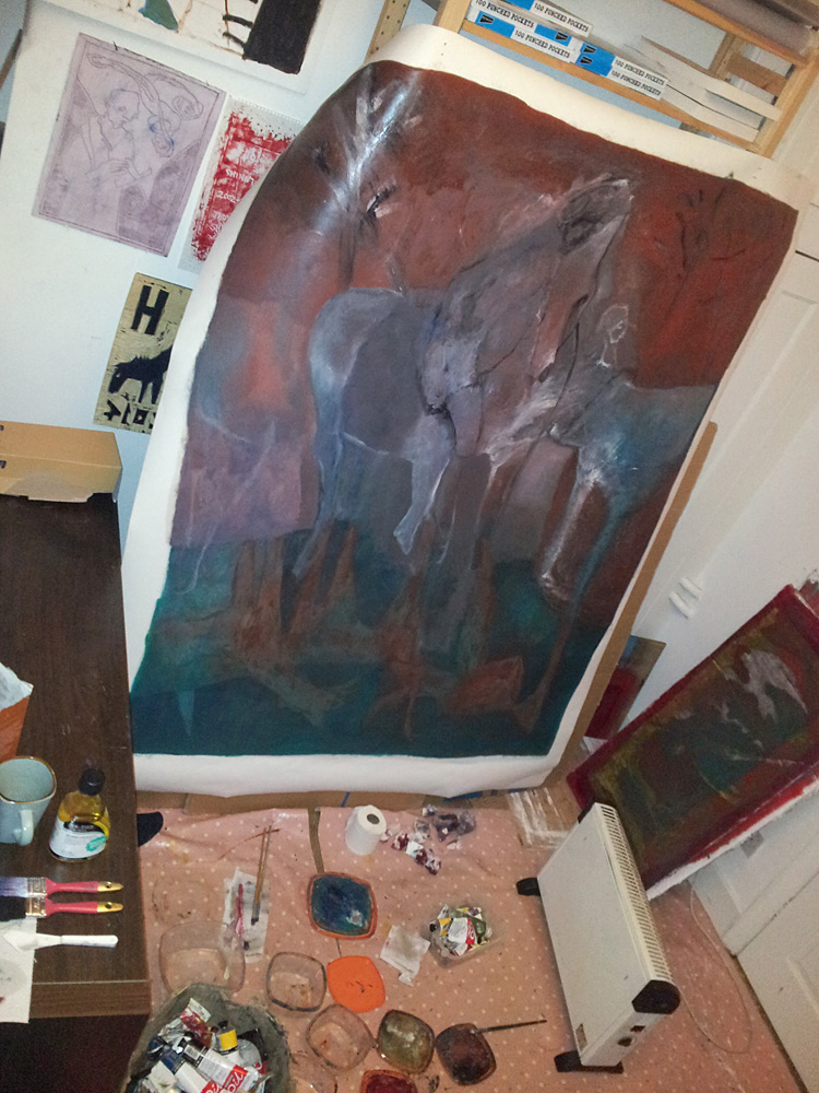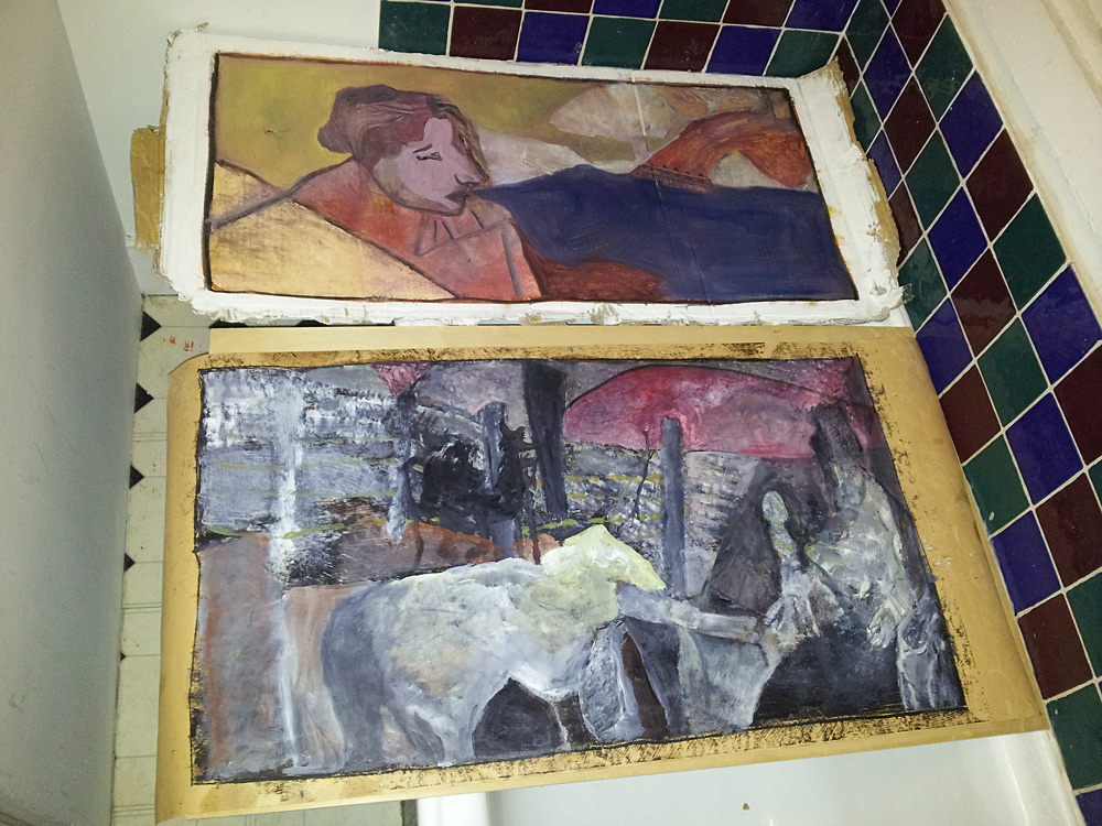 Some oil on papers drying over the bath. It gets pretty tight when you don’t have your own studio.