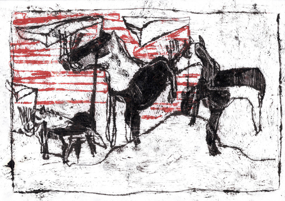 Unicorn over a ravaged city by Edgeworth Johnstone.